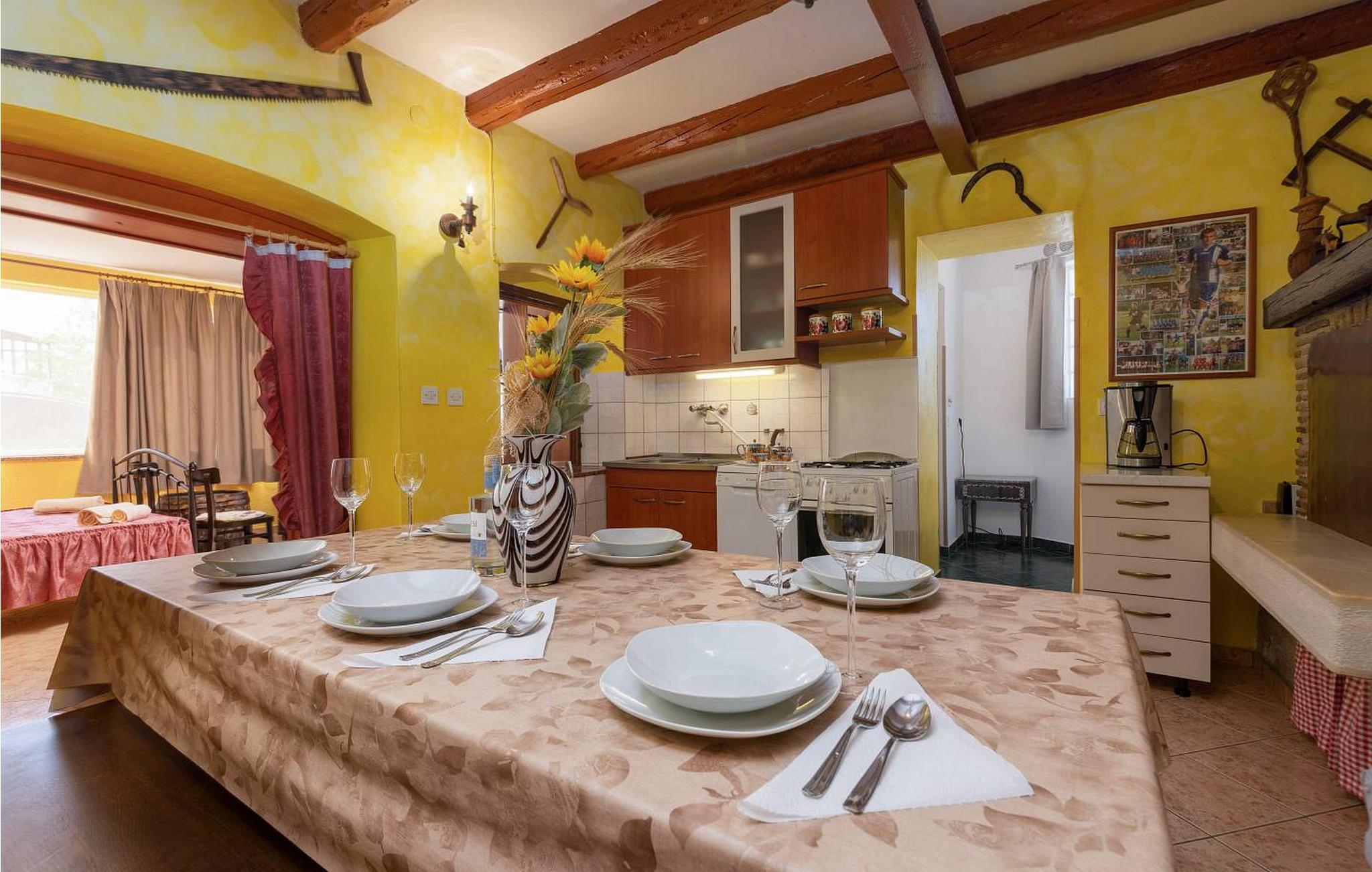 Velkommen til Casa Milena, et vakkert restaurert steinhus fra Istria i den rolige landsbyen Rapavel. Dette sjarmerende feriehuset ble opprinnelig bygget i 1930 og nennsomt renovert i 2013. Det byr på en blanding av tradisjonell karakter og moderne komfort. Casa Milena ligger bare 8 km fra Vinjan og 20 km fra den livlige kystbyen Pore, og har en perfekt beliggenhet for å utforske Istrias underverker. I den private, inngjerdede hagen kan du nyte et koselig svømmebasseng, perfekt for avkjøling på varme dager. To overbygde terrasser med komfortable sitteplasser inviterer deg til å slappe av utendørs, og grillen gjør det til en fornøyelse å spise utendørs. Med parkeringsplass for tre biler og fem sykler er du godt utstyrt for både komfort og eventyr. De fredelige omgivelsene gjør Rapavel til et ideelt tilfluktssted for alle som er ute etter en rolig ferie, samtidig som du aldri er langt unna Istrias travle byer og fantastiske kystlinje. Den nærliggende byen Vinjan, som er kjent for sitt observatorium og sin sjarmerende gamleby, gir et innblikk i Istrias rike kulturelle og vitenskapelige arv, noe som gjør den til et perfekt stoppested i løpet av ferien din på Casa Milena. Merk at dette overnattingsstedet ikke tar imot ungdomsgrupper eller utdrikningslag. En ungdomsgruppe på dette overnattingsstedet består av personer under 26 år.