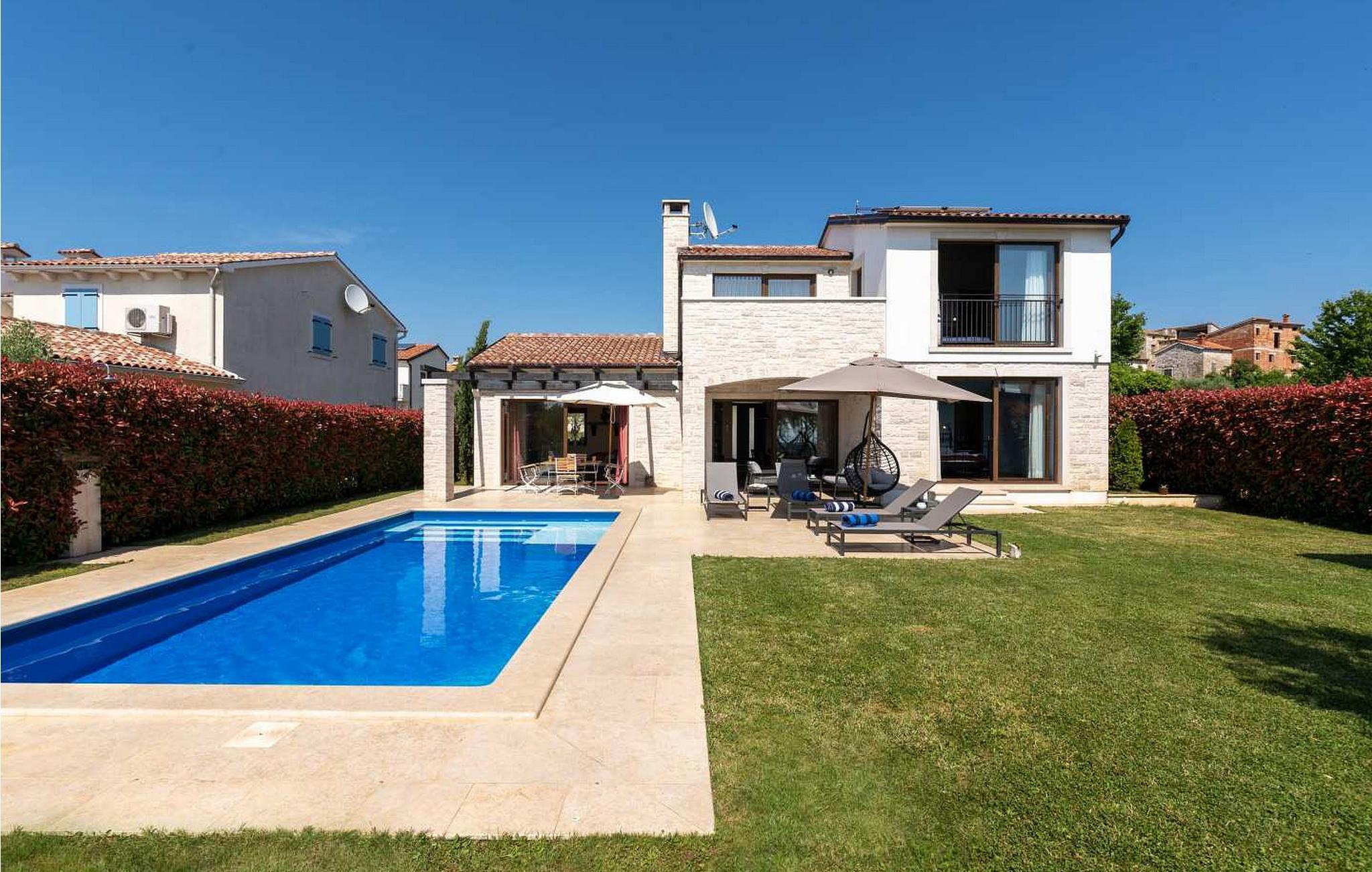 Villa Baratto, en nybygd, moderne-rustikk villa med basseng, ligger i utkanten av landsbyen Barat, ikke langt fra Visnjan i det sentrale Istria, 15 km fra Porec og strendene.