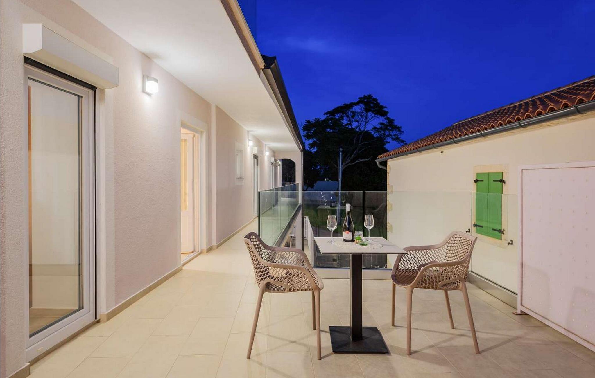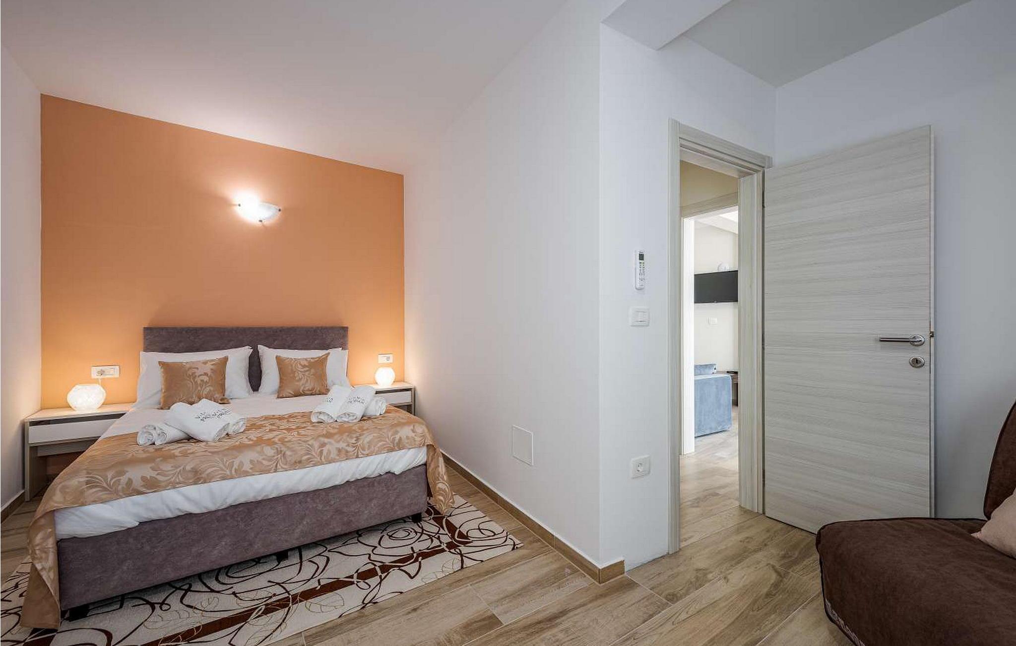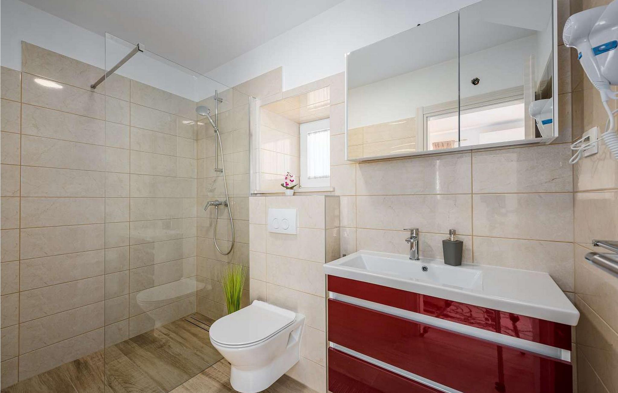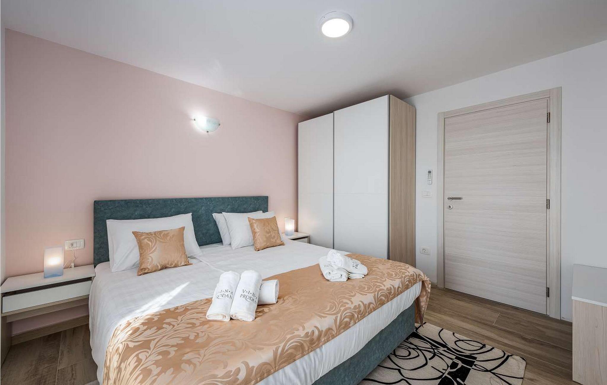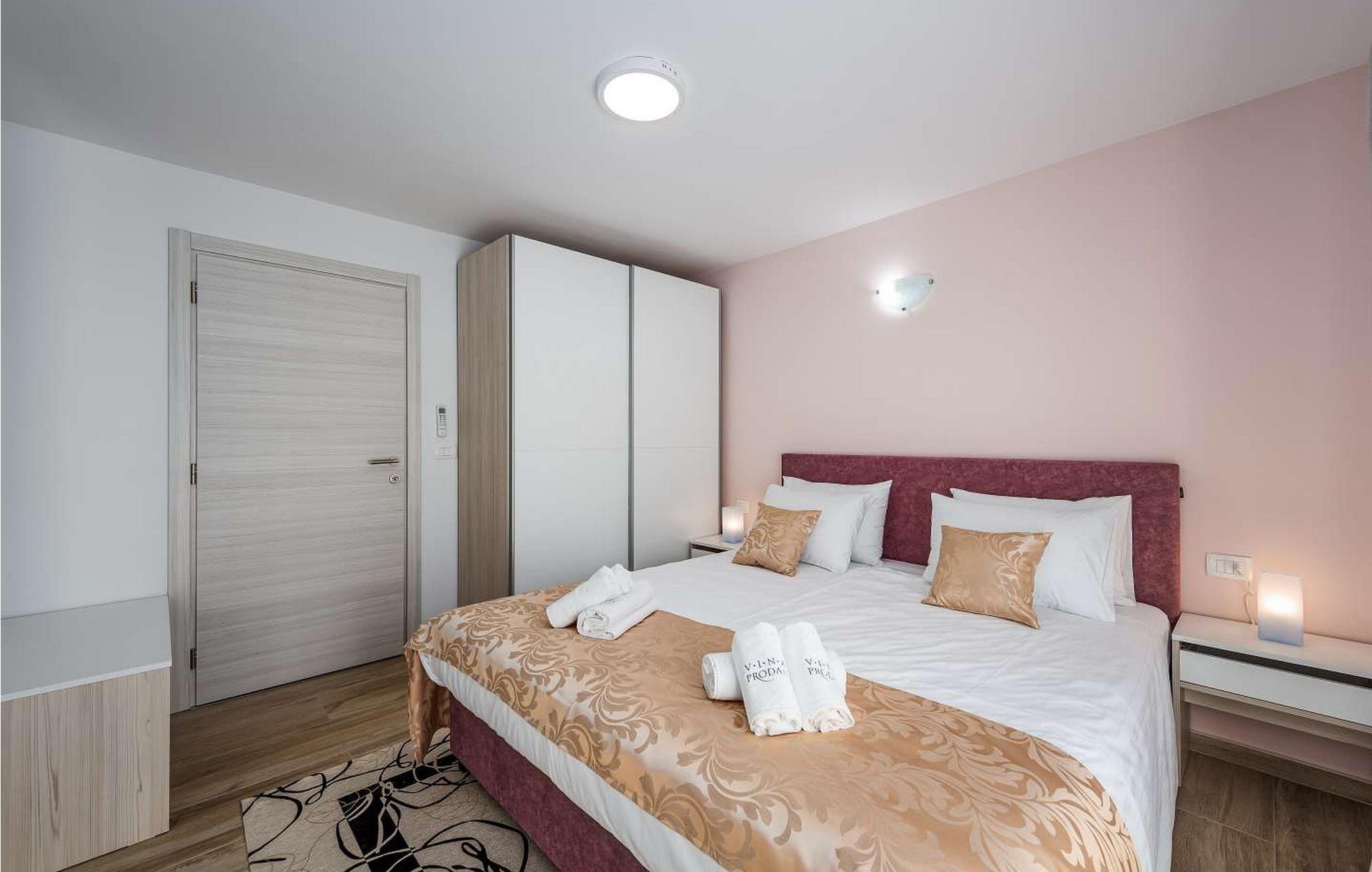 Velkommen til Villa Marija Prodan, et utsøkt feriehus for opptil 16 gjester, som tilbyr både luksuriøse velværefasiliteter og fantastisk havutsikt. Denne villaen er perfekt for store grupper som ønsker en fredelig ferie med alle hjemmets bekvemmeligheter og mer til. Skjem deg bort i villaens overdådig utstyrte velværeavdeling med boblebad, badstue, dampbad, avslapningsrom og dusj. Enten du slapper av i avslapningsrommet eller nyter det oppvarmede bassenget utenfor, er hvert øyeblikk her designet for avslapning. Den store terrassen med sitteplasser og solsenger er ideell for uteservering og for å nyte Istrias sol. Villaen har god plass til felles stunder, med en romslig spisestue og et fellesområde med bord og stoler for alle gjester, i tillegg til et fullt utstyrt kjøkken. Bare en kort spasertur fra villaen ligger en privat lekeplass med huske, sklie og en liten fotballbane med kunstgress, noe som gjør villaen til et ideelt tilfluktssted for familier. Villa Marija Prodan er gjennomtenkt utformet og tilbyr både fellesrom og private retreats. Villaen har to leiligheter og fire dobbeltrom, noe som gir komfort og privatliv for alle gjester. Kombinasjonen av moderne fasiliteter, fantastisk utsikt og rolige omgivelser gjør denne villaen til det perfekte utgangspunkt for en uforglemmelig ferie i Istria. Vær oppmerksom på at denne eiendommen ikke tar imot ungdomsgrupper eller utdrikningslag. En ungdomsgruppe på denne eiendommen består av personer under 26 år. Dersom du er en ungdomsgruppe eller et utdrikningslag, må du ikke booke dette overnattingsstedet, da bookingen din vil bli avvist etter at du har booket, noe som også kan skje ved ankomst til overnattingsstedet eller under oppholdet, og du vil ikke få refusjon.