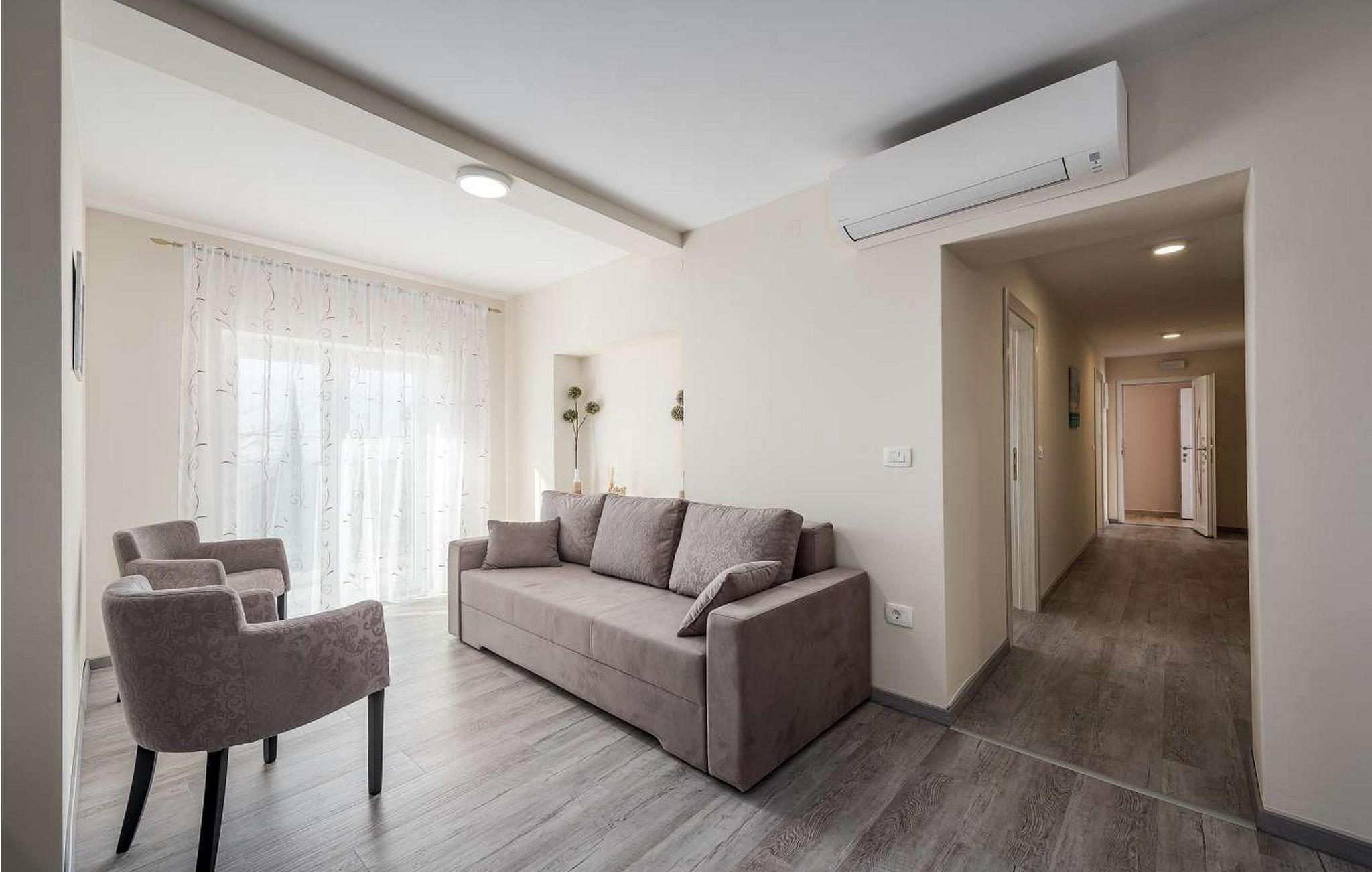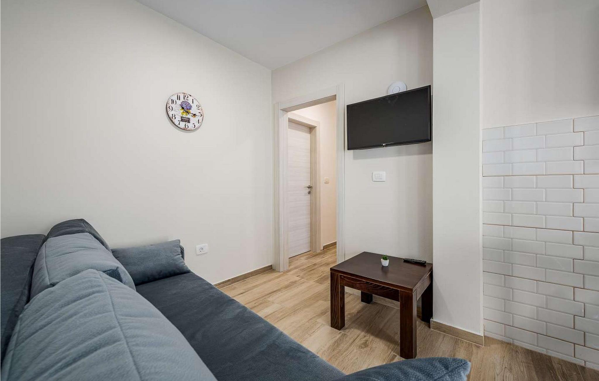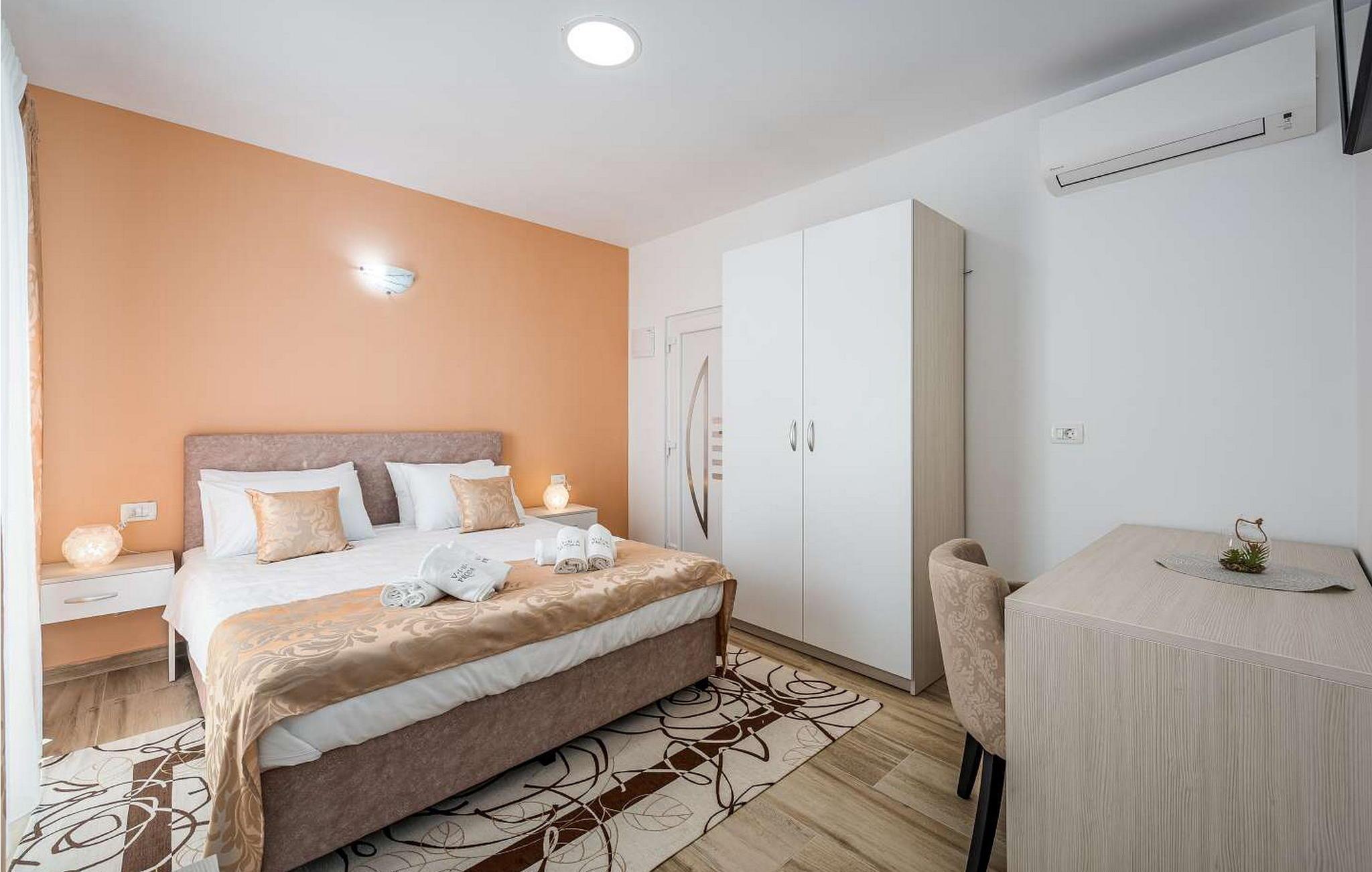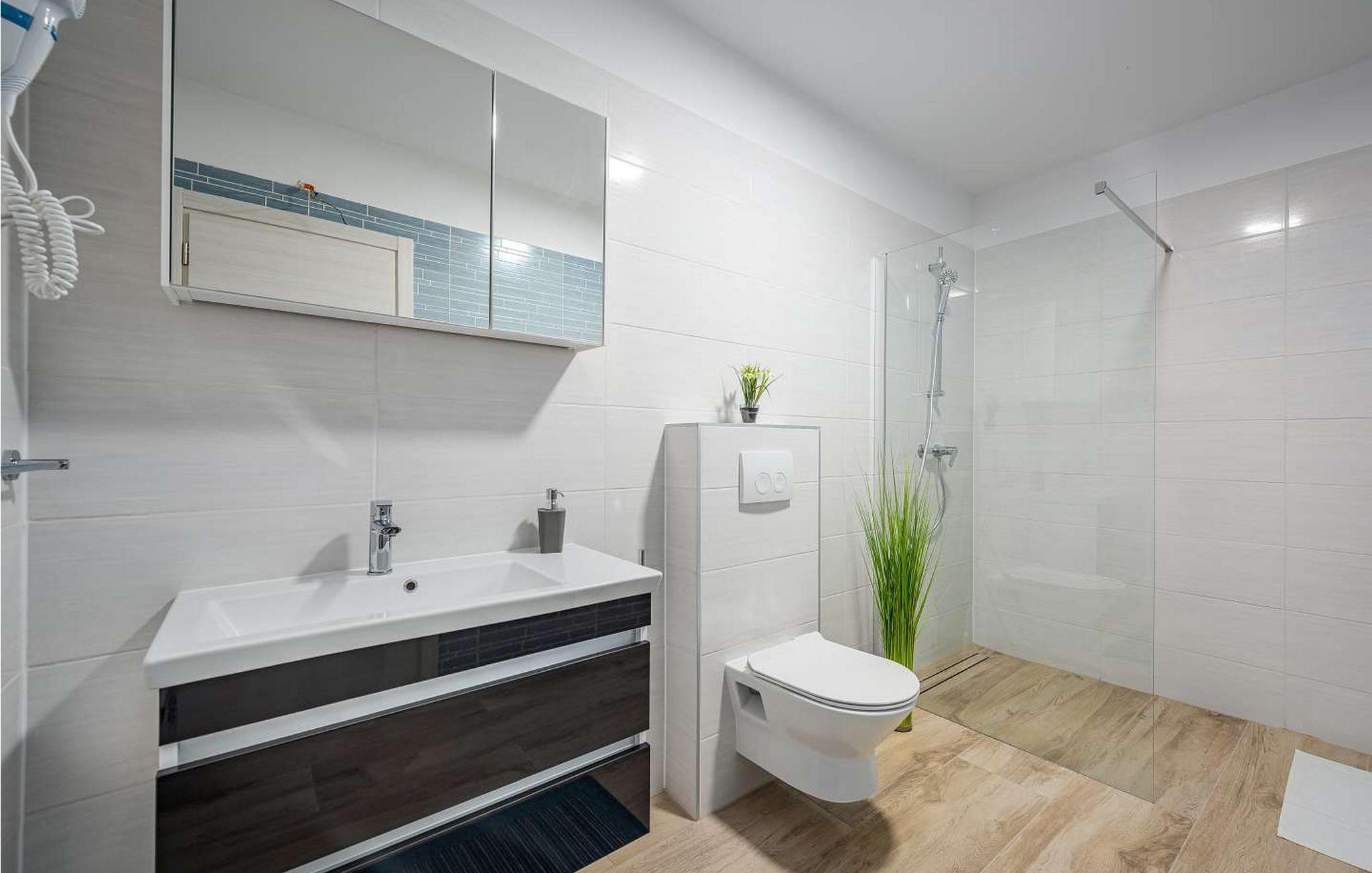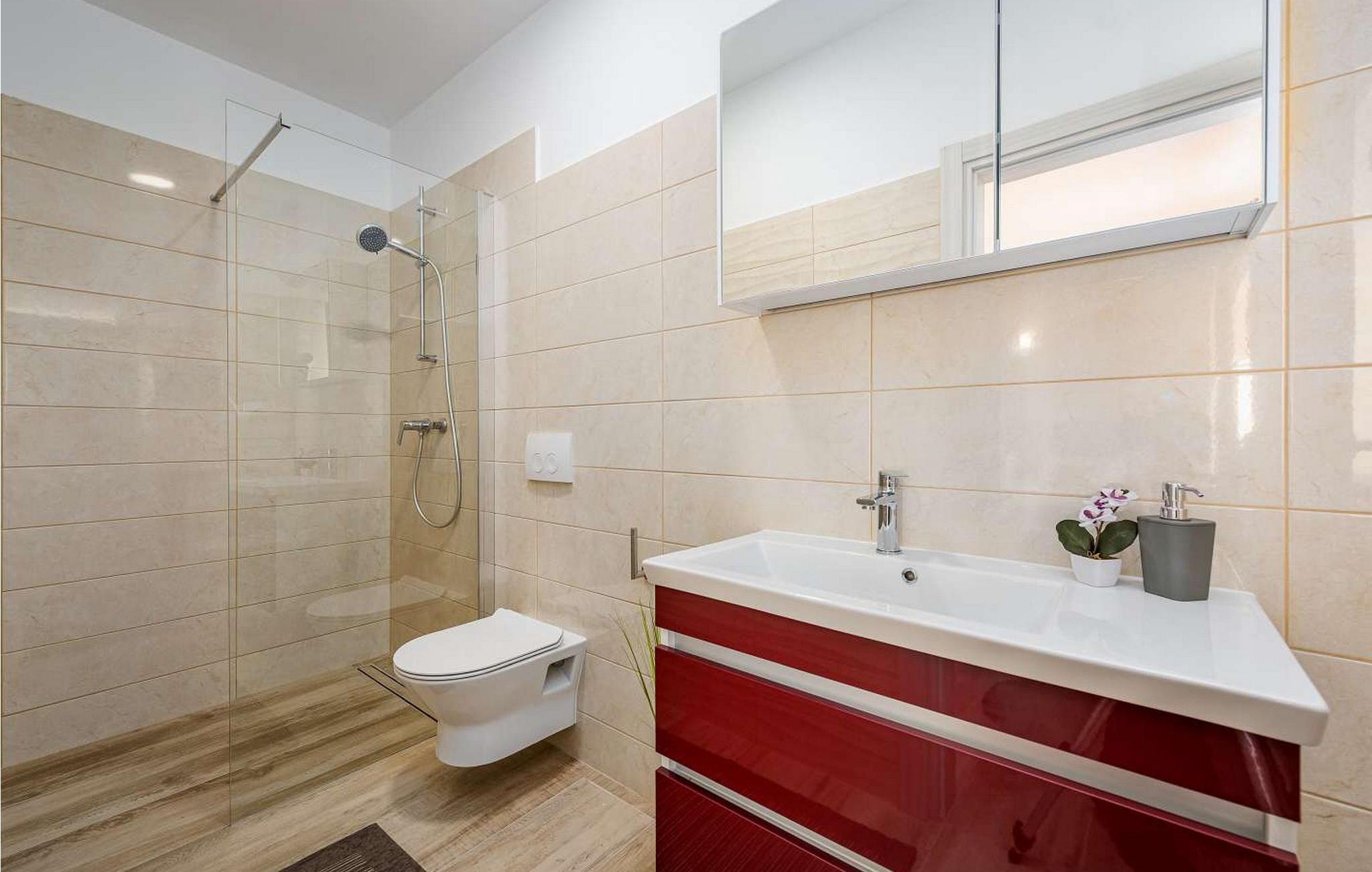 Velkommen til Villa Marija Prodan, et utsøkt feriehus for opptil 16 gjester, som tilbyr både luksuriøse velværefasiliteter og fantastisk havutsikt. Denne villaen er perfekt for store grupper som ønsker en fredelig ferie med alle hjemmets bekvemmeligheter og mer til. Skjem deg bort i villaens overdådig utstyrte velværeavdeling med boblebad, badstue, dampbad, avslapningsrom og dusj. Enten du slapper av i avslapningsrommet eller nyter det oppvarmede bassenget utenfor, er hvert øyeblikk her designet for avslapning. Den store terrassen med sitteplasser og solsenger er ideell for uteservering og for å nyte Istrias sol. Villaen har god plass til felles stunder, med en romslig spisestue og et fellesområde med bord og stoler for alle gjester, i tillegg til et fullt utstyrt kjøkken. Bare en kort spasertur fra villaen ligger en privat lekeplass med huske, sklie og en liten fotballbane med kunstgress, noe som gjør villaen til et ideelt tilfluktssted for familier. Villa Marija Prodan er gjennomtenkt utformet og tilbyr både fellesrom og private retreats. Villaen har to leiligheter og fire dobbeltrom, noe som gir komfort og privatliv for alle gjester. Kombinasjonen av moderne fasiliteter, fantastisk utsikt og rolige omgivelser gjør denne villaen til det perfekte utgangspunkt for en uforglemmelig ferie i Istria. Vær oppmerksom på at denne eiendommen ikke tar imot ungdomsgrupper eller utdrikningslag. En ungdomsgruppe på denne eiendommen består av personer under 26 år. Dersom du er en ungdomsgruppe eller et utdrikningslag, må du ikke booke dette overnattingsstedet, da bookingen din vil bli avvist etter at du har booket, noe som også kan skje ved ankomst til overnattingsstedet eller under oppholdet, og du vil ikke få refusjon.