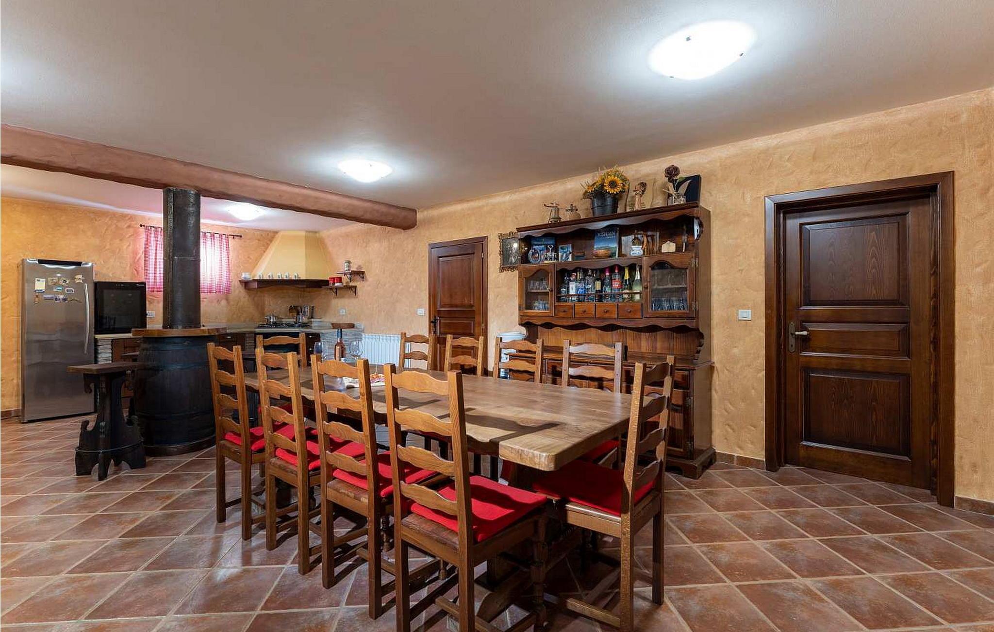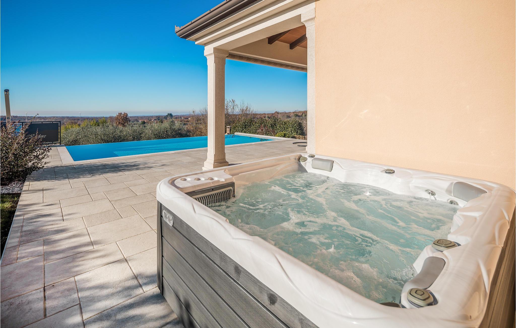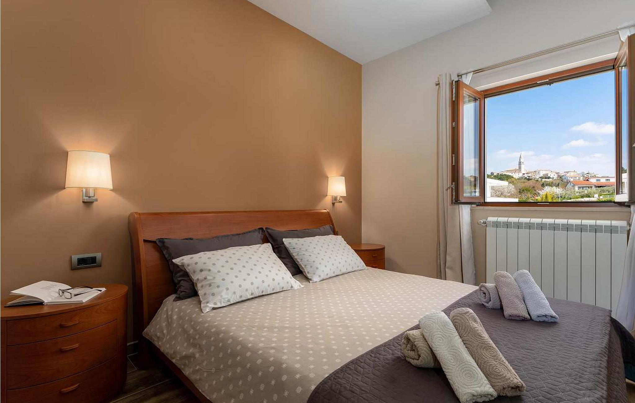 Dette romslige huset ligger bare noen få minutters kjøring fra Vi?njan, hvor du finner en butikk, nybakt brød i et bakeri i nærheten og en av de bedre tavernaene med istriske spesialiteter. I den 600 kvadratmeter store hagen har du tilgang til et evighetsbasseng, 6 solsenger, parasoll, overbygd terrasse med spisebord og utsikt over olivenlunden, grill og to parkeringsplasser.