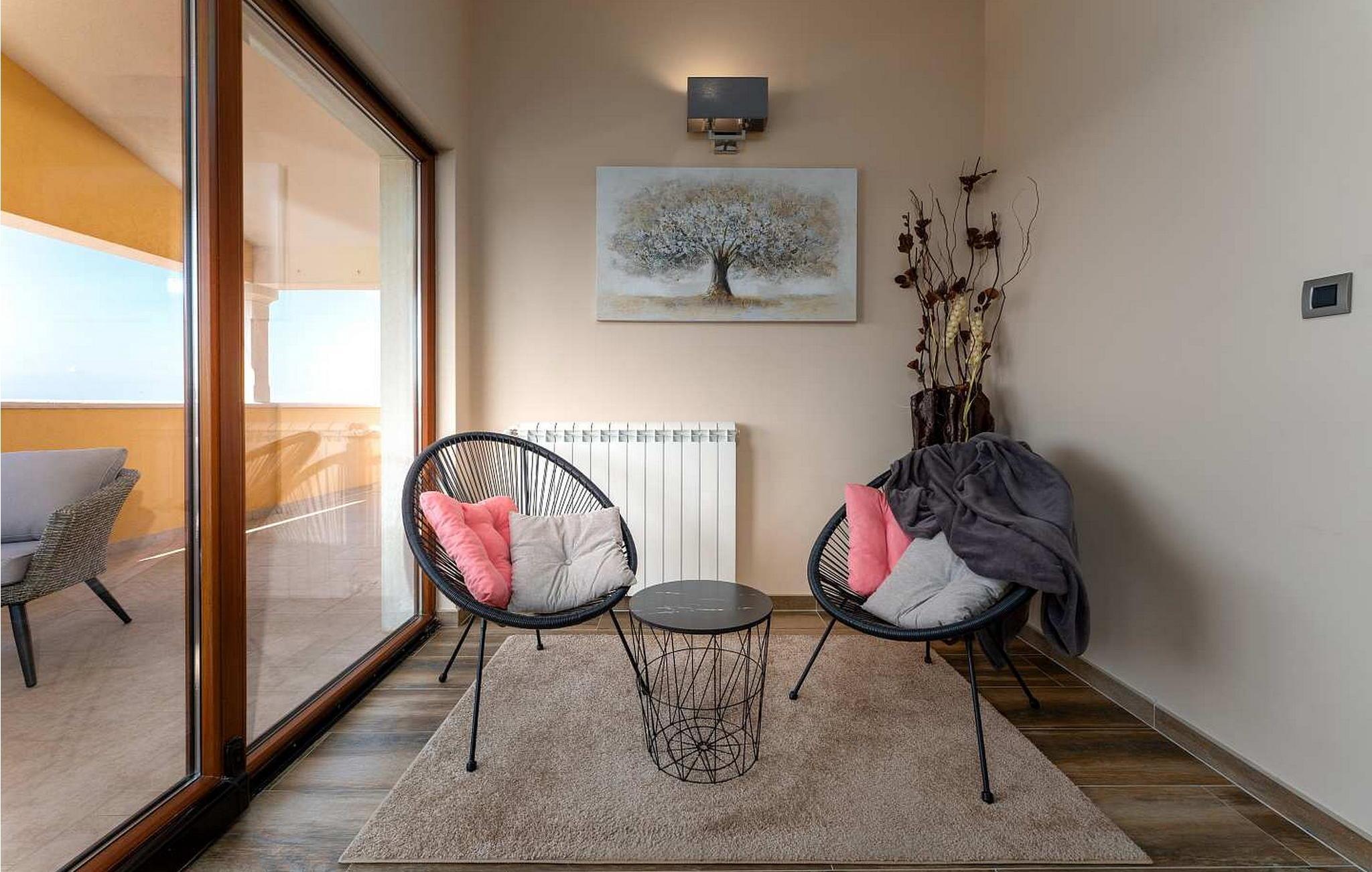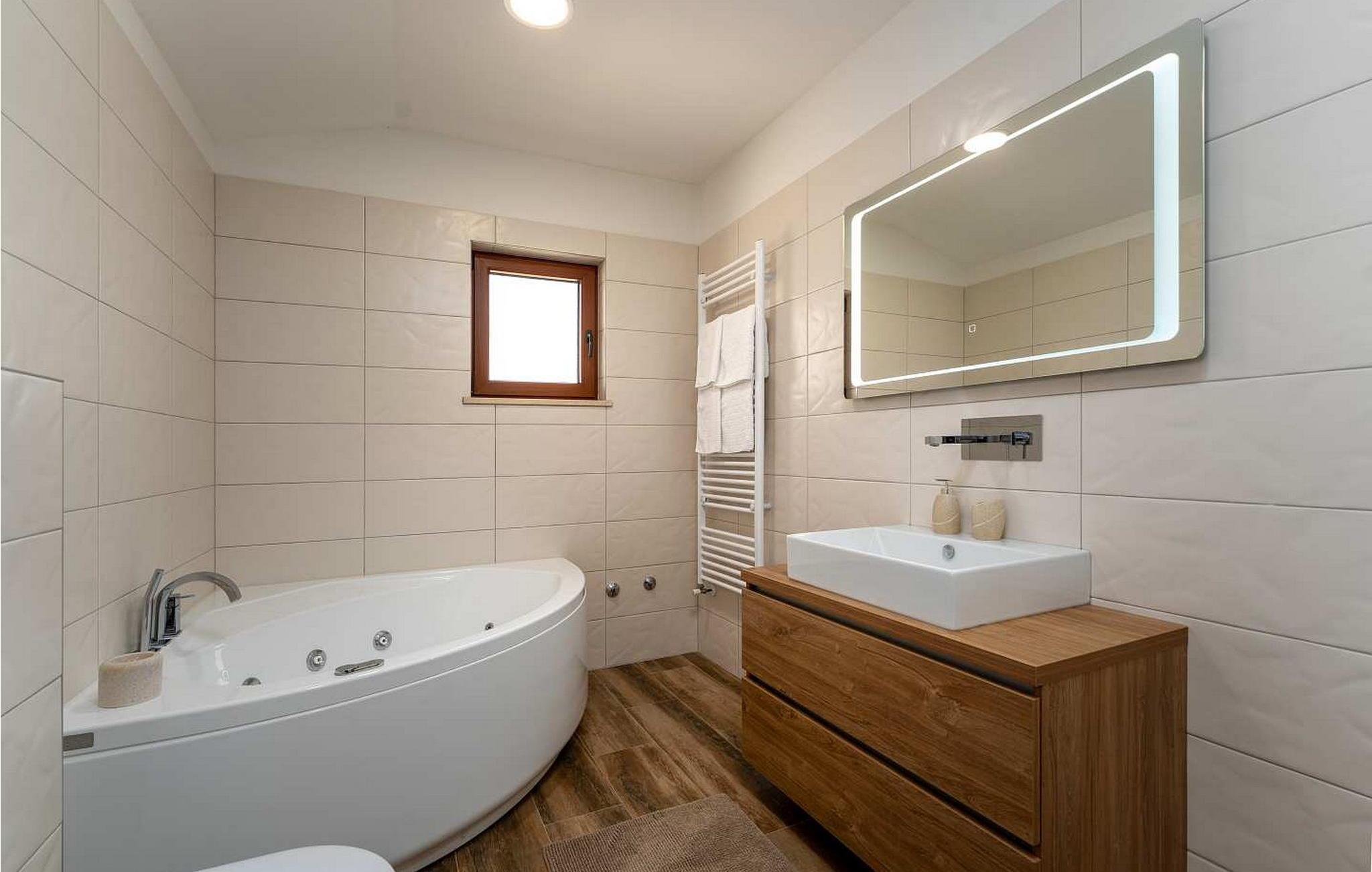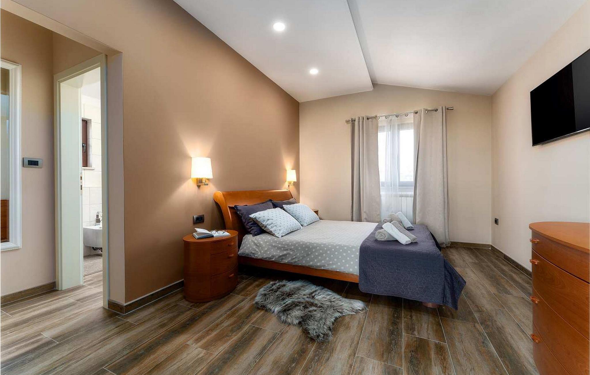 Dette romslige huset ligger bare noen få minutters kjøring fra Vi?njan, hvor du finner en butikk, nybakt brød i et bakeri i nærheten og en av de bedre tavernaene med istriske spesialiteter. I den 600 kvadratmeter store hagen har du tilgang til et evighetsbasseng, 6 solsenger, parasoll, overbygd terrasse med spisebord og utsikt over olivenlunden, grill og to parkeringsplasser.