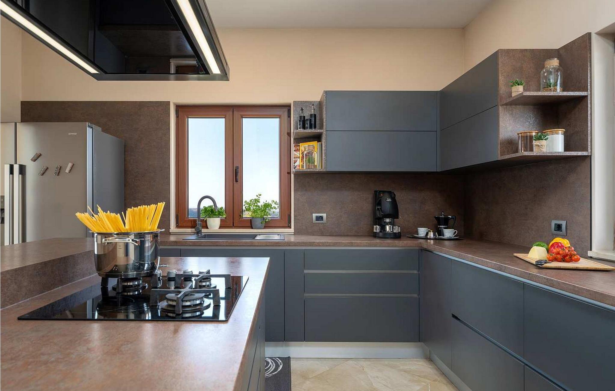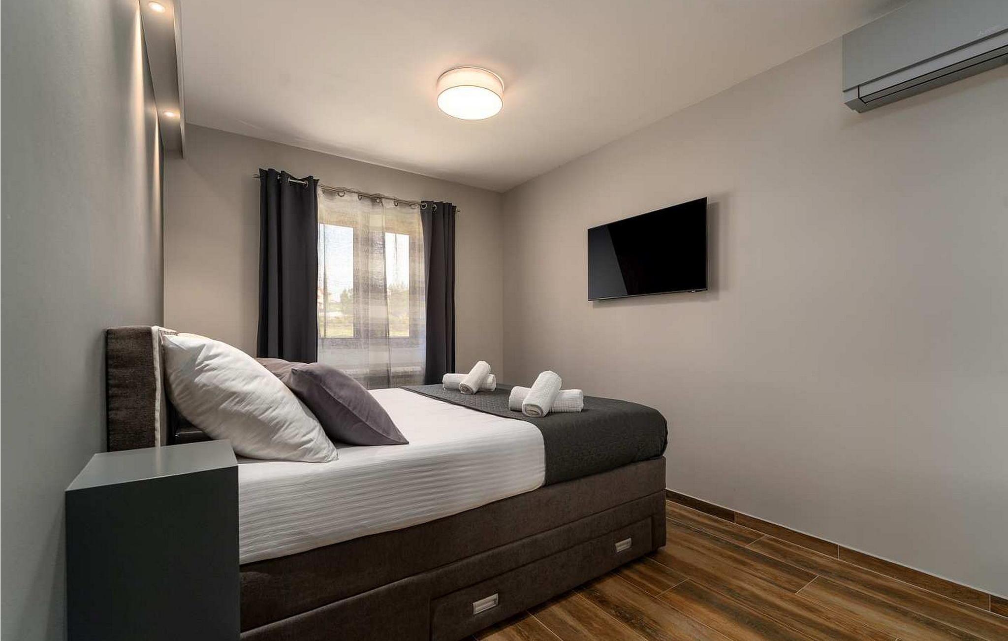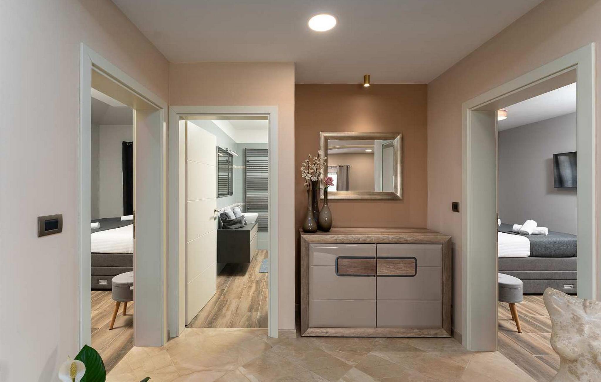 Feriehus Kadore for 6 personer med et samlet areal på 280 kvm fordelt på tre etasjer med aircondition. I første etasje er det en stue med utgang til bassenget, et fullt utstyrt kjøkken med spisebord, to doble soverom og et bad. I første etasje er det en terrasse med sittemøbler, et soverom med dobbeltseng og eget bad. I kjelleren er det en taverna med kjøkken og et ekstra rom med biljardbord og fritidsutstyr samt dusj/toalett.