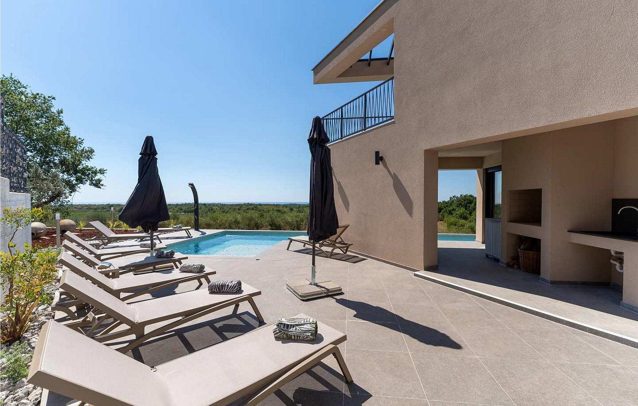 Villa Luisa, moderne villa med basseng i nærheten av Pore? med vakker utsikt over vinmarkene og havet.
