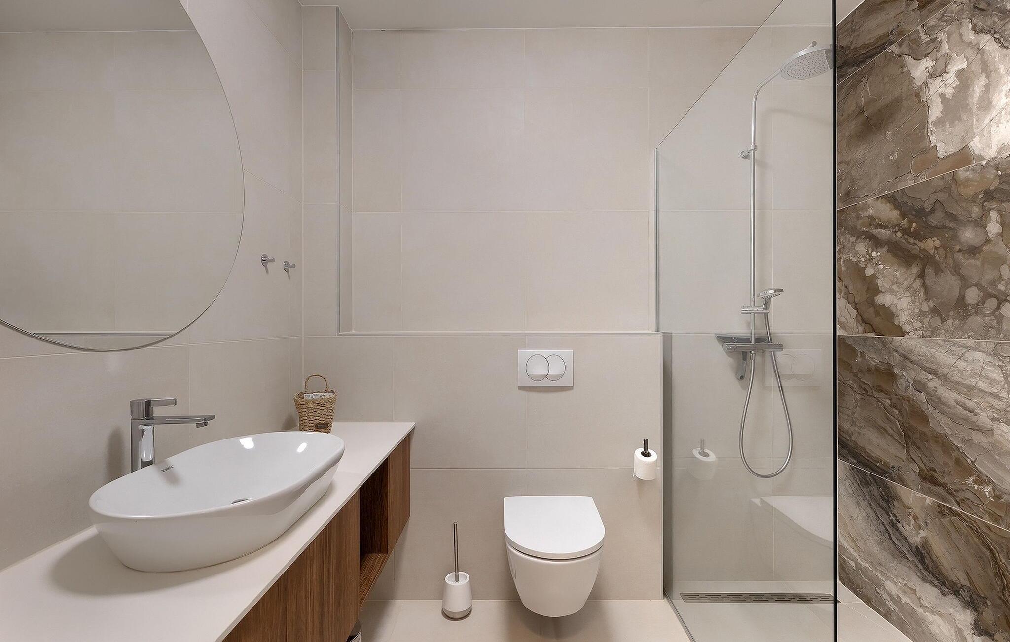 Baderom (nr. 1) - WC: Varmt og kaldt vann. Dusj