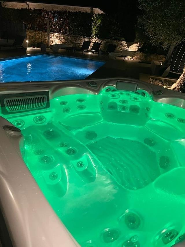 Der Garten bietet viel Privatphäre da uneinsehbar. Im Garten selbst befindet sich ein 8x4 Meter großer Salzwasserpool mit Solardusche sowie ein Jakuzzi für 6 Personen.
