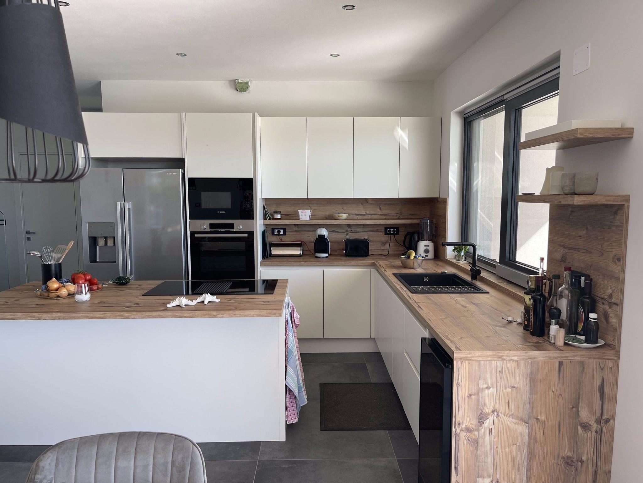 Das ganze Ferienhaus für Gruppen oder Familien bis acht Personen bestehend aus einem Wohnzimmer mit Esstisch und offener Küche mit Induktionsherd und Doppelkühlschrank mit Eiswürfeln, vier Schlafzimmer mit eigenen Badezimmern, beheizbarer Aussenpool, Terrasse mit Tisch und Stühlen, sowie Sitzecke.