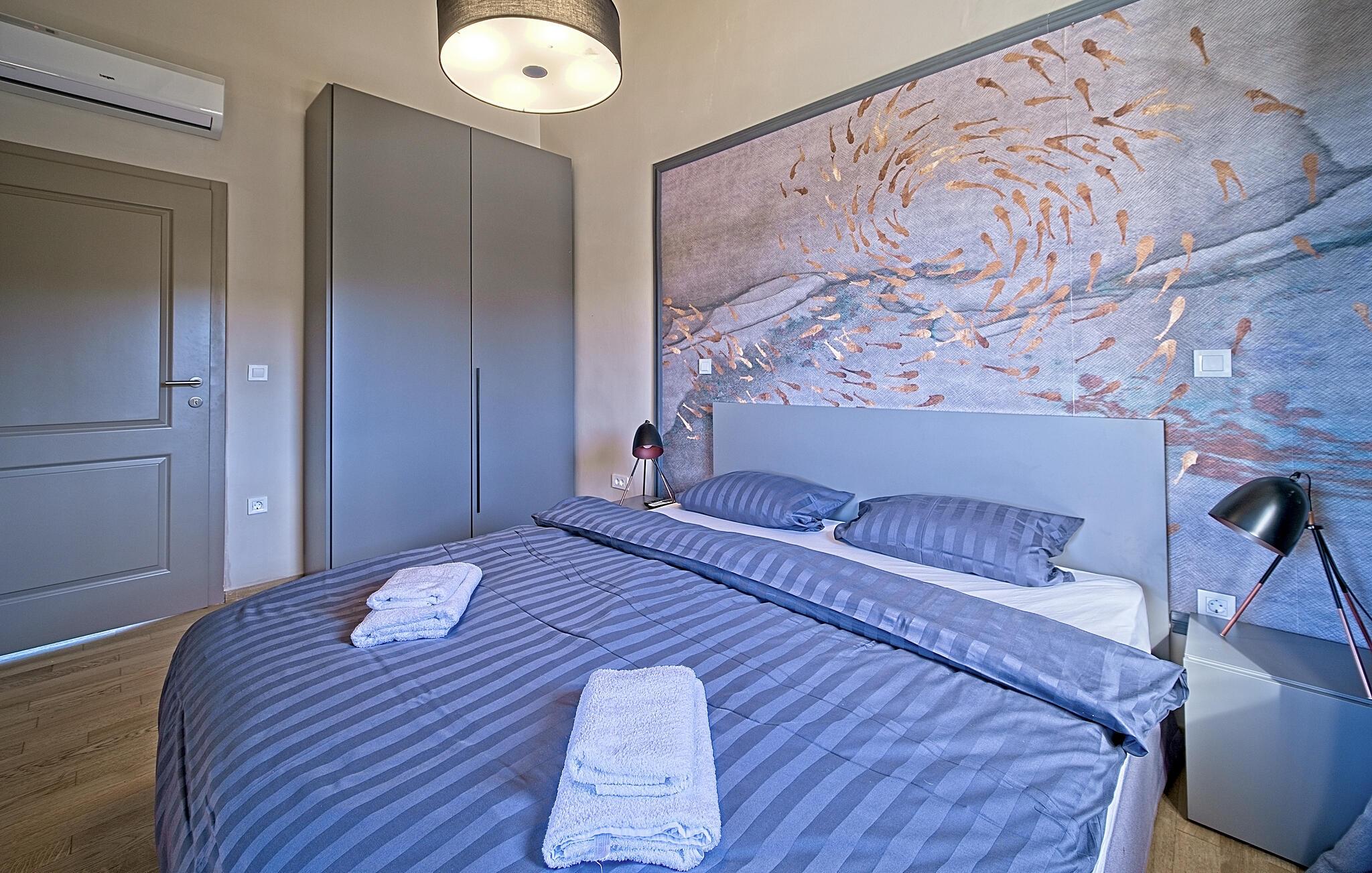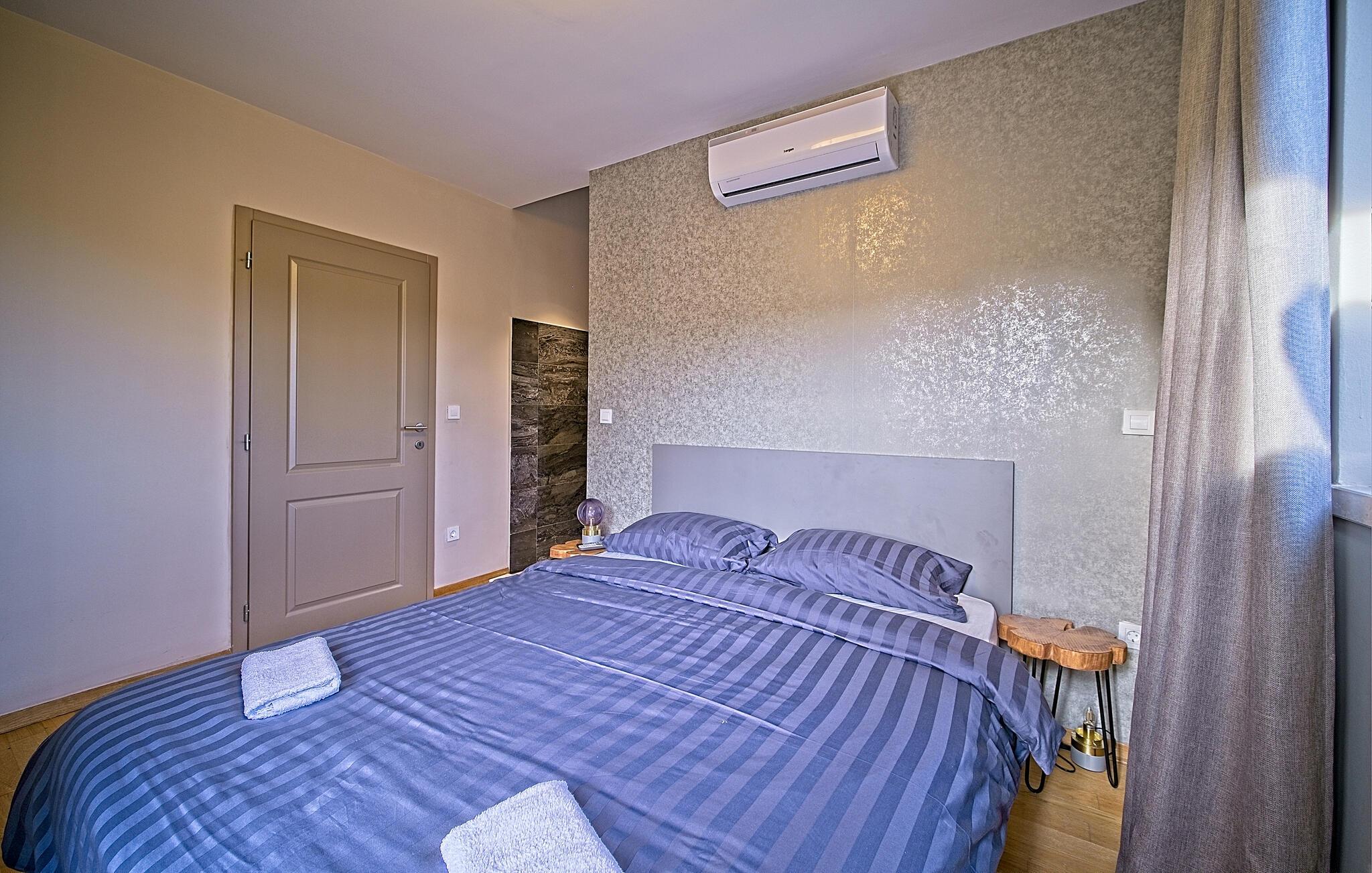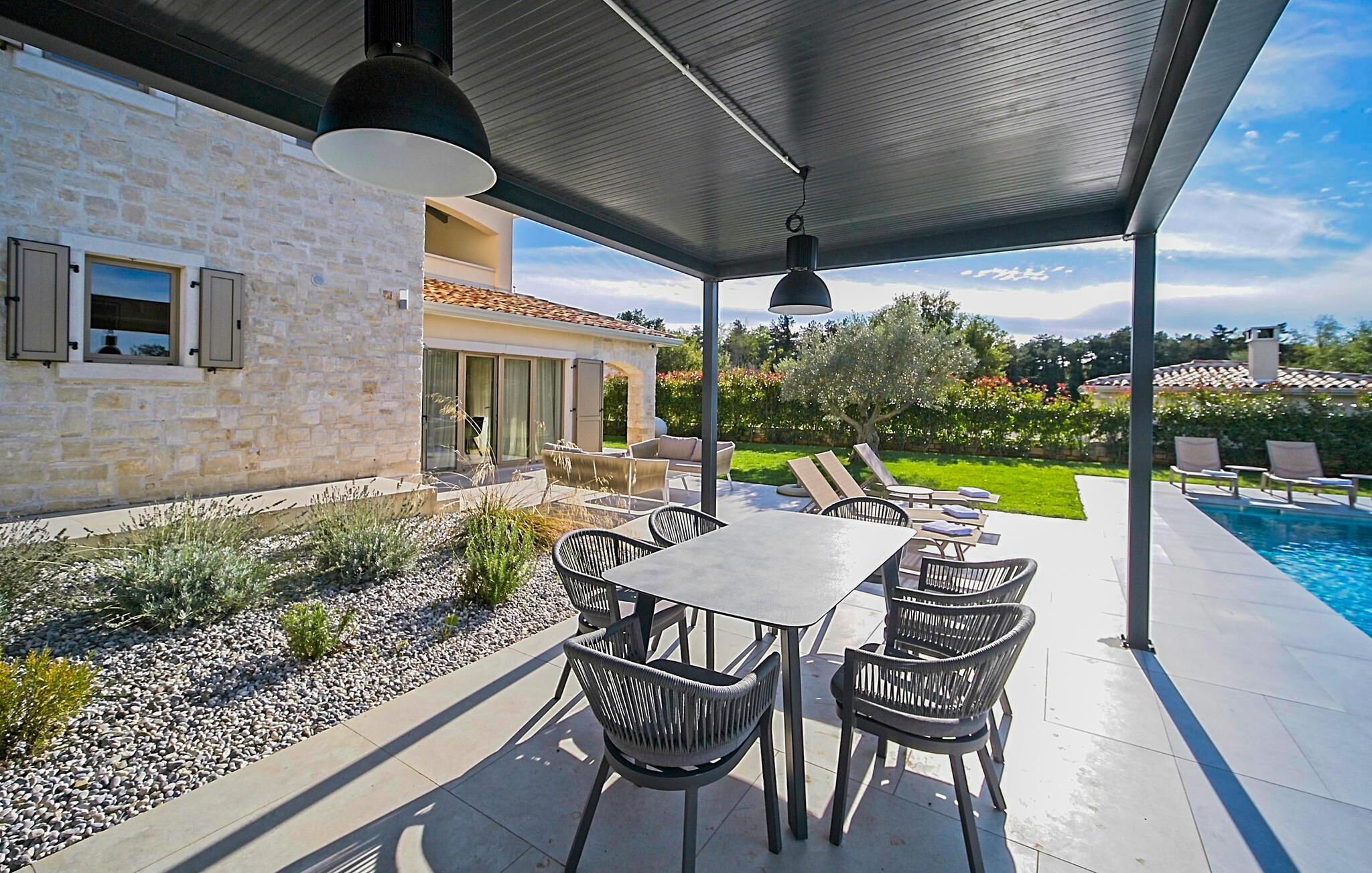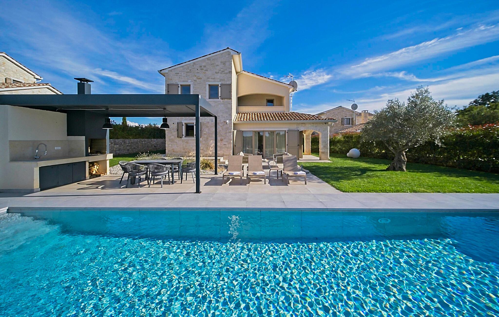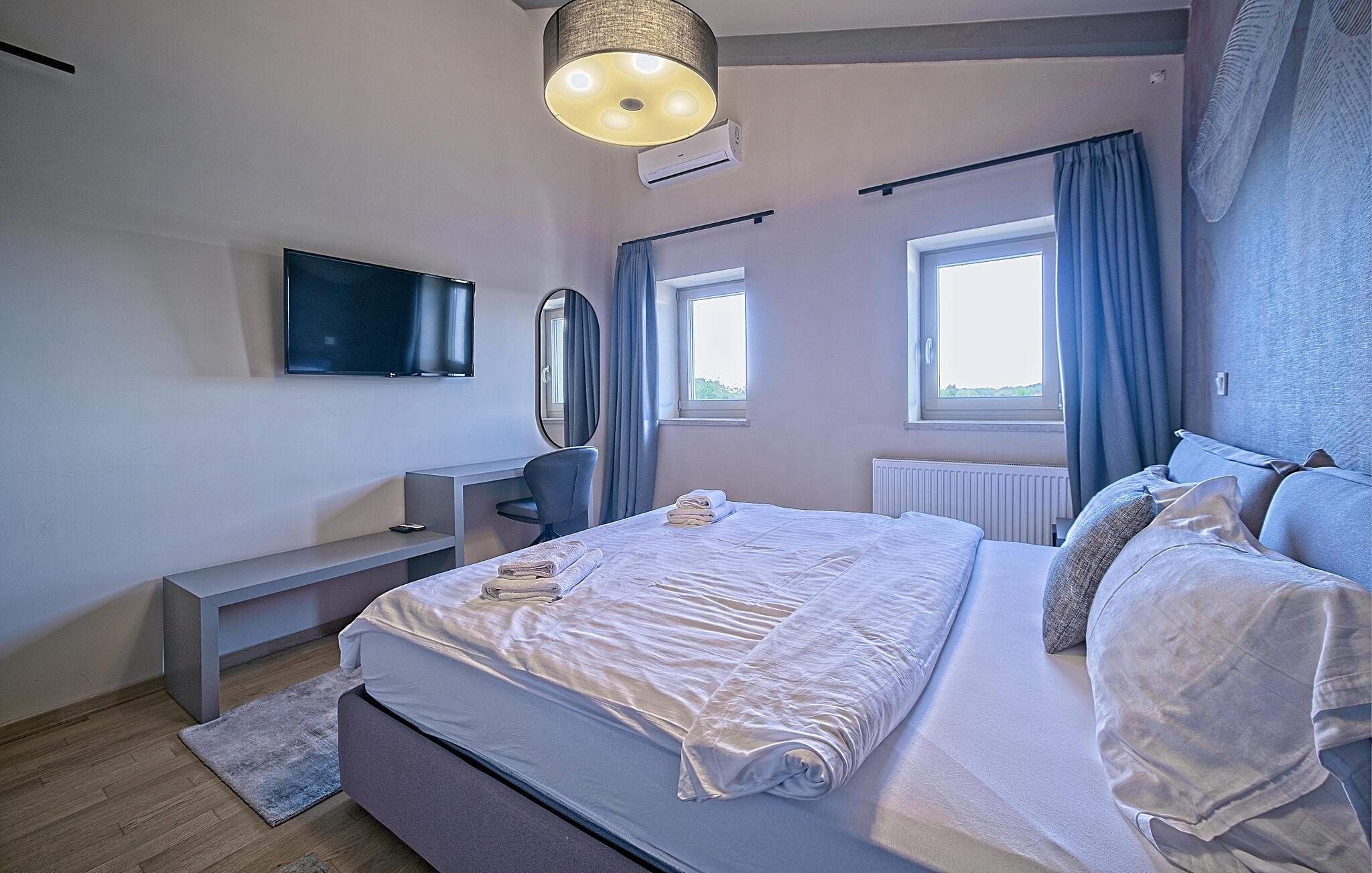 Dette vennlige huset imponerer med sin tidløse eleganse og behagelige komfort. Vinduer fra gulv til tak slipper inn rikelig med naturlig lys, mens en stor sofagruppe innbyr til avslapping og velvære. Her kan du lytte til favorittmusikken din eller streame favorittseriene dine. Du kan tilberede deilige måltider på det moderne kjøkkenet og servere dem med et glass kroatisk vin.