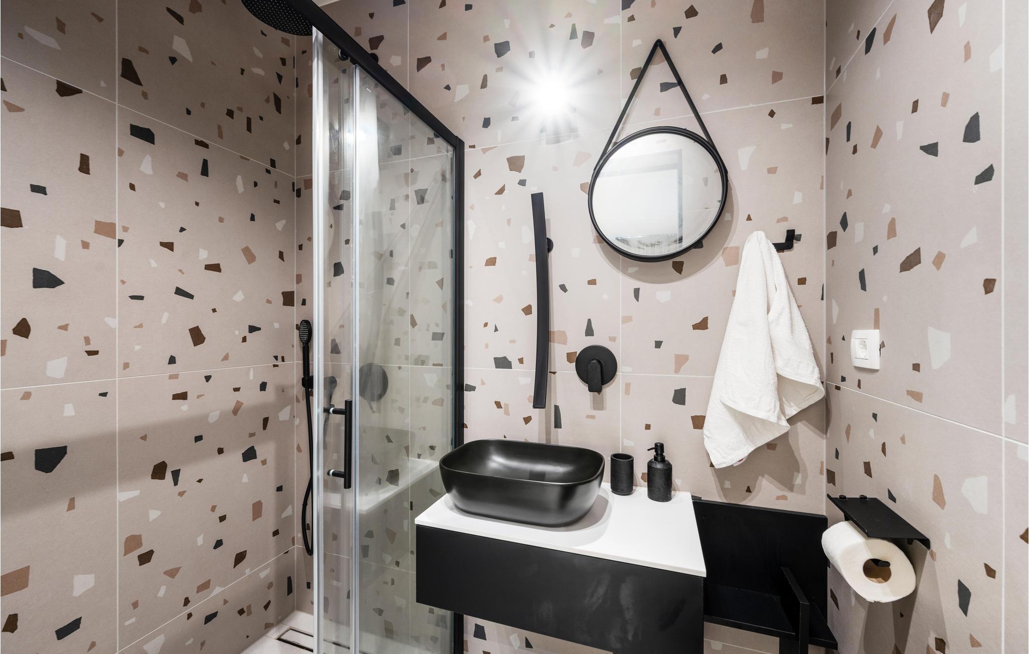 - WC med varmt og kaldt vann, Dusj