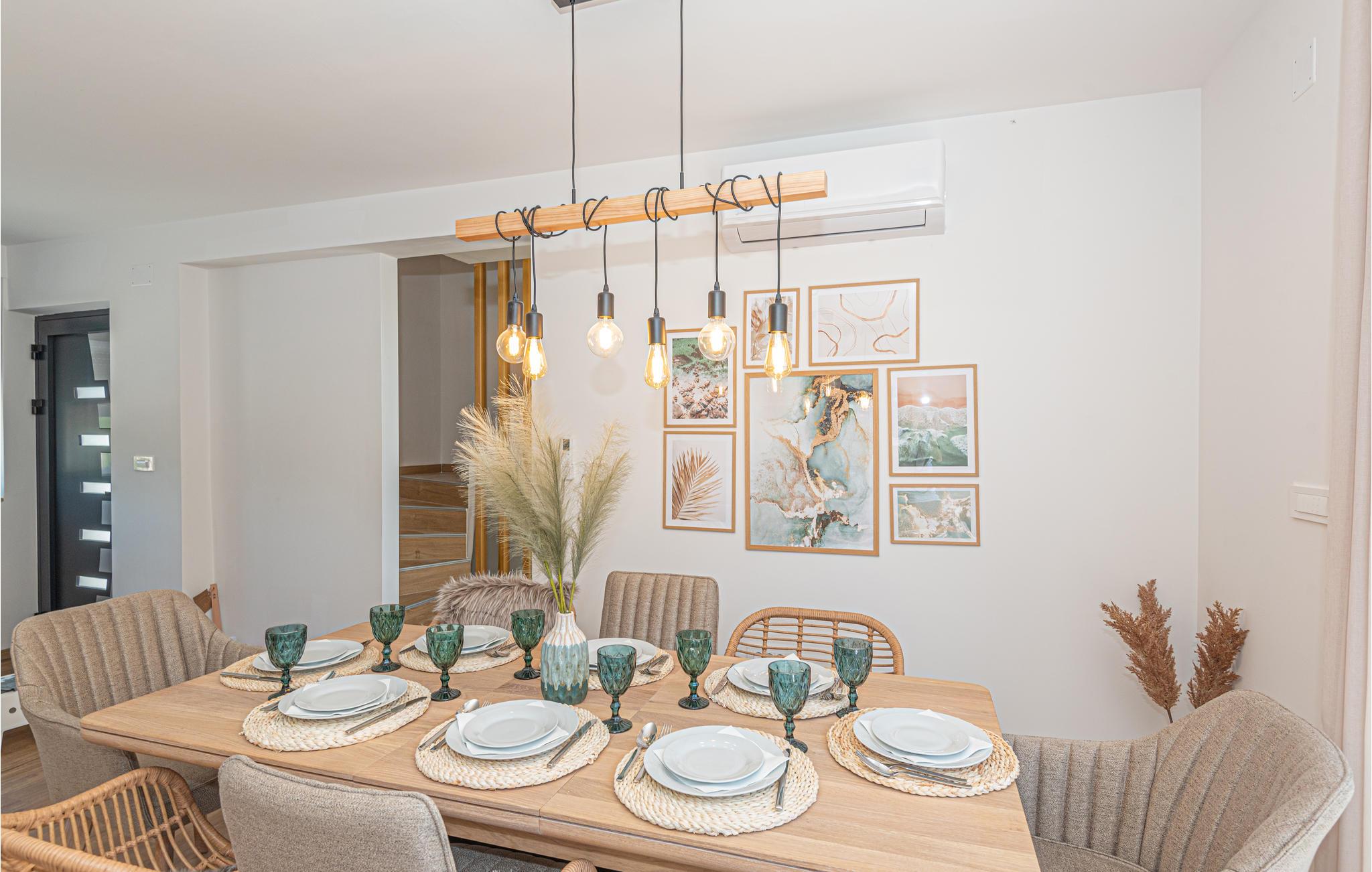 I dette romslige og lyse feriehuset kan du tilbringe en herlig tid sammen med dine nærmeste. De komfortable og moderne møblene og de duse fargene gjør huset til et sted hvor du virkelig kan slappe av på ferien. I oppholdsrommet er det god plass til å tilbringe tid sammen, enten du lager mat på det åpne kjøkkenet eller ser på film i den romslige sofaen, og du kan også nyte den vakre utsikten over havet.