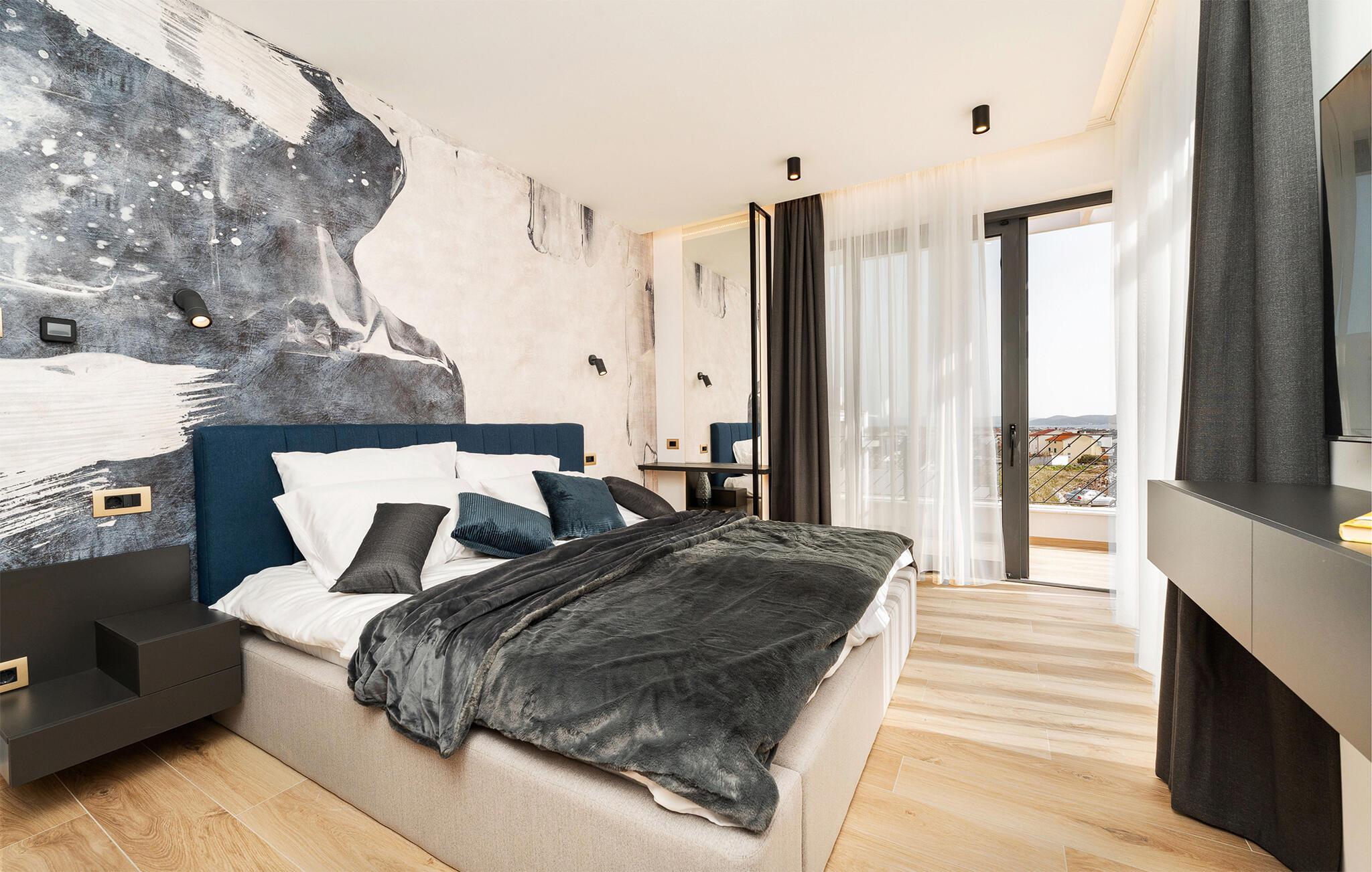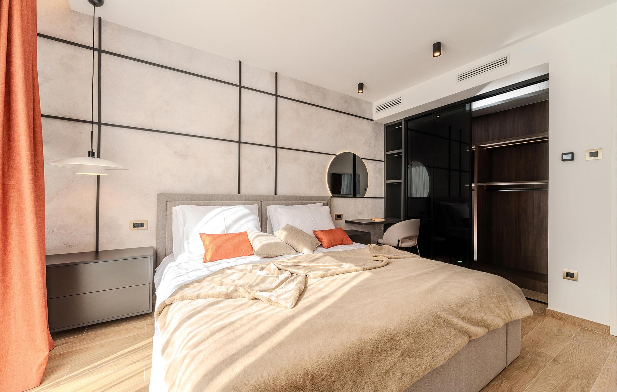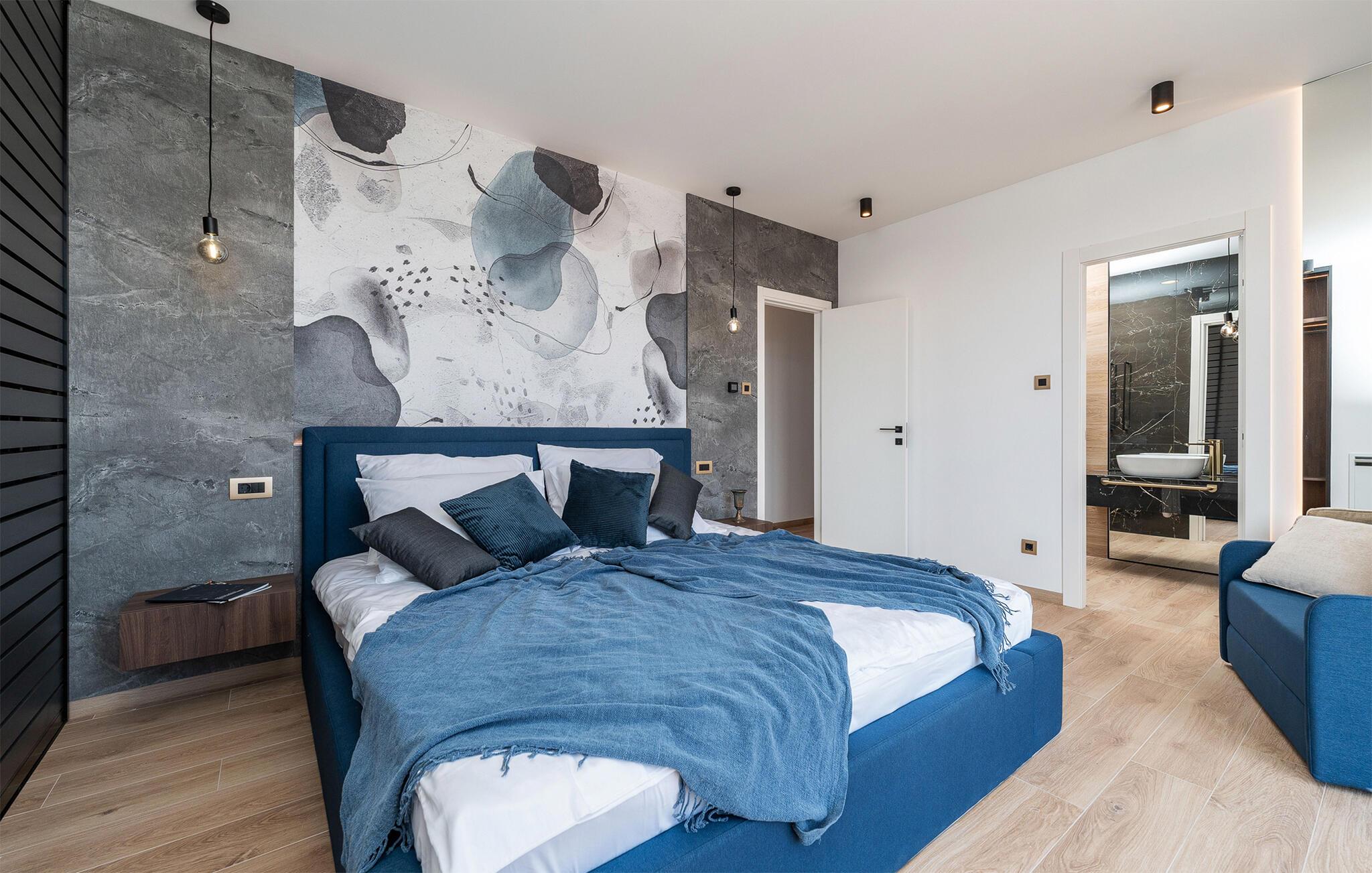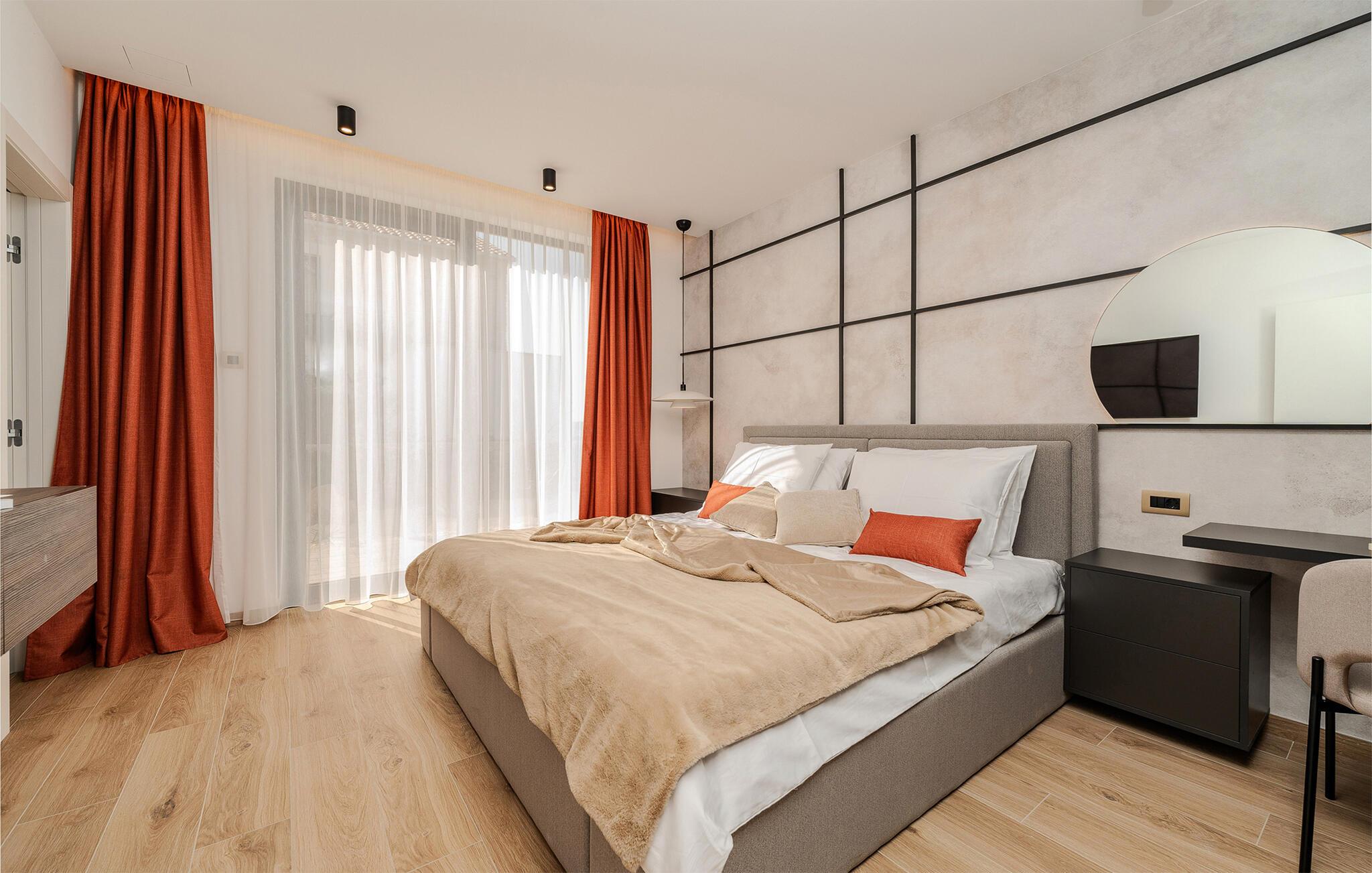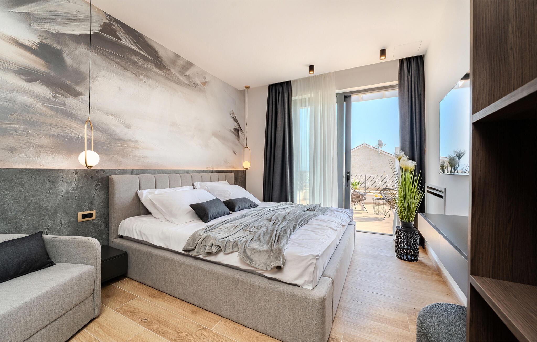Start dagen i det luksuriøse feriehuset med en kopp kaffe på den romslige terrassen. I oppholdsrommet er det også god plass til å slappe av og hygge seg over måltider eller morsomme brettspill. Slå dere ned ved det elegante spisebordet eller legg føttene opp i sofakroken og se en spennende film. Utenfor byr huset på en rekke muligheter for å nyte feriefritiden. Sett deg på den øvre terrassen og la blikket vandre. Du kan se det glitrende Adriaterhavet i horisonten og glede deg til en herlig badedag med hele familien. Du kan også bruke det overbygde utekjøkkenet til å trylle frem kulinariske spesialiteter og servere dem ved det lange spisebordet. Bassenget byr på forfriskende øyeblikk og moro for store og små. Det er også mange muligheter for utendørs sportsaktiviteter.