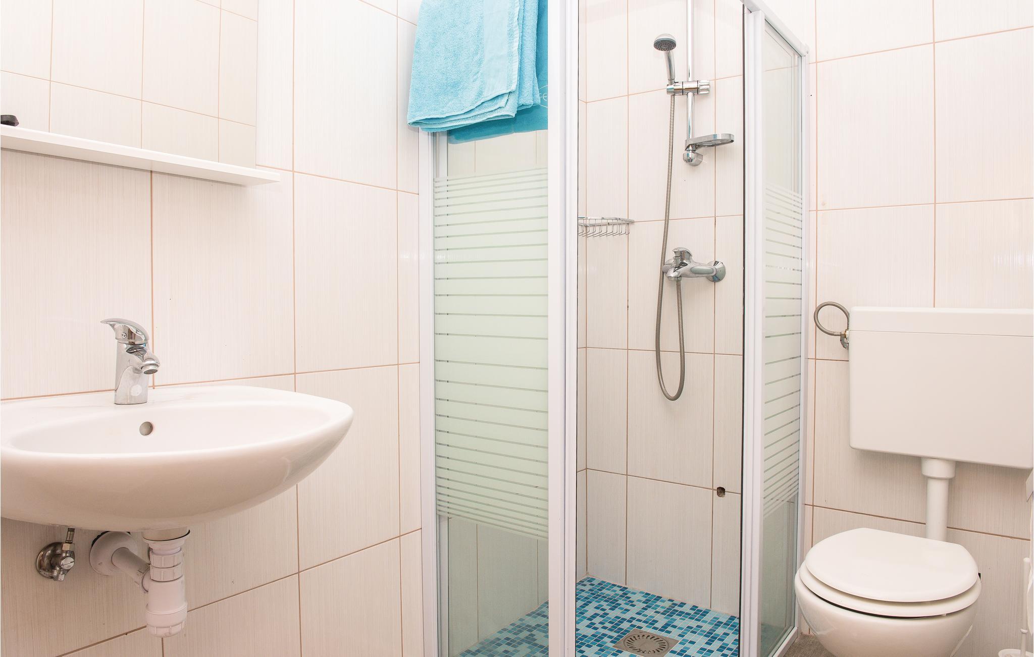 - WC med varmt og kaldt vann, Dusj