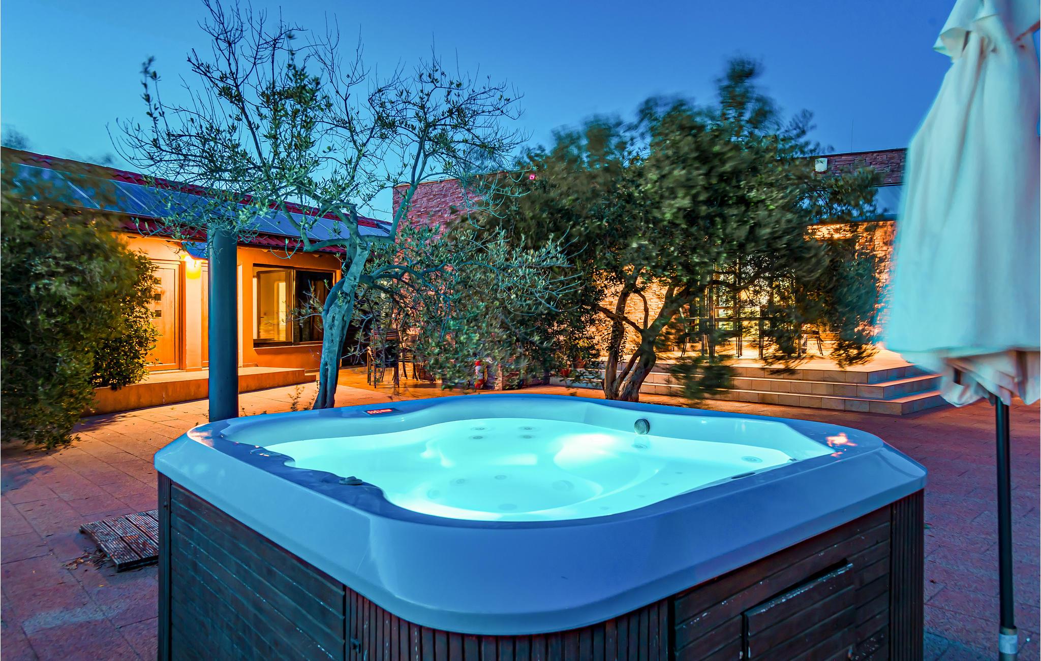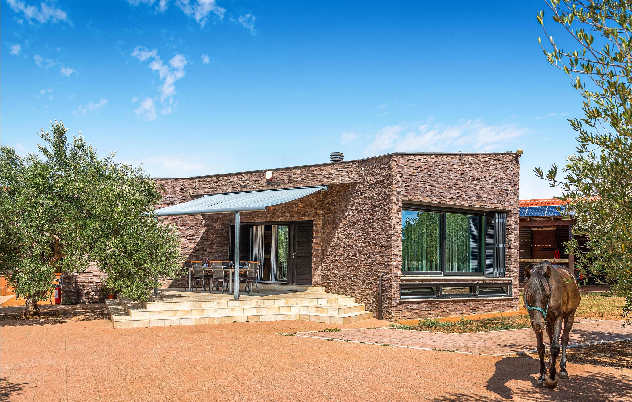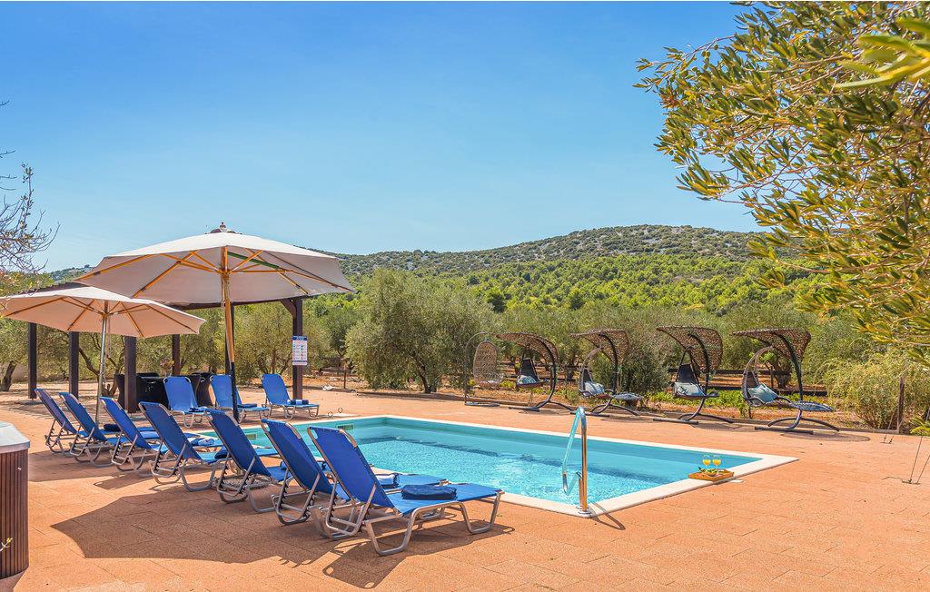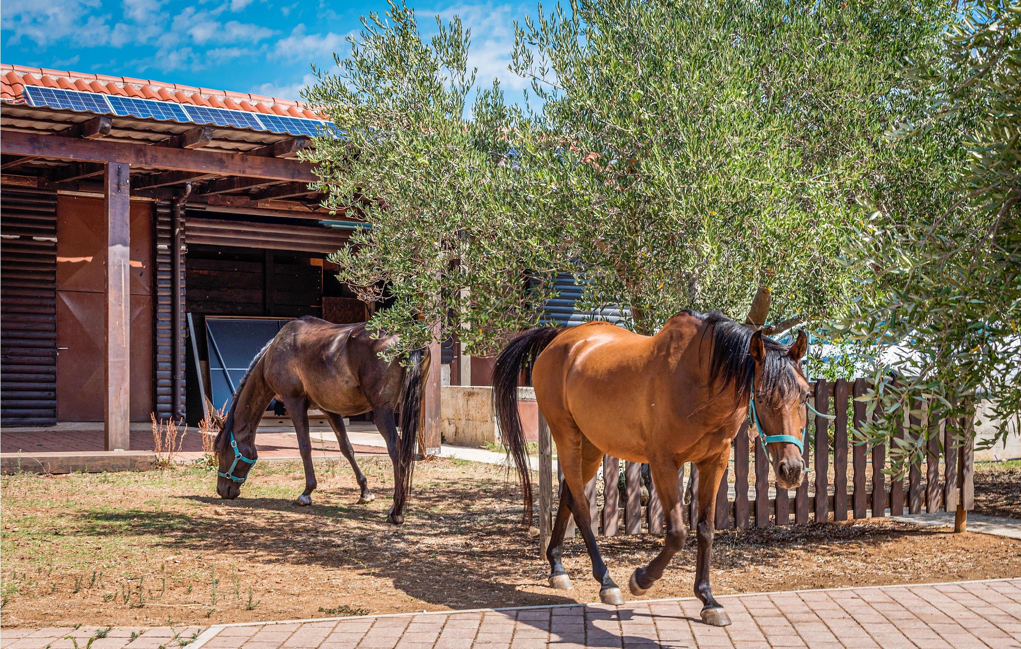 Landsbyen Ivinj ligger mellom Tribunj og Tisno og ved siden av øya Murter. Feriehuset ligger utenfor enhver utvikling og tilbyr dermed mye fred og ro. Det er attraktive, bortgjemte naturstrender innen en radius på ca 2 km, som du kan komme deg til på sykler, motorsykler, elektriske kjøretøyer, hester eller til og med til fots. Den frittliggende eiendommen tilbyr ideelle forhold for ridning i naturen som strekker seg som i uendelig. Foran den omtrent 20 000 m² store eiendommen er det en hippodrom med hesteveddeløpsbane og rideskole hvor du kan ta ridetimer på renrasede arabiske hester. Opplev også eventyr på motocross- og sykkelstier. Naturressurser brukes, inkludert drikkevann, som kommer fra en ca. 80 meter dyp brønn. Dette vannet brukes også til å fylle bassenget og boblebadet. Elektrisitet genereres fra solcellepaneler samt en vindmølle. Den nevnte eiendommen består av to separate hus som står ved siden av hverandre og leies ut sammen. Derfor er de ideelle for flere familier eller en gruppe venner som ønsker å tilbringe en ferie sammen. Det ene huset er spredt over to etasjer, kjelleren og første etasje, og har et attraktivt interiør. Den utvendige trappen fører til øverste etasje. Det andre huset består av en etasje med to soverom, to bad, et rom med rideutstyr, en åpen stue og et sommerkjøkken med stor peis. For sportsfiskere med fiskekort sørger huseierne for eget utstyr. Hvis fisketuren var vellykket, er huseierne villige til å vise deg deres tradisjonelle måte å tilberede fisk på.