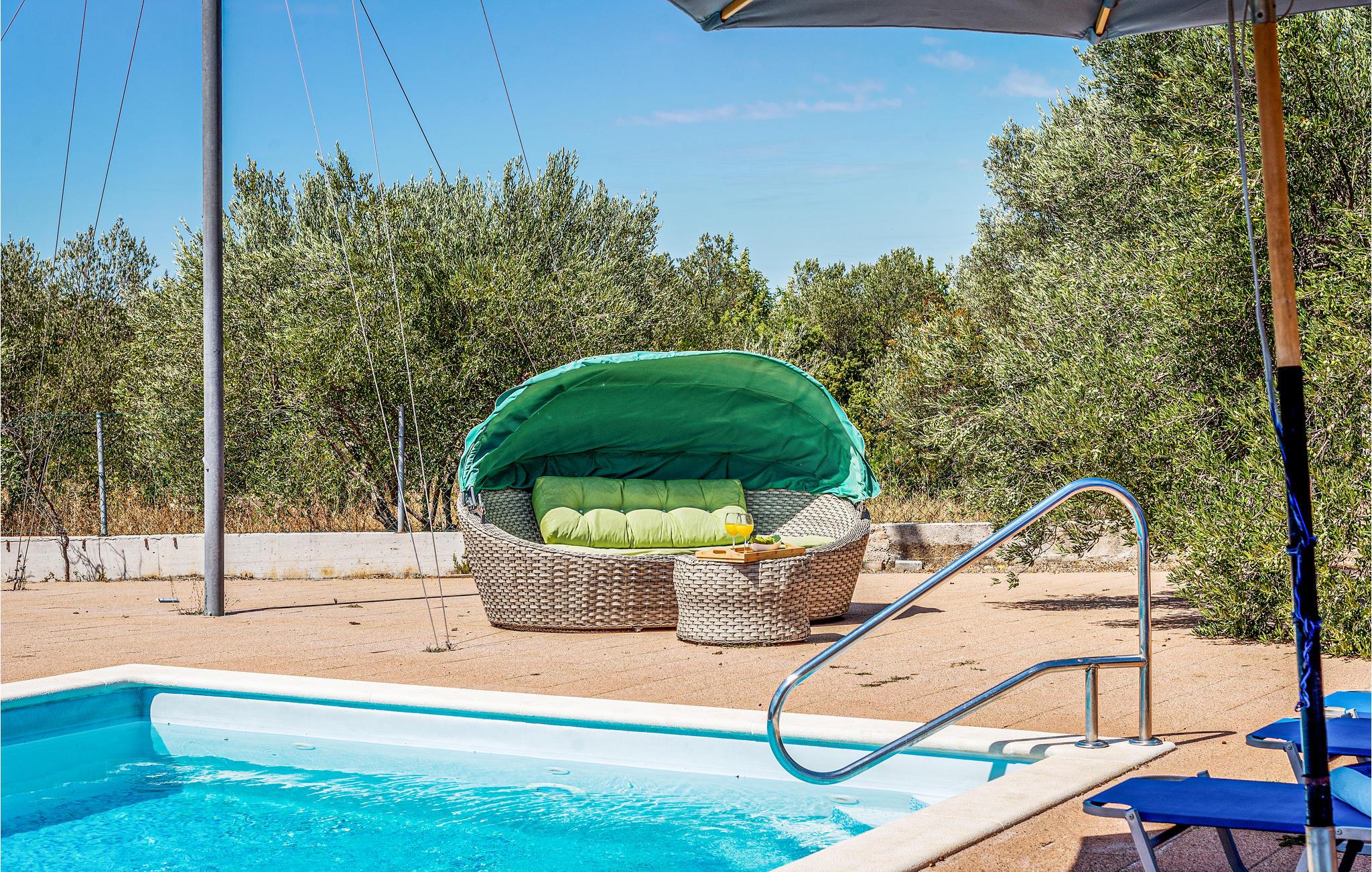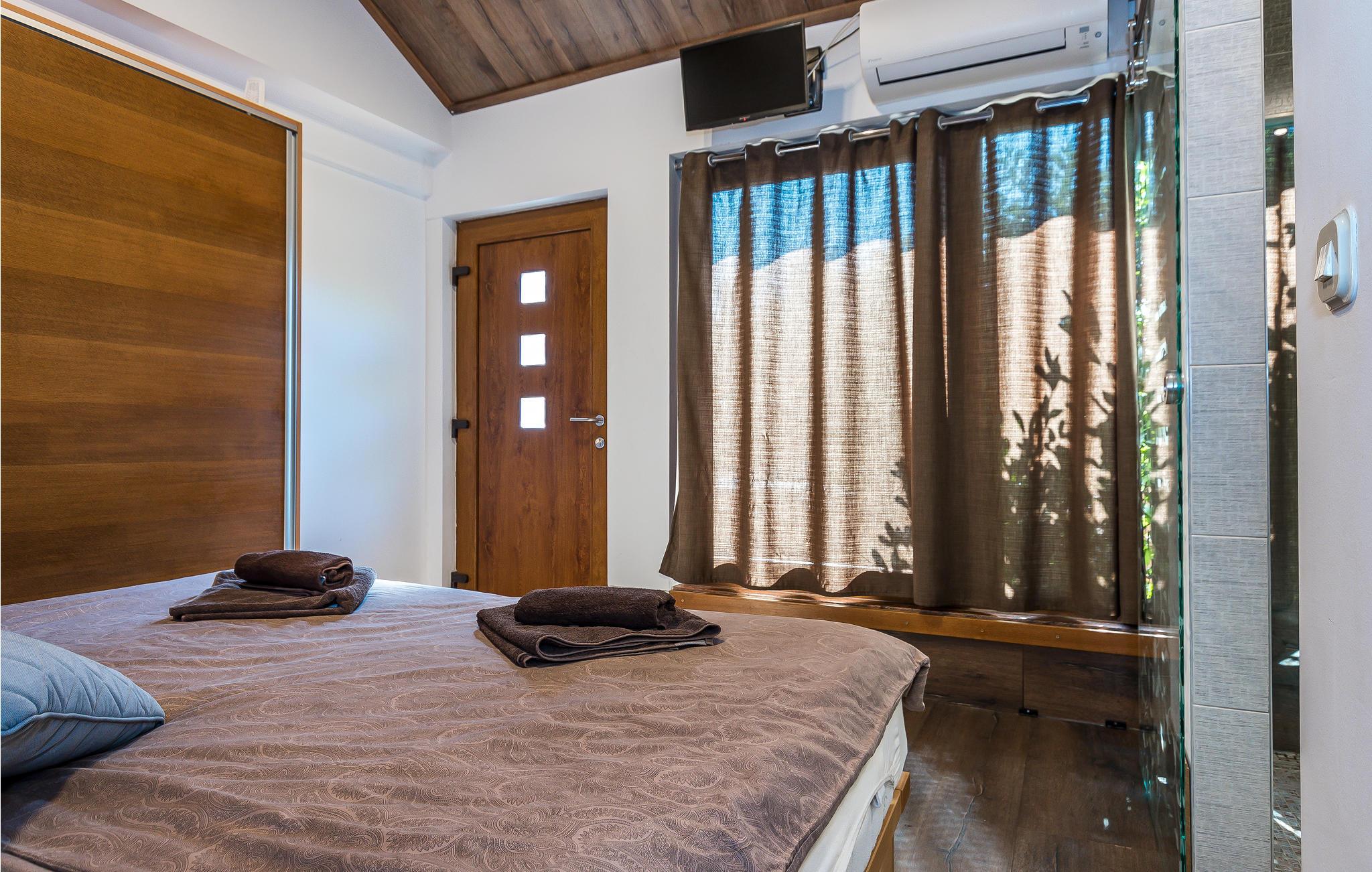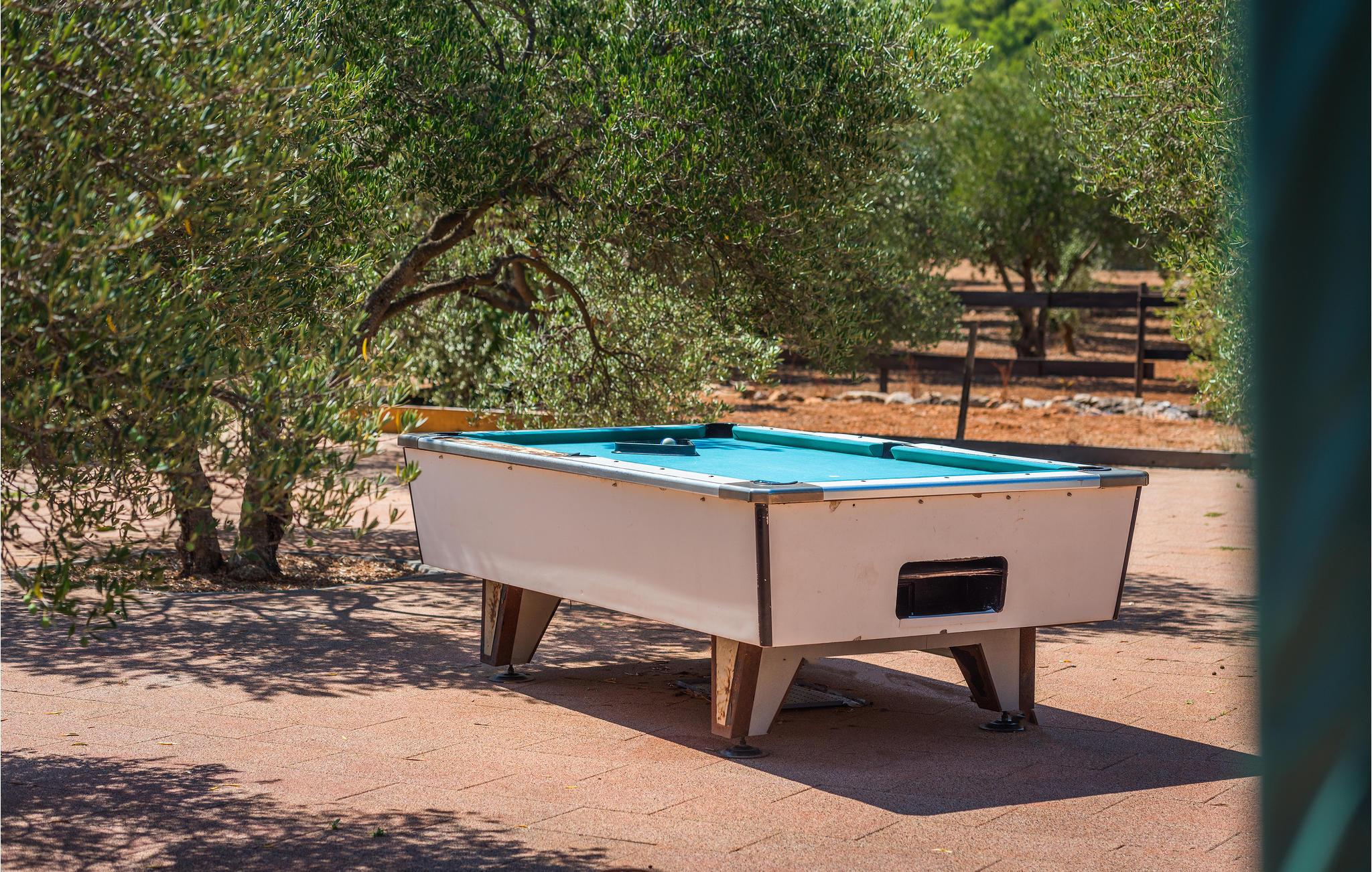 Landsbyen Ivinj ligger mellom Tribunj og Tisno og ved siden av øya Murter. Feriehuset ligger utenfor enhver utvikling og tilbyr dermed mye fred og ro. Det er attraktive, bortgjemte naturstrender innen en radius på ca 2 km, som du kan komme deg til på sykler, motorsykler, elektriske kjøretøyer, hester eller til og med til fots. Den frittliggende eiendommen tilbyr ideelle forhold for ridning i naturen som strekker seg som i uendelig. Foran den omtrent 20 000 m² store eiendommen er det en hippodrom med hesteveddeløpsbane og rideskole hvor du kan ta ridetimer på renrasede arabiske hester. Opplev også eventyr på motocross- og sykkelstier. Naturressurser brukes, inkludert drikkevann, som kommer fra en ca. 80 meter dyp brønn. Dette vannet brukes også til å fylle bassenget og boblebadet. Elektrisitet genereres fra solcellepaneler samt en vindmølle. Den nevnte eiendommen består av to separate hus som står ved siden av hverandre og leies ut sammen. Derfor er de ideelle for flere familier eller en gruppe venner som ønsker å tilbringe en ferie sammen. Det ene huset er spredt over to etasjer, kjelleren og første etasje, og har et attraktivt interiør. Den utvendige trappen fører til øverste etasje. Det andre huset består av en etasje med to soverom, to bad, et rom med rideutstyr, en åpen stue og et sommerkjøkken med stor peis. For sportsfiskere med fiskekort sørger huseierne for eget utstyr. Hvis fisketuren var vellykket, er huseierne villige til å vise deg deres tradisjonelle måte å tilberede fisk på.