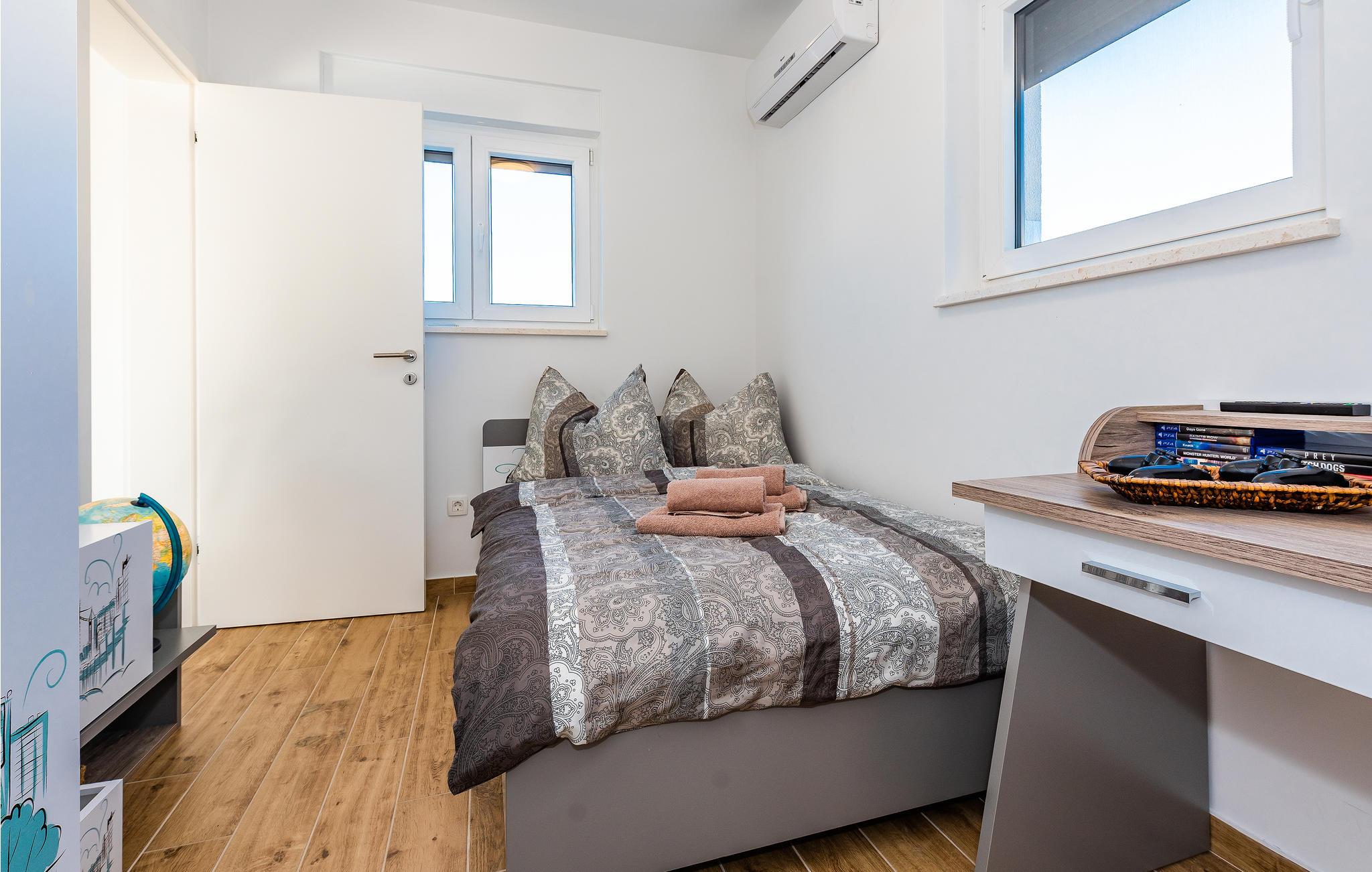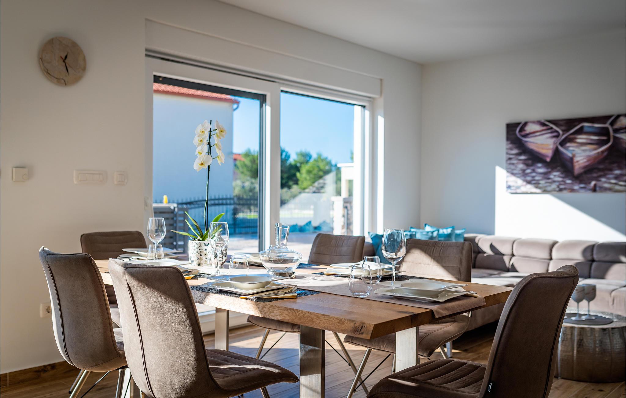 Den tiltalende arkitekturen kombinert med stilfull design og en rekke andre fordeler inviterer deg til å nyte en avslappende ferie med familie og venner. Dette imponerende feriehuset består av ca. 140 m² boareal fordelt på totalt to etasjer. Huset ligger på en inngjerdet tomt med privat basseng, og det er en koselig grillplass. Den gode beliggenheten og nærheten til byene Ibenik, Vodice og Zadar er bare noen av fordelene med dette huset. Benytt anledningen til å besøke nasjonalparkene som er verdt å se, som Krka med sine syv fossefall, Paklenica, som er spesielt populært blant turgåere, og Adriaterhavets perler, Kornati-øyene, hvor du kan besøke den fantastiske øyverdenen på en båttur.