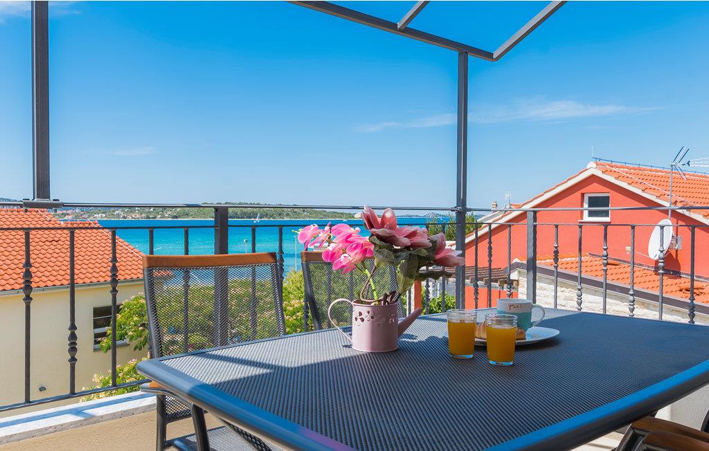Denne vakre ferieleiligheten ligger i den lille byen Srima i andre etasje. Den består av et kjøkken med stue og to soverom. Du kan tilbringe avslappende øyeblikk på balkongen med en kopp morgenkaffe og nyte den vakre utsikten.
