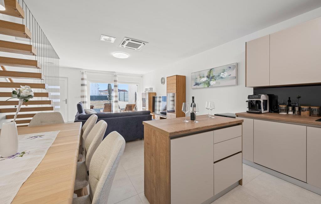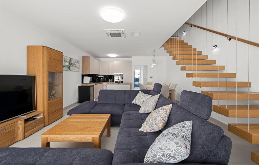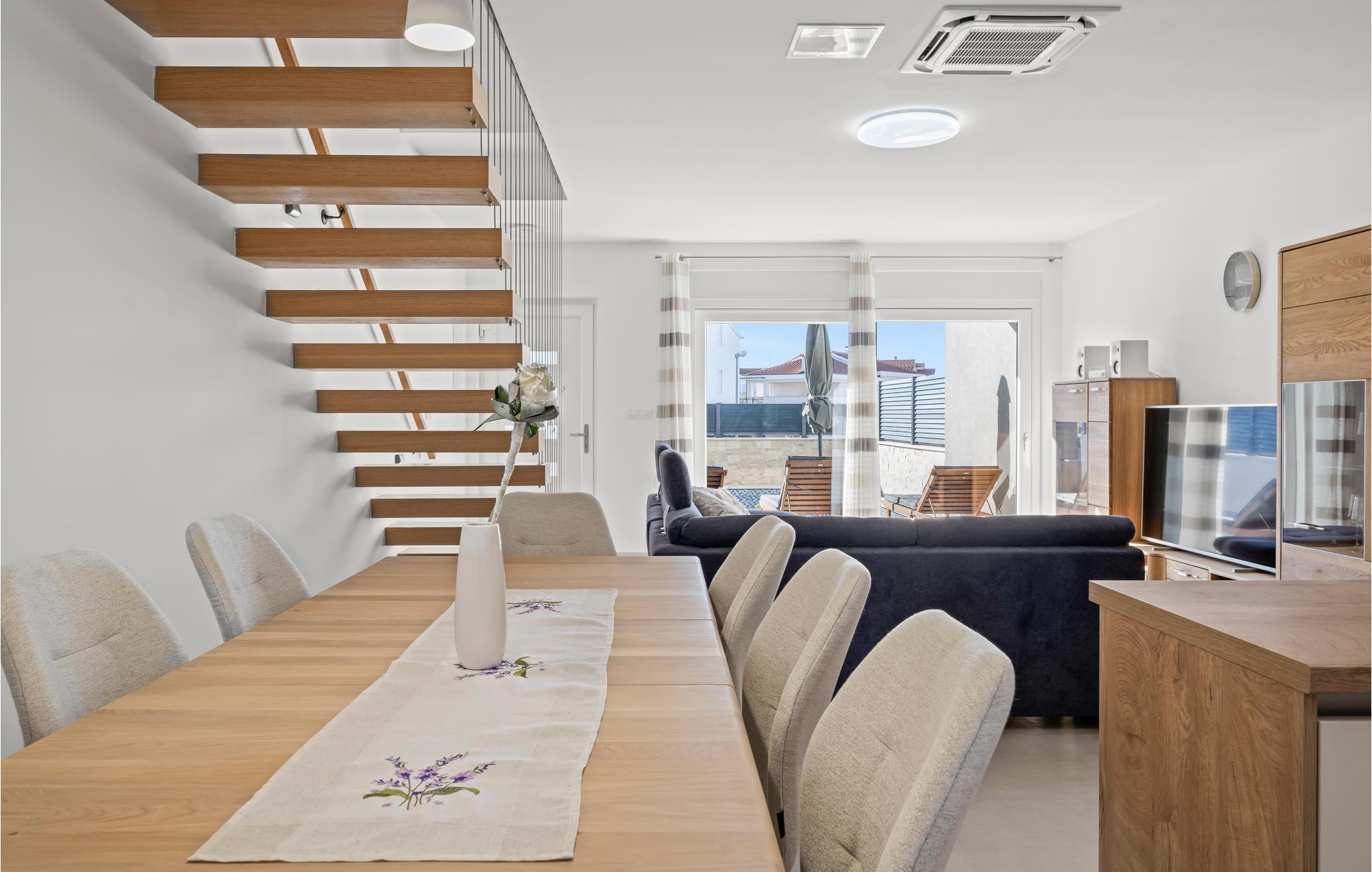 Nyt familieferien i dette innbydende feriehuset i Srima. Den vakre innredningen, som er fordelt på 1. og 2. etasje, byr på en herlig atmosfære der du kan føle deg hjemme sammen med det store reisefølget. Lag mat, spis og slapp av sammen, og bruk den åpne trappen til øverste etasje, der du kan tilbringe rolige kvelder. Den kompakte hagen med svømmebasseng og solterrasse og den koselige balkongen innbyr til å tilbringe mye tid utendørs.