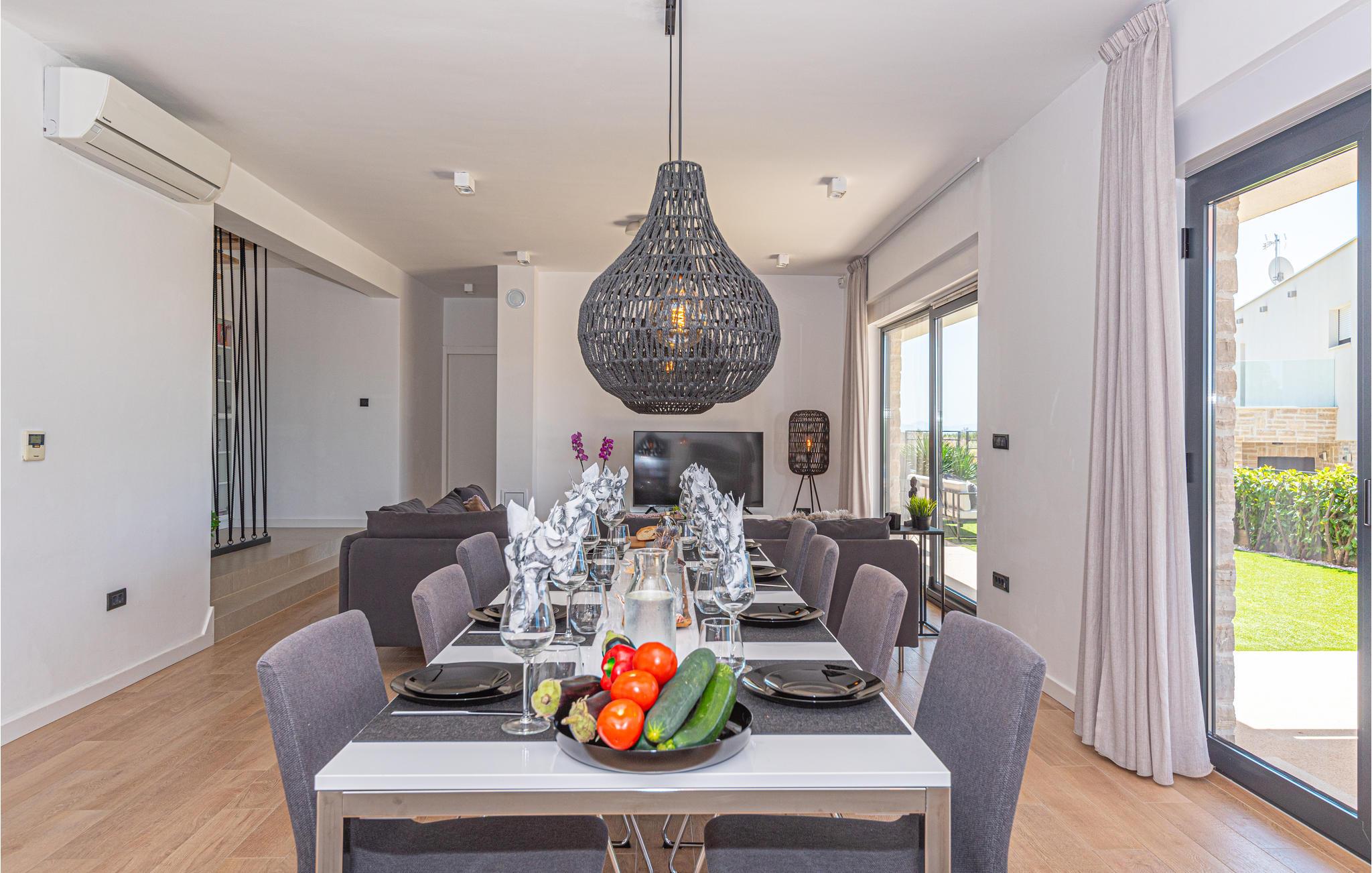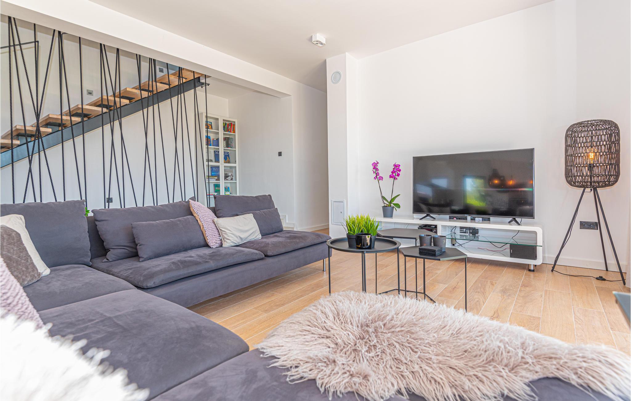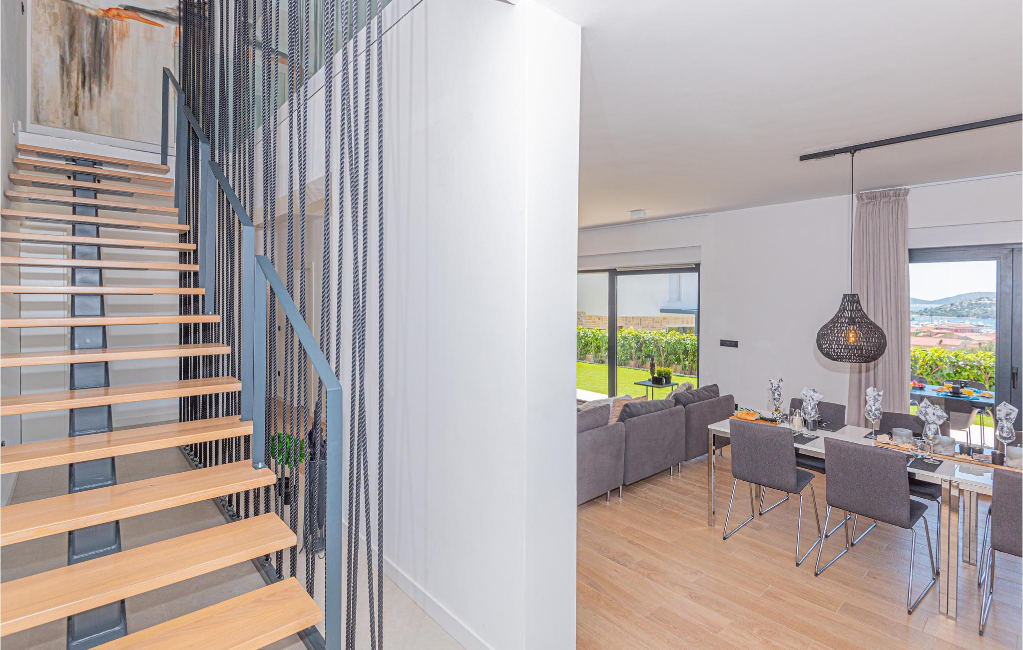 Med sin moderne sjarm inviterer dette vakre huset deg til å nyte en avslappende ferie ved sjøen. Du vil umiddelbart føle deg hjemme i de lyse, moderne og stilfullt innredede rommene. Vinduer fra gulv til tak gjør at du kan få mest mulig ut av den fantastiske utsikten. Slapp av i den romslige sofaen i stuen om kvelden og nyt tiden sammen.