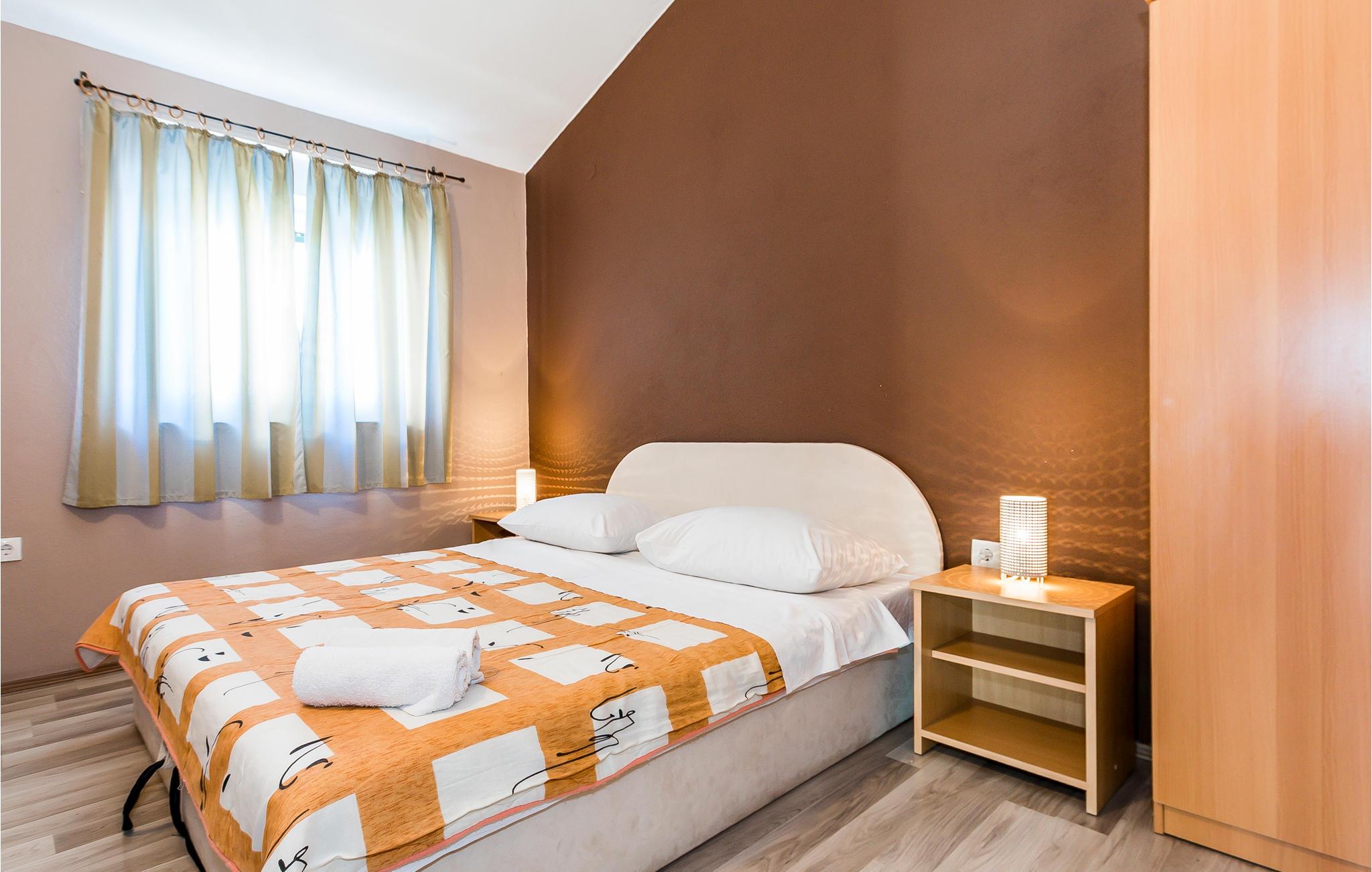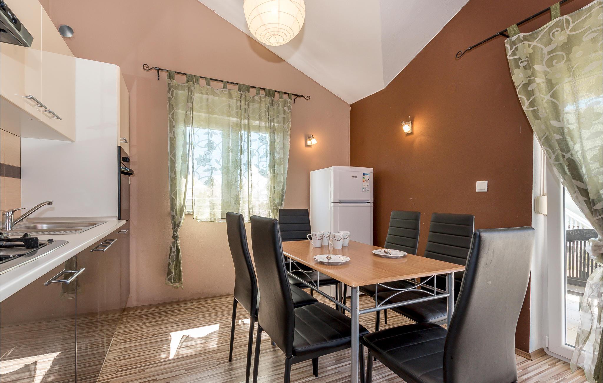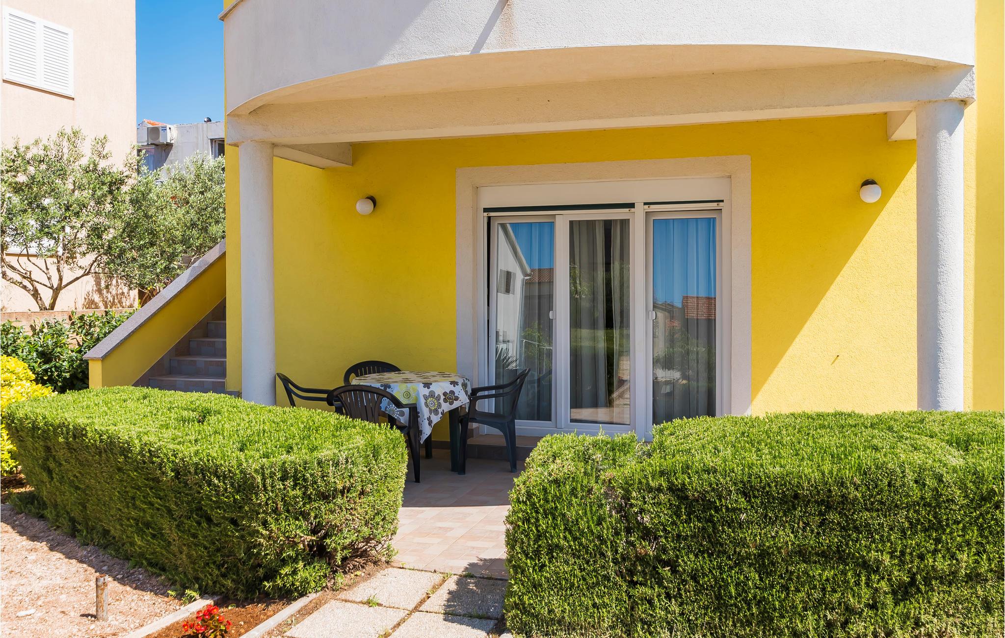 Dette moderne innredede feriehuset ligger i den rolige fiskerlandsbyen Tribunj, nær sjøen og stranden i Zamalin. Det er spredt over to etasjer, som er forbundet med utvendige trapper. I Tribunj finner du den typiske dalmatiske stilen med steinhus og trange gater, hvor du finner restauranter og tavernaer hvor du kan smake på det lokale kjøkkenet. I tillegg er stedet kjent for sitt eselkappløp. Besøk den nærliggende øya Murter og nasjonalparkene Krka og Kornati. Hvis du er ute etter underholdning og et rikt natteliv, kan du besøke Vodice, omtrent 3 km unna.
