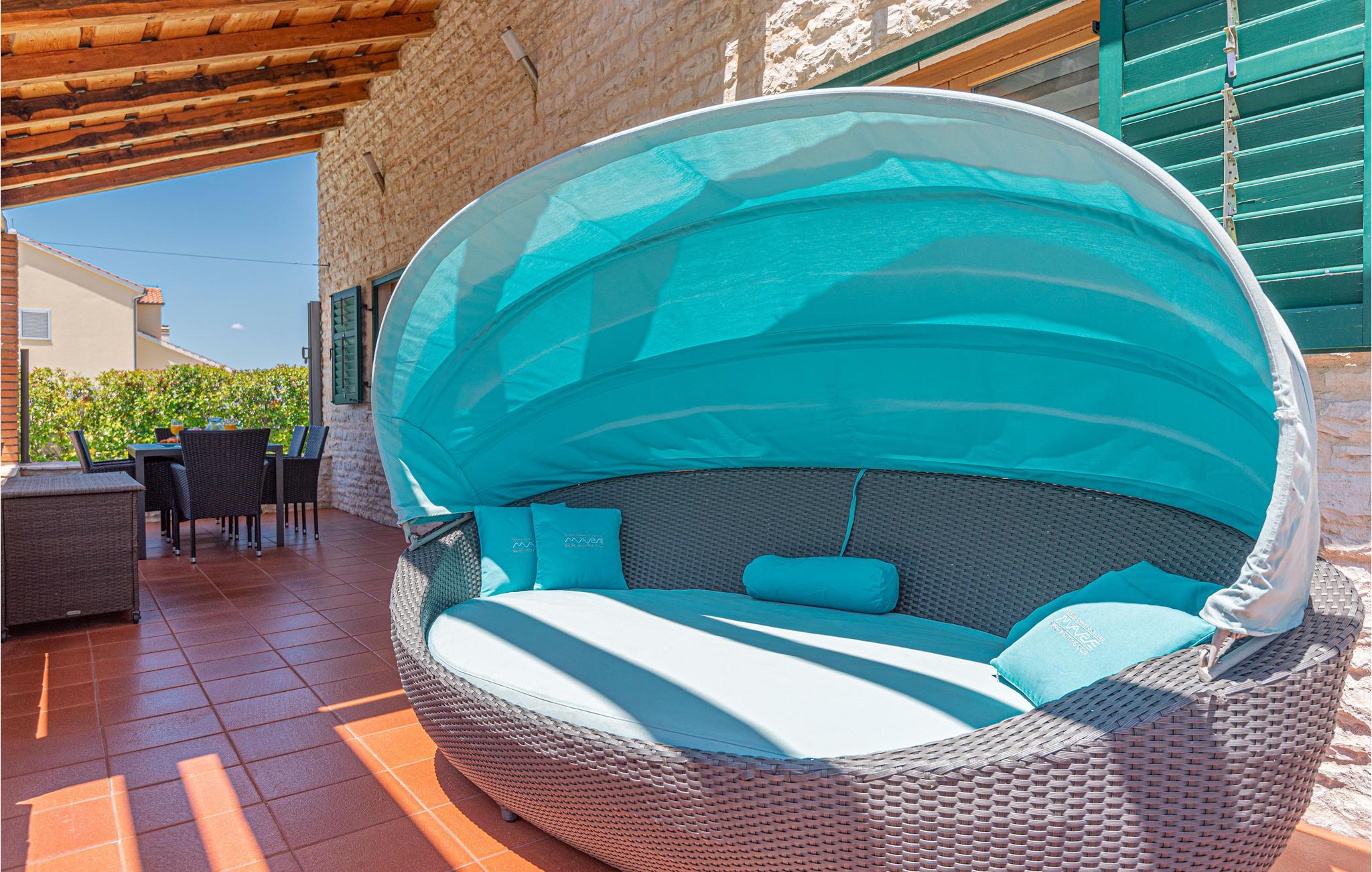 Uteområdet etterlater heller ikke noe å ønske. Det store bassenget sørger for forfriskninger på varme dager mens du slapper av på solsengene. Den overbygde terrassen med sitteplasser og grill innbyr til koselige måltider under åpen himmel.