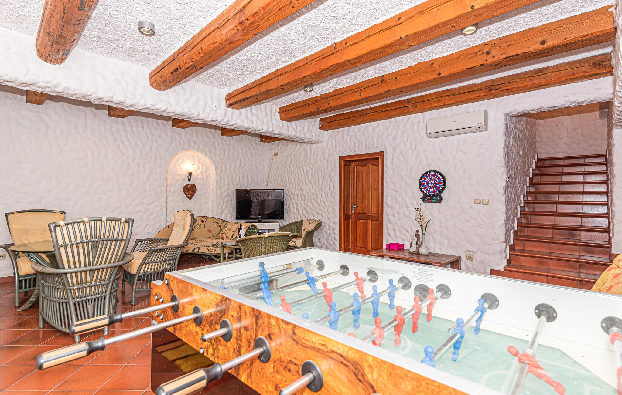 Nyt oppholdet i dette stilfulle feriehuset, som tilbyr deg en avslappende ferie. Den åpne planløsningen sørger for en hyggelig og sosial atmosfære, mens møbleringen av høy kvalitet sikrer komfort. Huset har en romslig stue med en massasjestol hvor du kan slappe av. Ved siden av er det en spiseplass og et fullt utstyrt kjøkken. Kjelleren har en egen velvære- og underholdningsavdeling med badstue og et spillrom med biljard, dart og bordfotball.