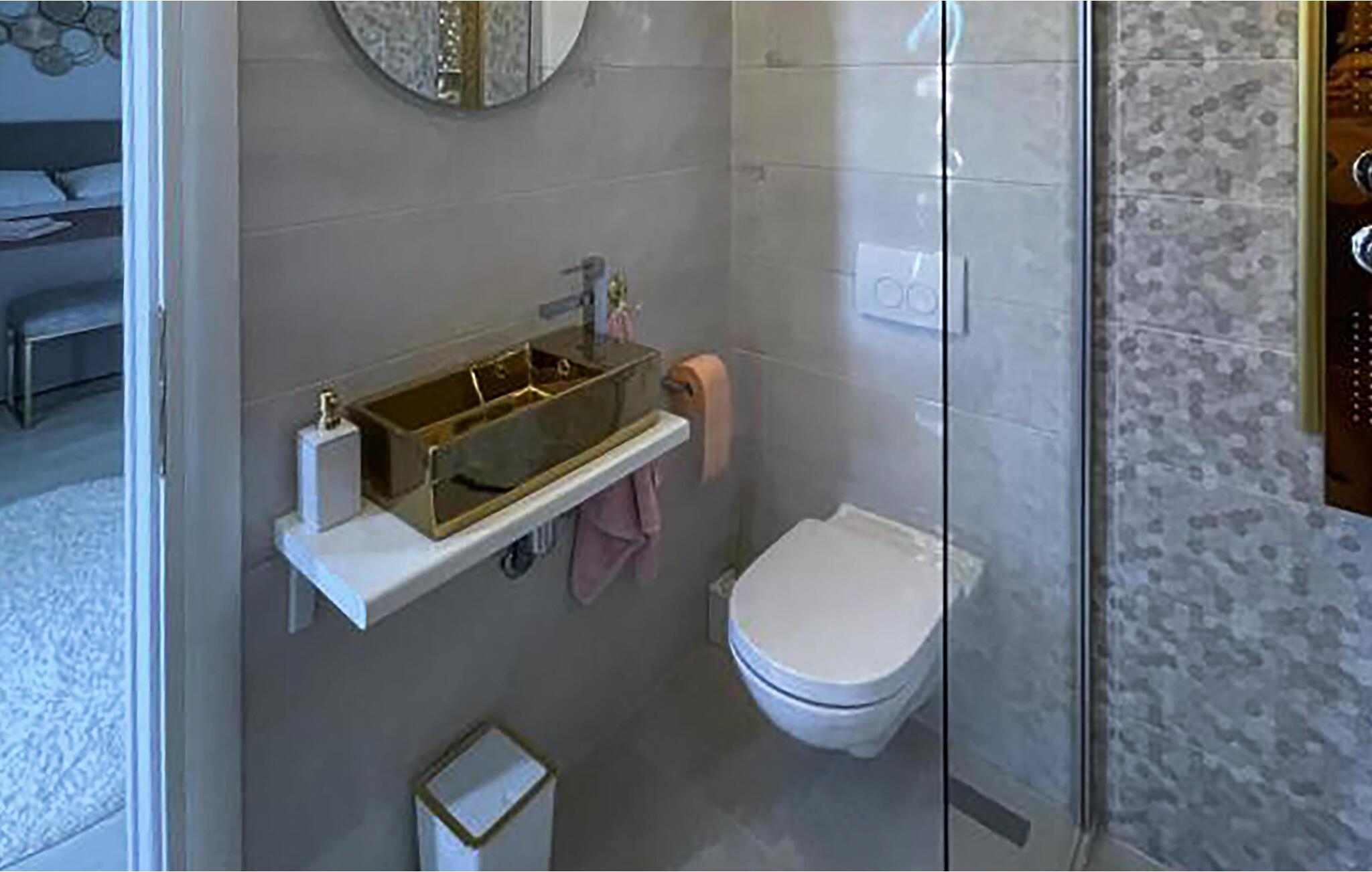 - WC med varmt og kaldt vann, Dusj