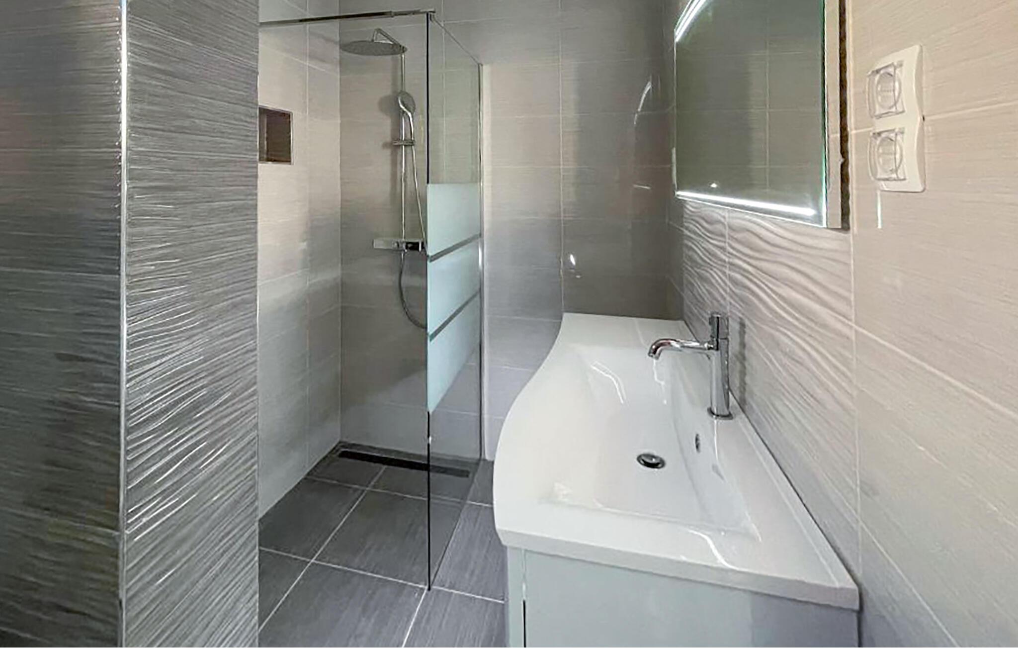 Du vil føle deg som hjemme i dette stilfullt innredede feriehuset. Vinduer fra gulv til tak, en komfortabel sofagruppe og en bardisk skaper en avslappet atmosfære der du raskt kan slappe av. Enten du strømmer favorittserien din, lytter til en interessant podkast eller tilbereder ferske måltider på kjøkkenet, kan du selv bestemme tempoet på dagen.