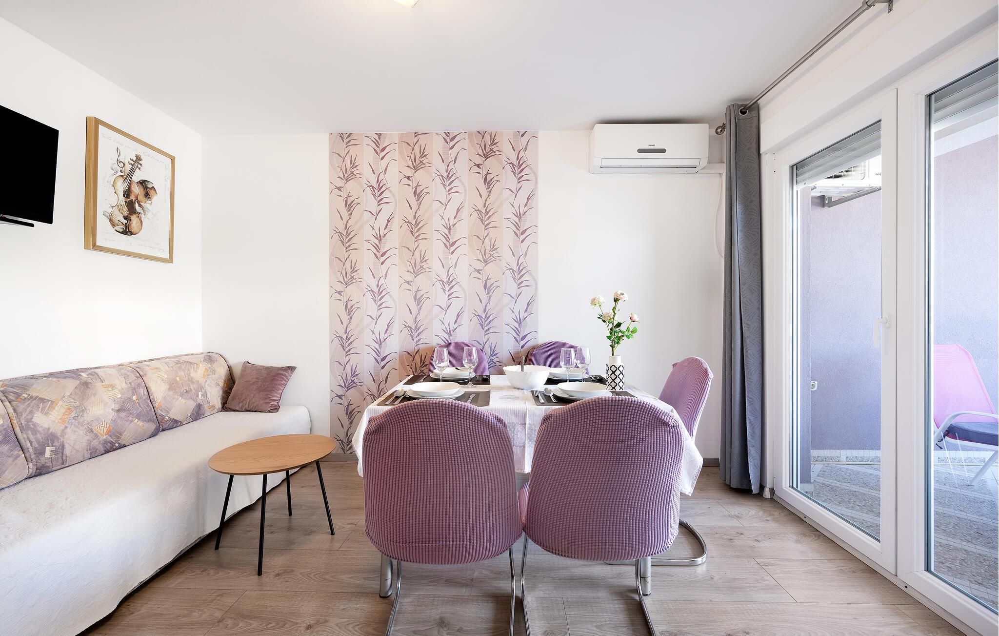 Denne lyse og kjærlig innredede ferieleiligheten innbyr deg og familien til å føle dere som hjemme. Den koselige stuen med åpen kjøkkenløsning gir dere plass til å lage mat sammen og planlegge ferien. På balkongen kan du nyte solen og starte dagen på en avslappet måte. For større familier eller venner finnes det en annen ferieleilighet i samme hus, perfekt for å reise sammen med litt privatliv.