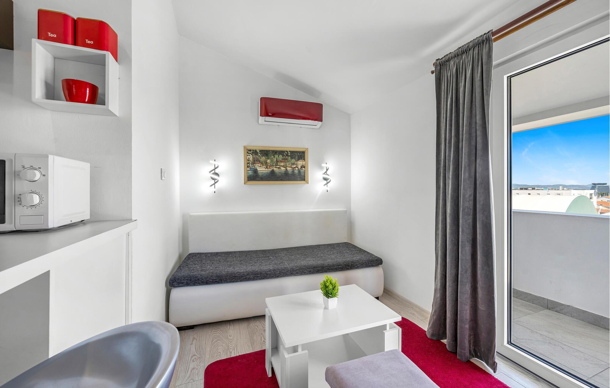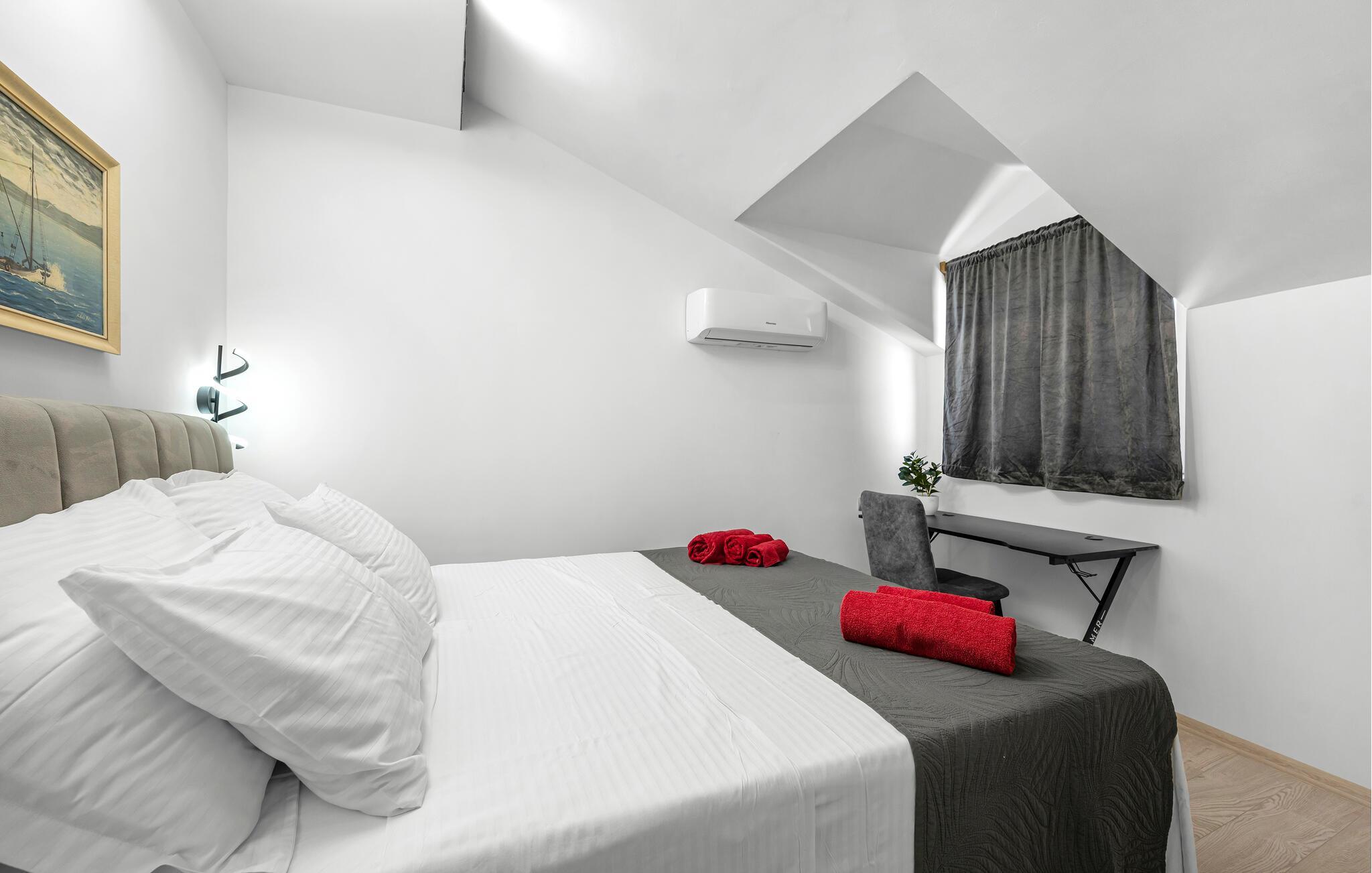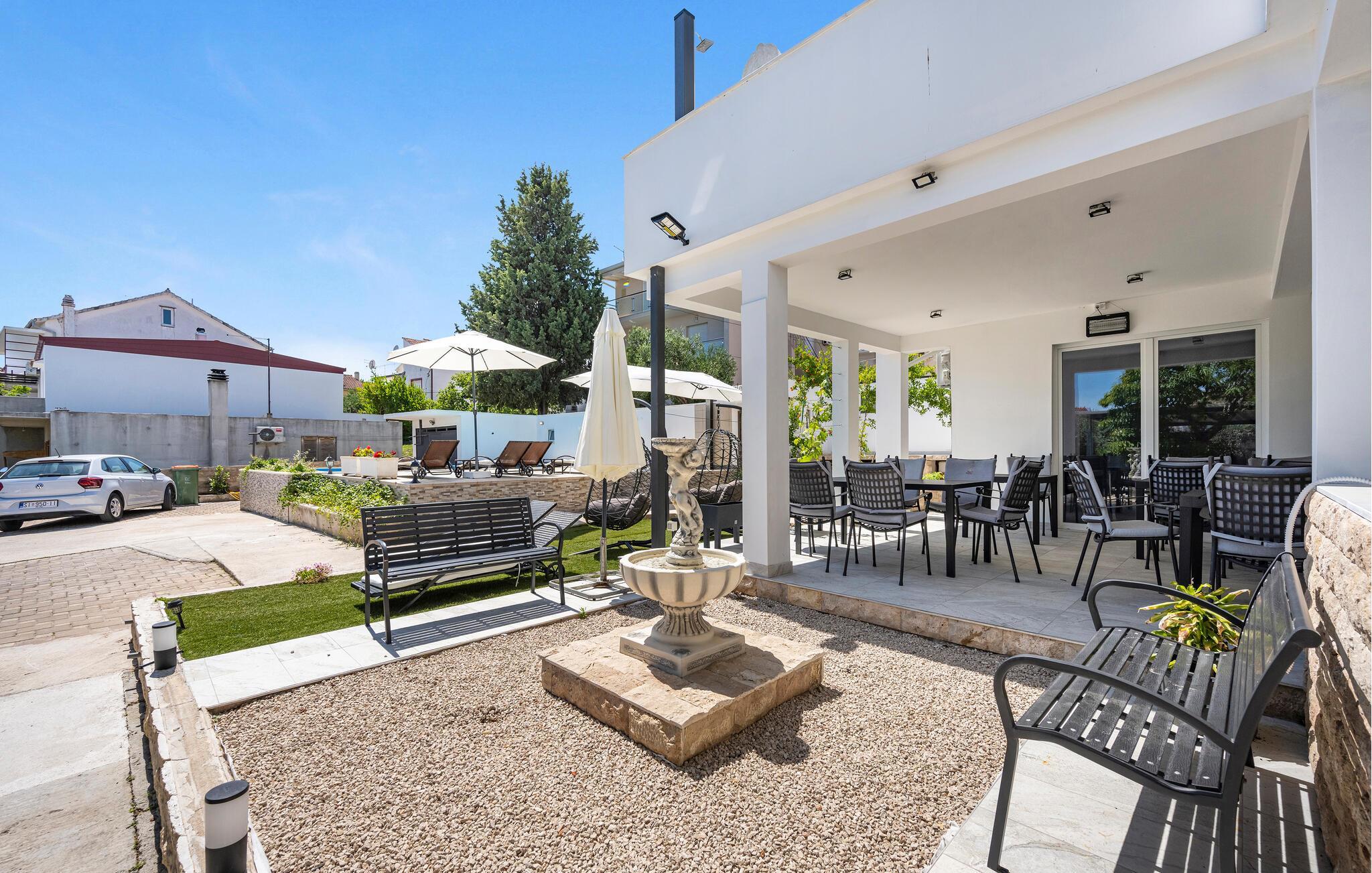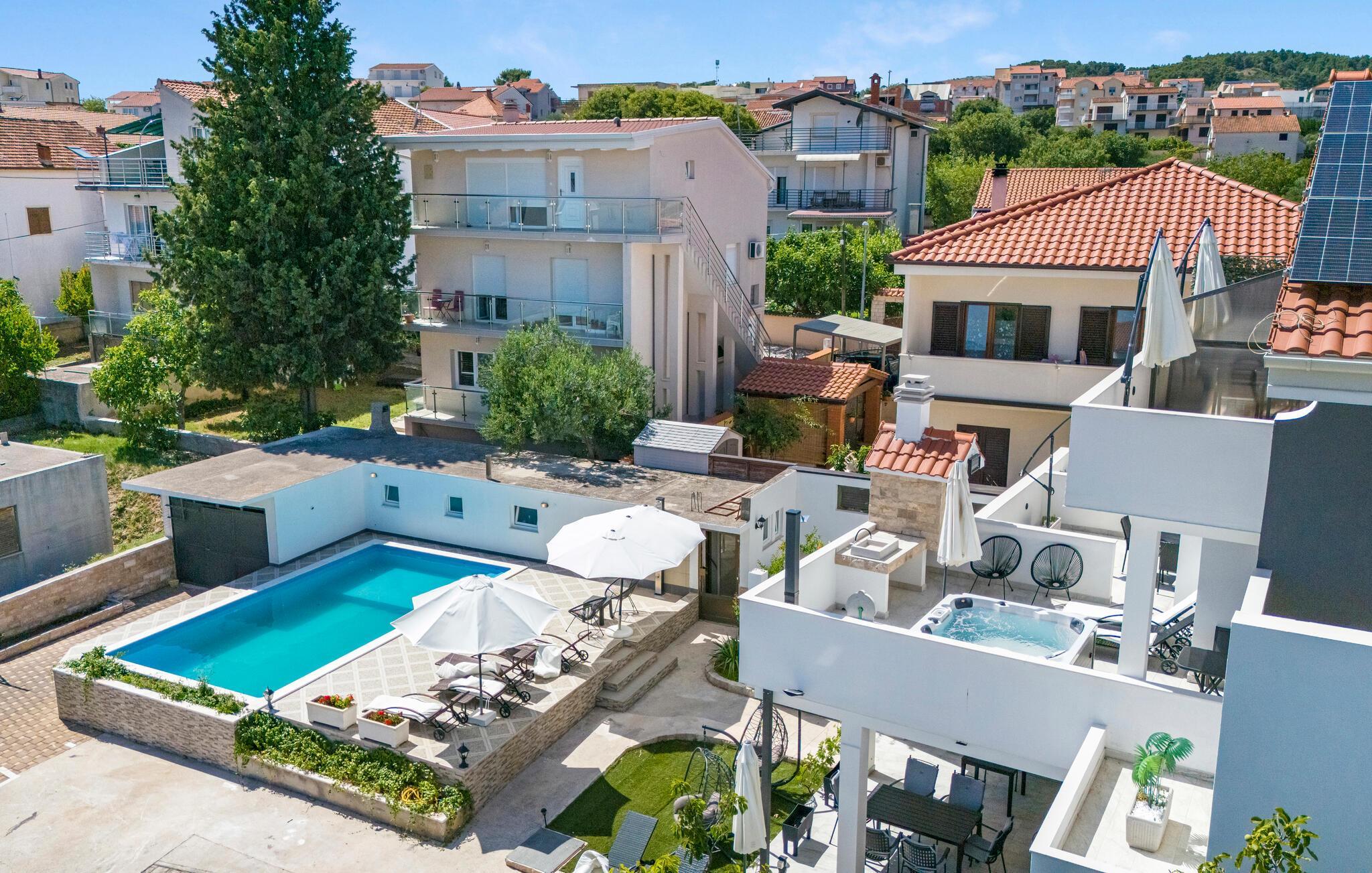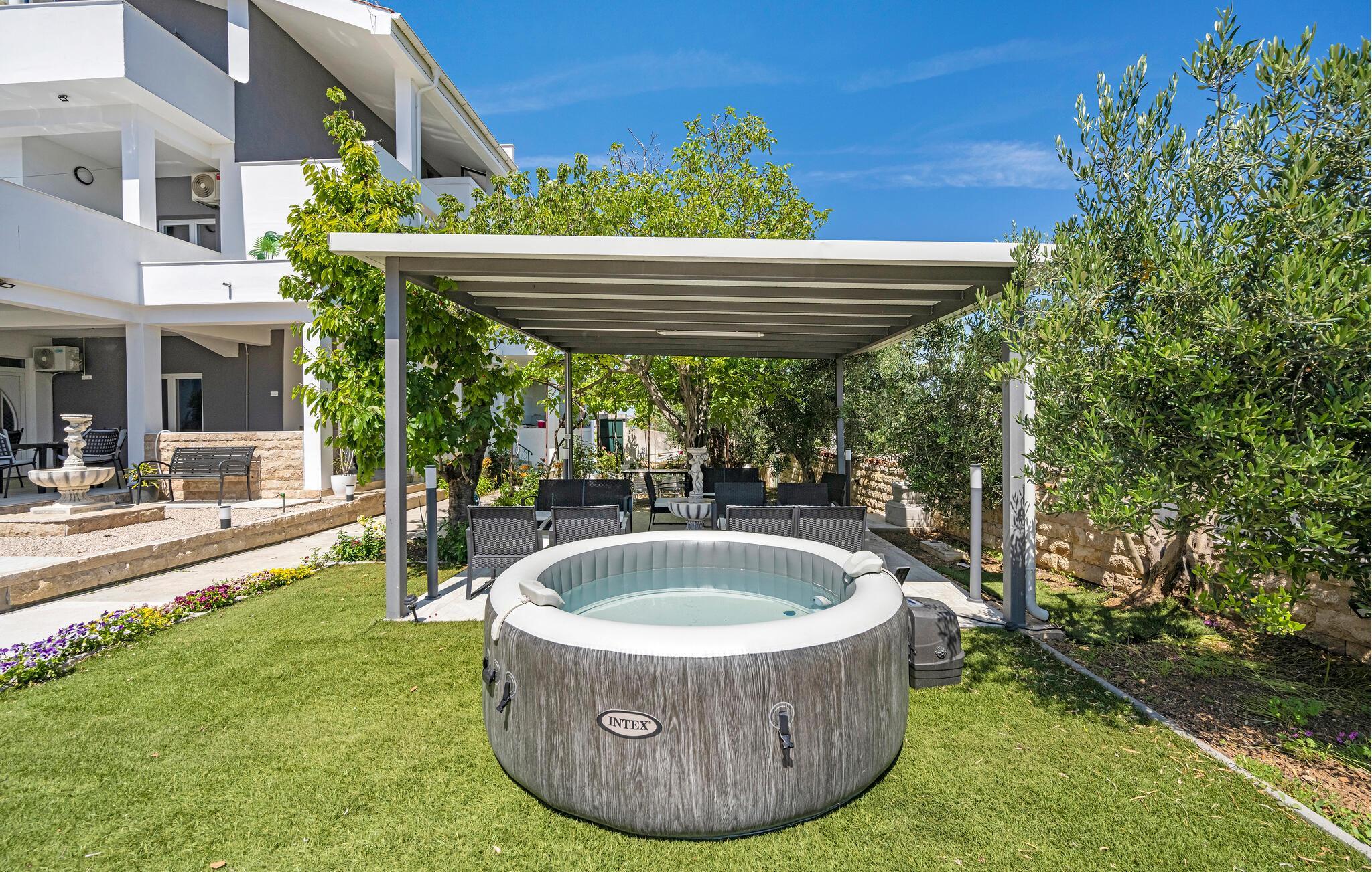 Den livlige kystbyen Vodice er kjent for sine vakre strender og sitt klare vann. Det er bare noen minutters gange fra leiligheten til Plave-plassen og Hangar-stranden. Sentrum innbyr til spaserturer med kafeer, restauranter og små butikker, og den nærliggende marinaen er perfekt for spaserturer ved vannet. Utflukter til Krka nasjonalpark eller Kornati-øyene byr på uforglemmelige naturopplevelser og er lett tilgjengelige herfra.