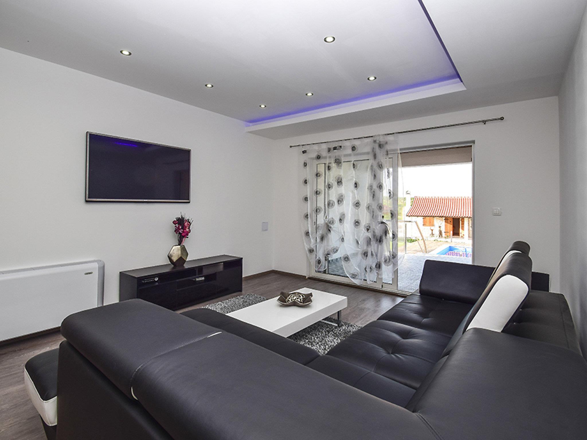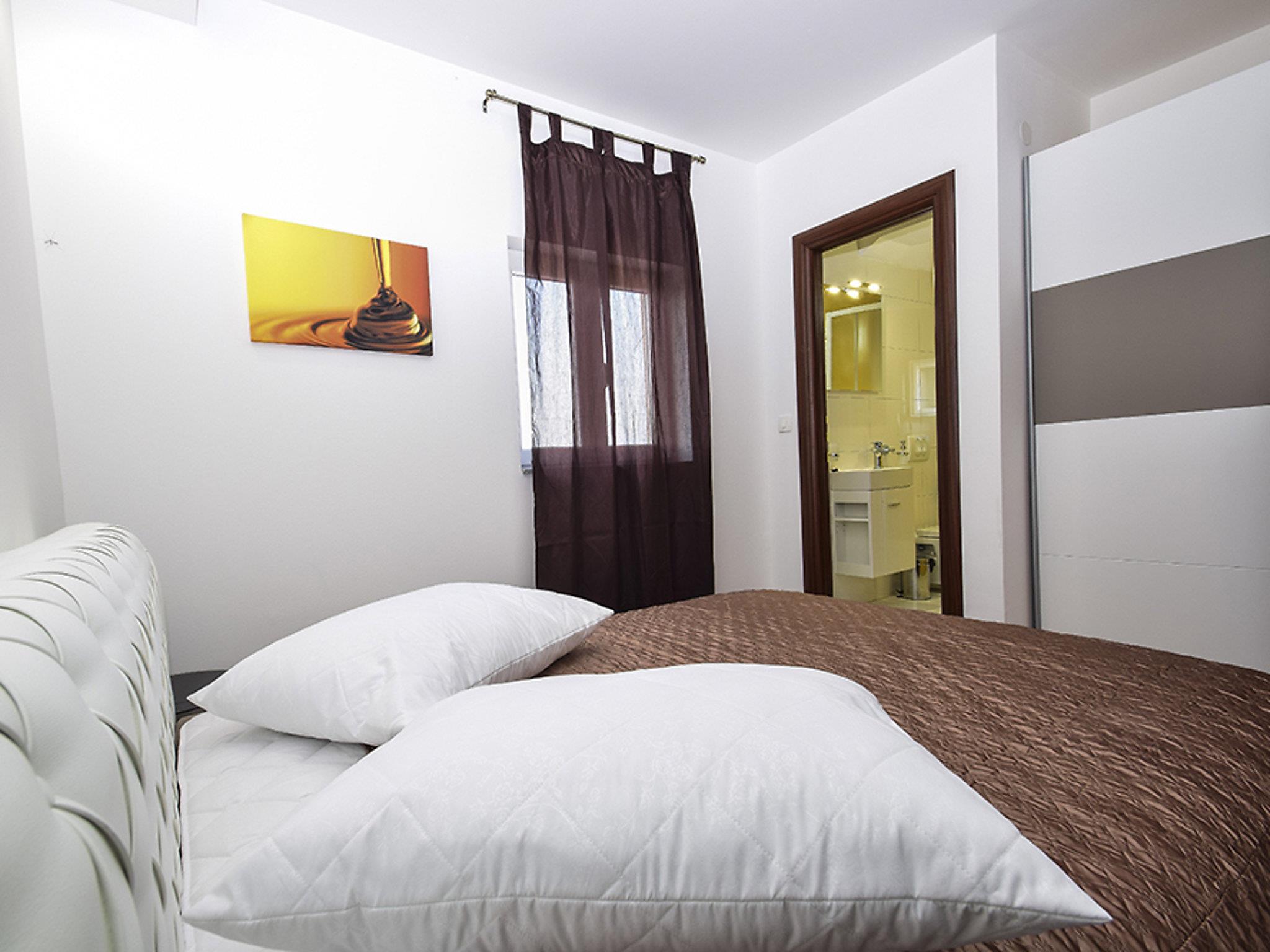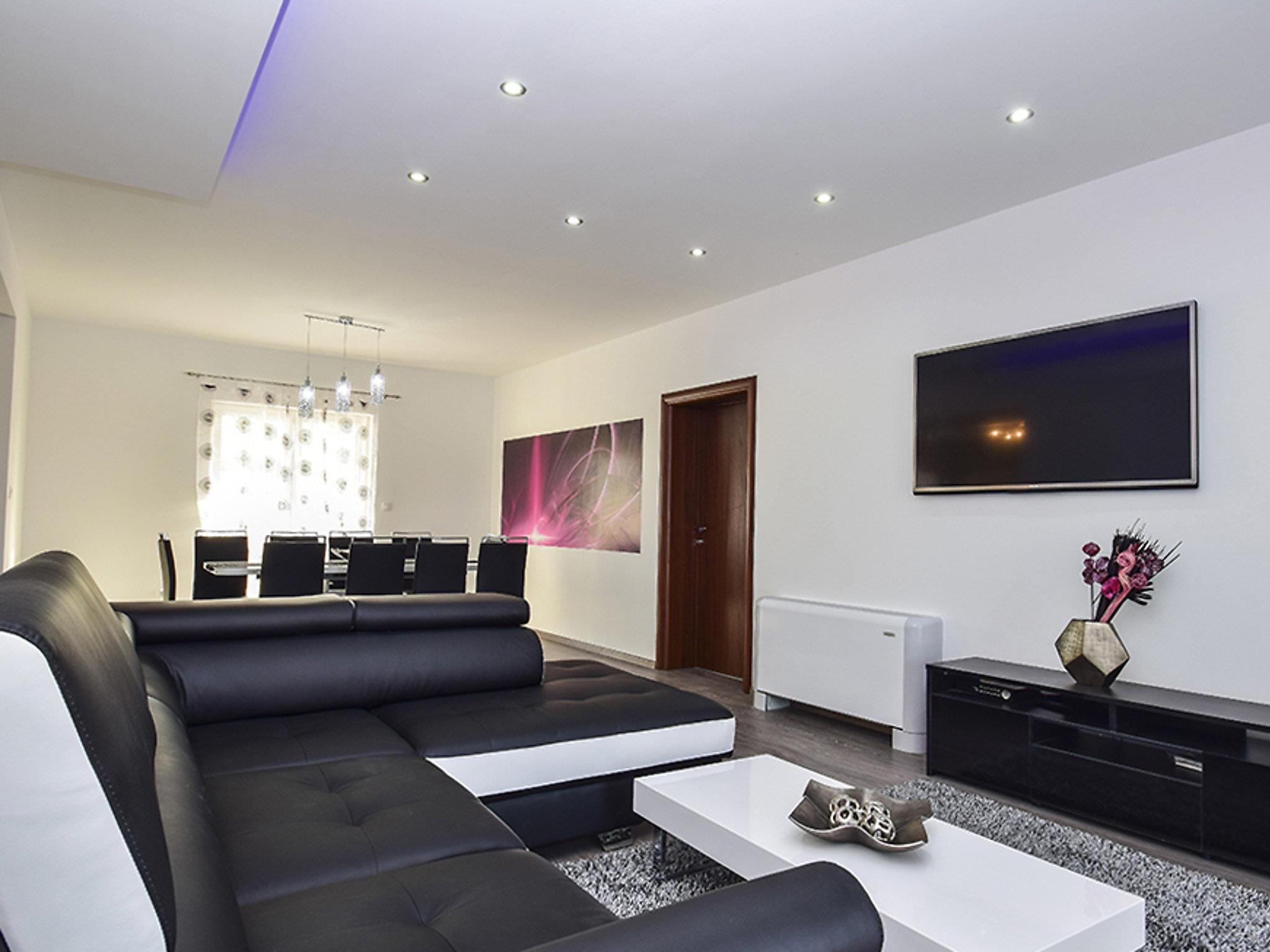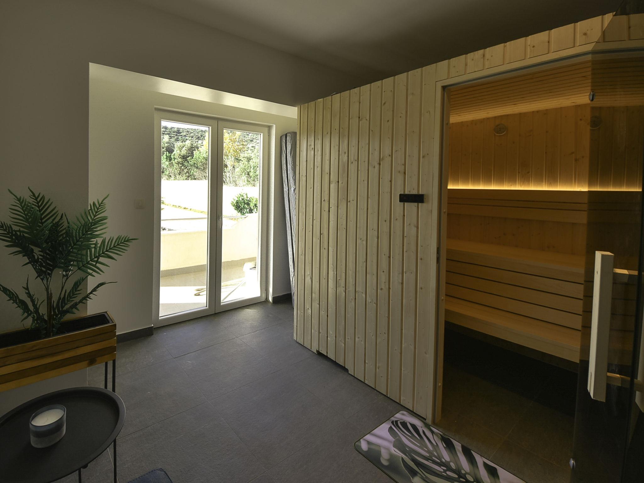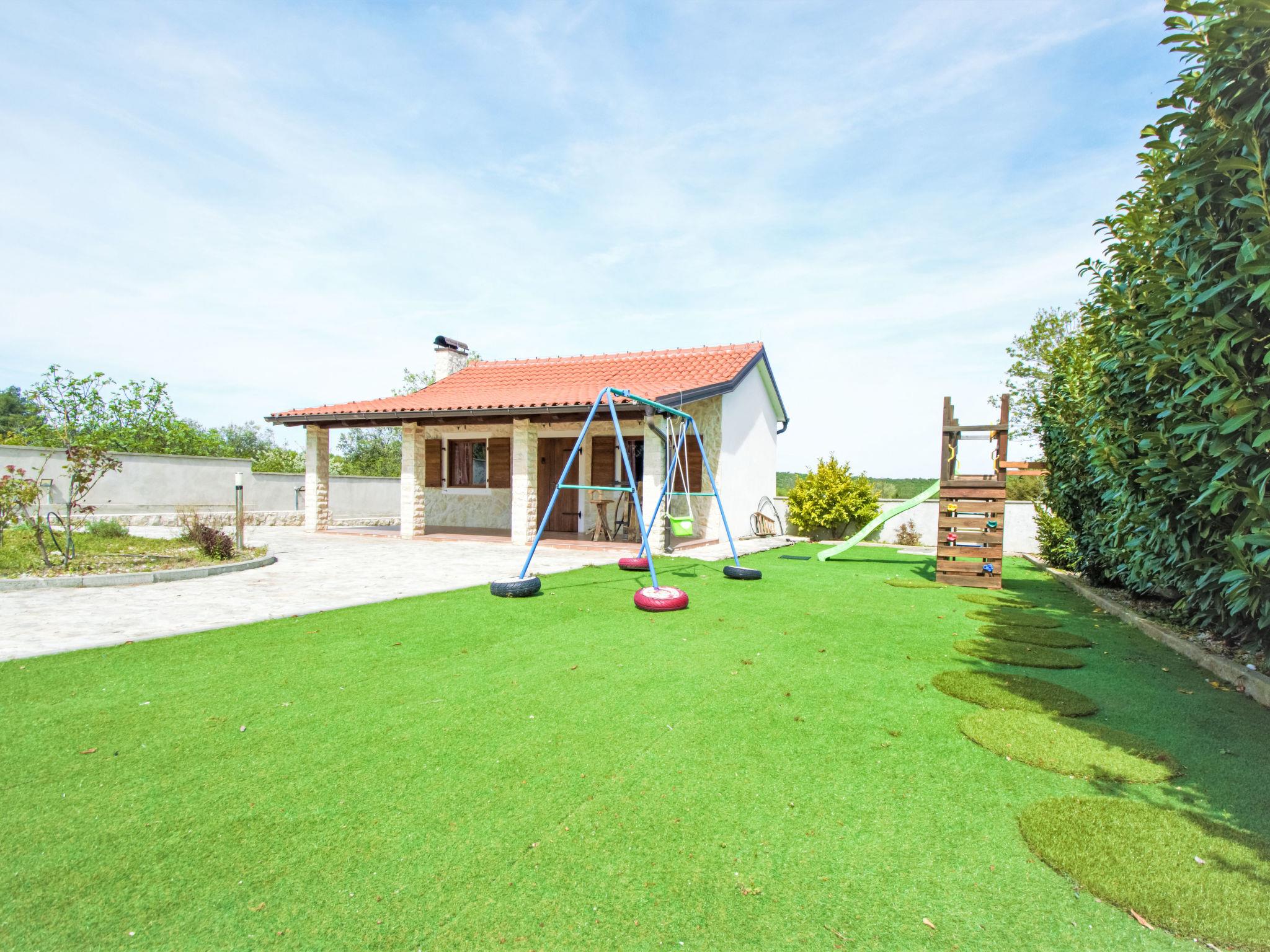 Single-family house "Julija", 2 storeys. In the hamlet Grabovci 11 km from the centre of Vodice, in a sunny position, 8 km from the sea, located by a road. Private: property 3'500 m2 (fenced) with lawn 100 m2, swimming pool angular (25 m2, depth 140 cm, seasonal availability: 01.May. - 15.Oct.). Outdoor shower, pool house with fridge, WC and cooking stove, table tennis, boules, arbour (20 m2), terrace (80 m2), garden furniture, barbecue, children's playground (slide, swing). In the house: internet access, sauna, hot tub, table football, central heating system, washing machine. Available: boat (extra). Room cleaning on request (extra). Airport transfer (extra). Roofed, parking (for 3 cars) at the house on the premises. Shop 10 km, restaurant 8 km, bus stop 9 km, pebble beach 12 km, public bathing area 12 km. Cycle lane 6 km. Nearby attractions: NP Krka 30 km. Well-known lakes can easily be reached: Vransko jezero 20 km. On request: airport transfer to the holiday accommodation.