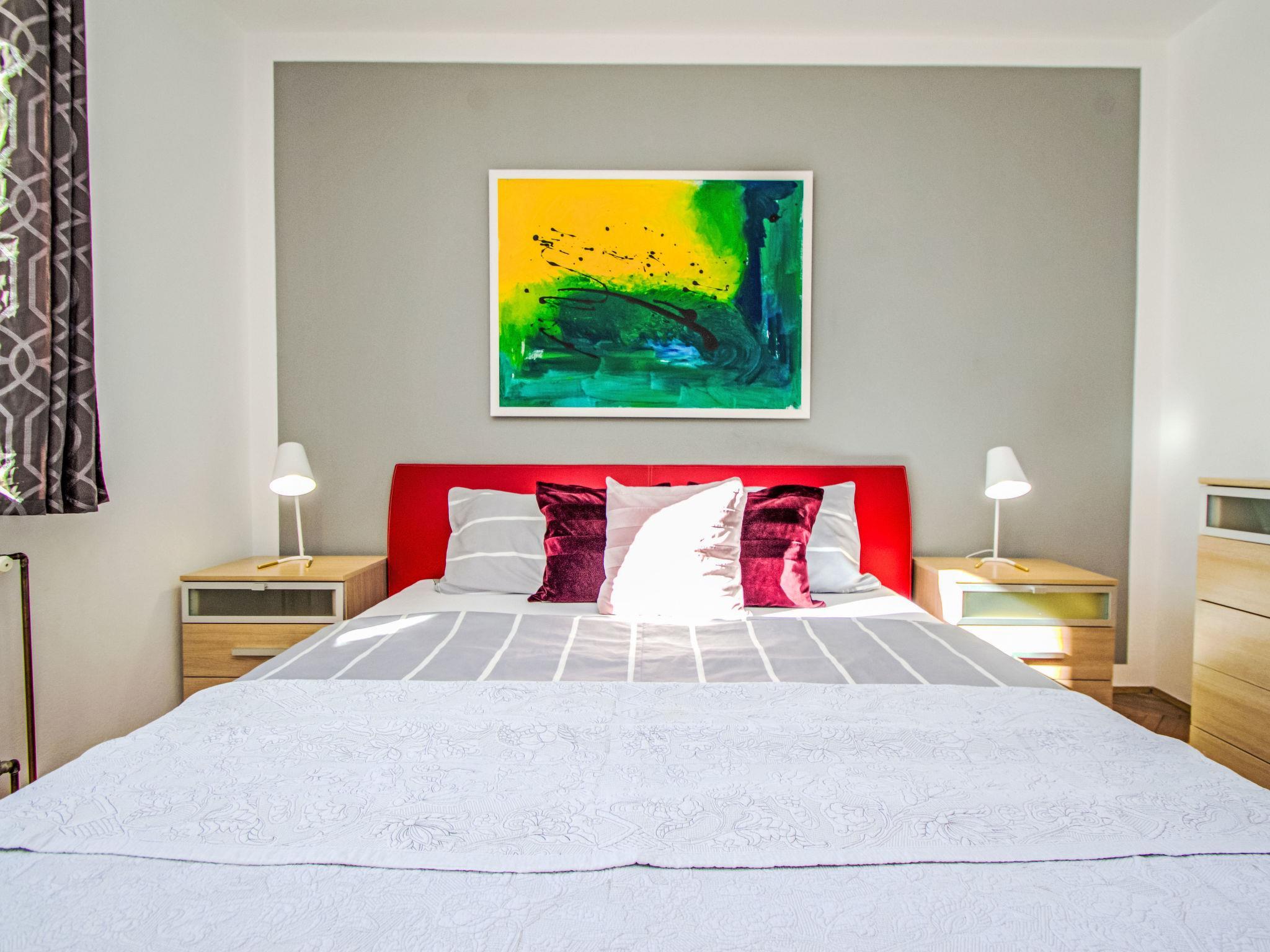 3-room apartment 42 m2 on 1st floor, south facing position. Tasteful and cosy furnishings: living/dining room with satellite TV (flat screen). 1 room with 1 double bed (2 x 90 cm, length 200 cm), air conditioning. Exit to the balcony. 1 room with 2 beds (90 cm, length 200 cm). Exit to the balcony. Open kitchen (dishwasher, 2 induction hot plates, kettle, microwave, freezer, electric coffee machine). Shower/WC. Heating. Balcony 9 m2. Terrace furniture. View of the swimming pool. Facilities: Internet (WiFi, free).