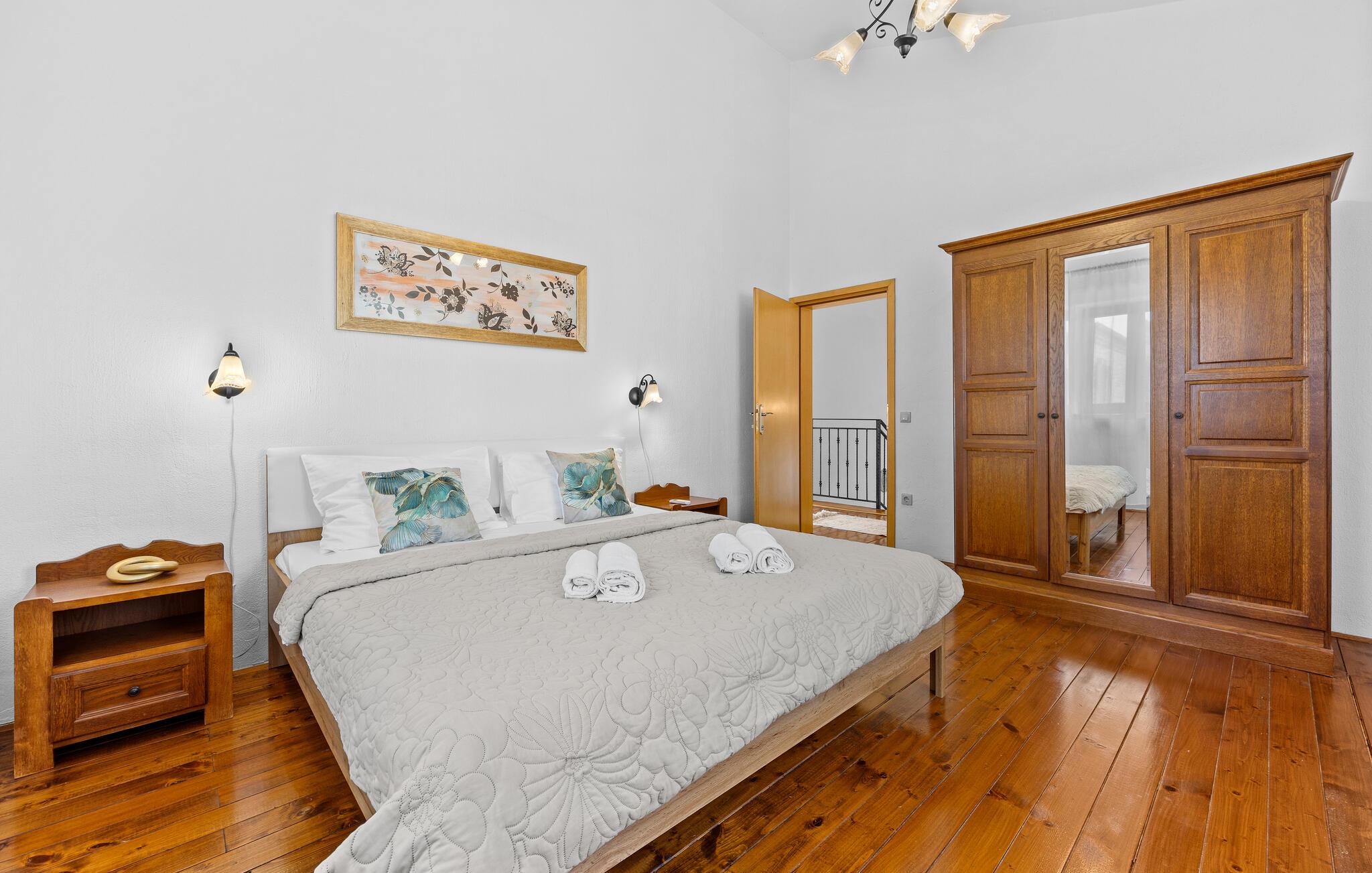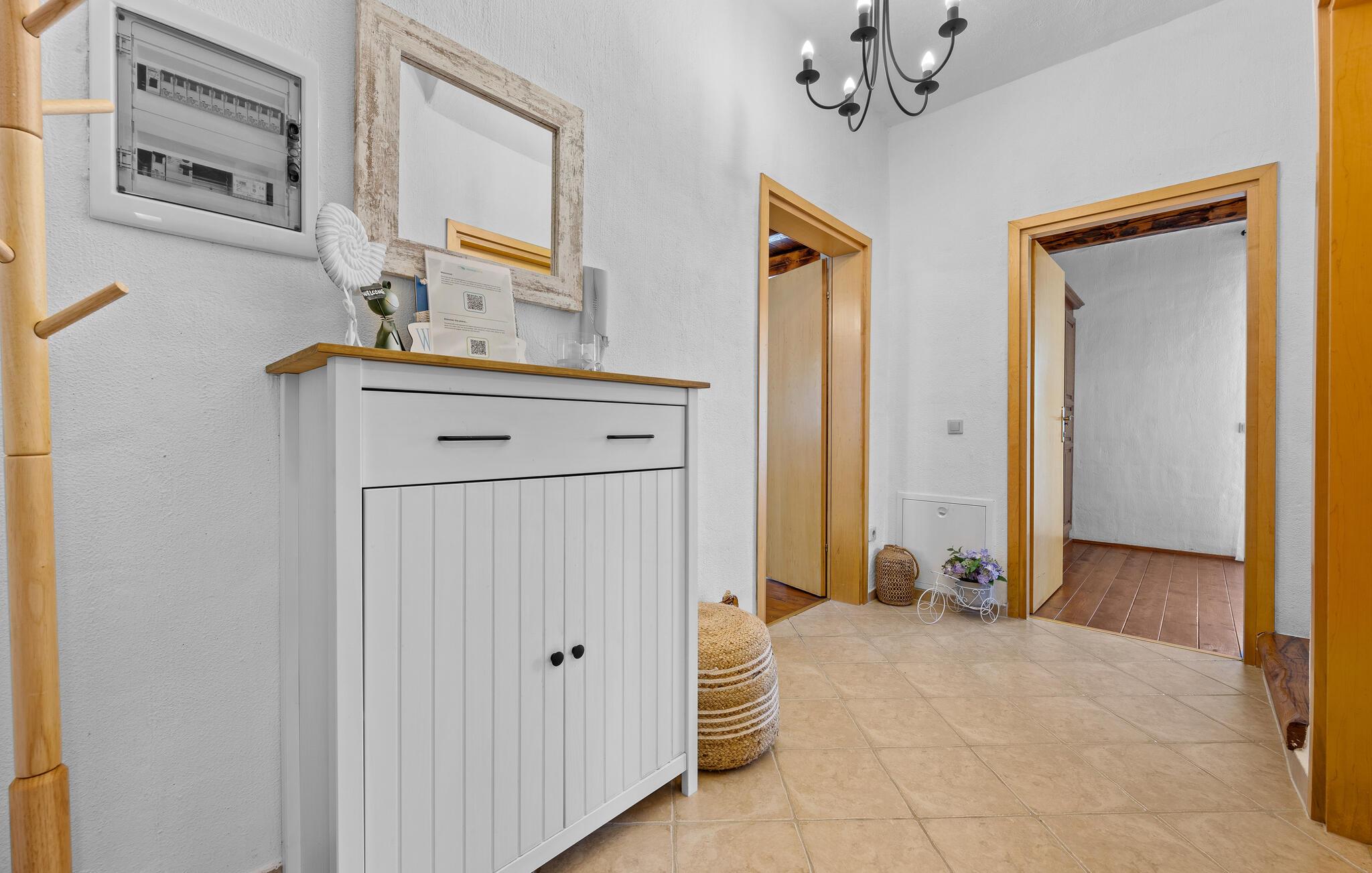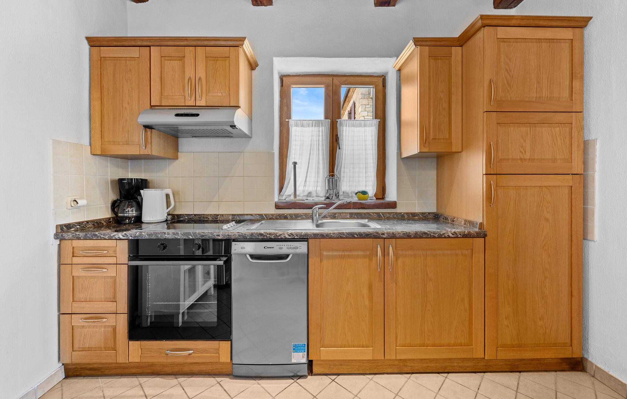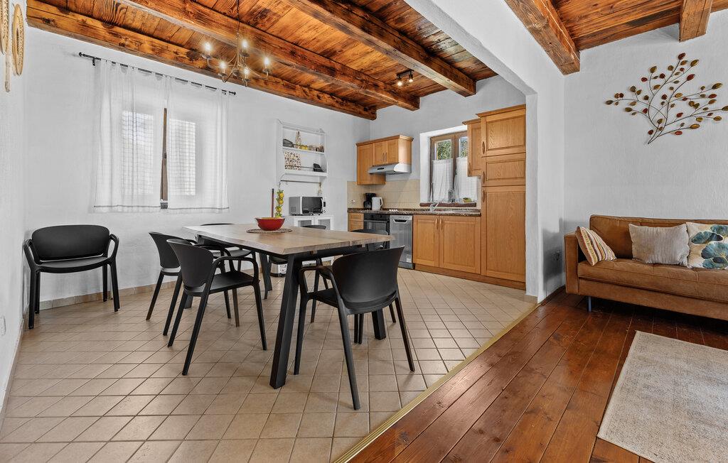 Tilbring uforglemmelige dager i dette romslige feriehuset, som kombinerer tradisjonell sjarm med moderne komfort. Her kan du forvente avslapning, ro og istrisk livsglede i stilfulle omgivelser. Inne blir du møtt av et innbydende oppholdsrom med natursteinvegger, trebjelker og elegante møbler. Sett deg godt til rette i den herlige sofaen, nyt utsikten over bassenget eller avrund kvelden ved peisen. Det åpne kjøkkenet med spiseplass er fullt utstyrt og tilbyr god plass til felles måltider. Materialer av høy kvalitet og varme farger skaper en harmonisk og hjemmekoselig atmosfære som innbyr til å bli værende.