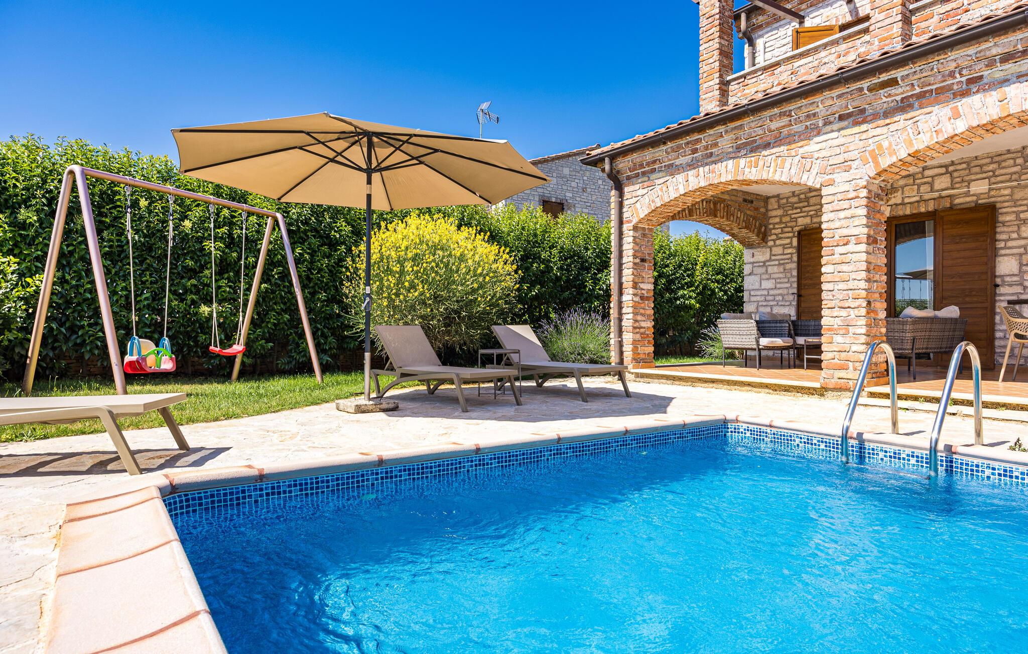 Villaen din ligger i Cabrunici, en liten landsby i nærheten av Vodnjan. Dra på utflukter til de sjarmerende byene Rovinj og Pula med sine historiske gamlebyer, besøk vingårder og olivenlunder eller tilbring avslappende timer på regionens strender.