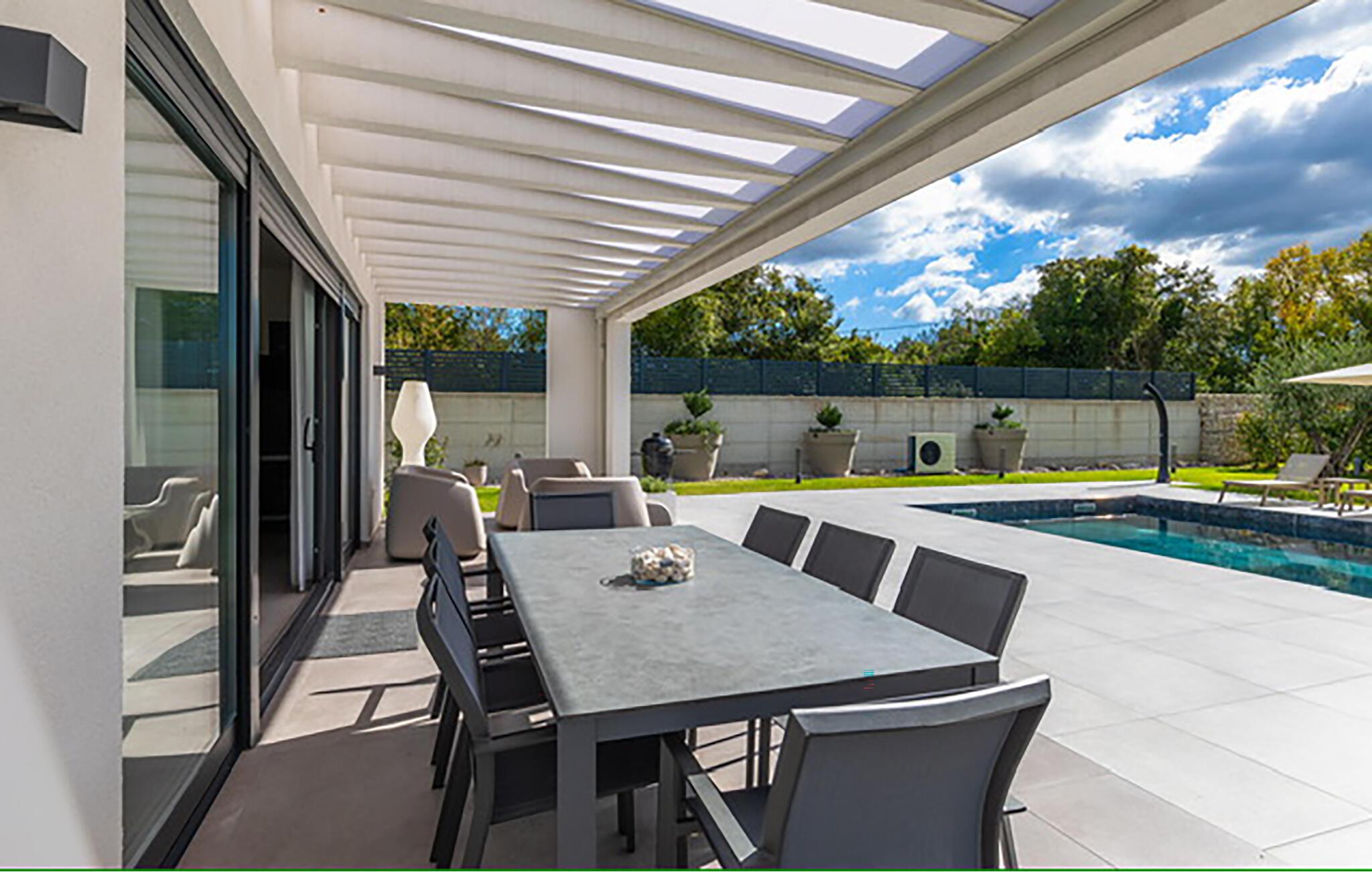 Det velstelte uteområdet er perfekt for å nyte det solfylte klimaet. Server frokosten på den overbygde verandaen, forfrisk deg i det vakre bassenget og lad batteriene på solsengen. Feir de lune sommerkveldene med en stemningsfull grillfest og prat til langt på natt under stjernene.