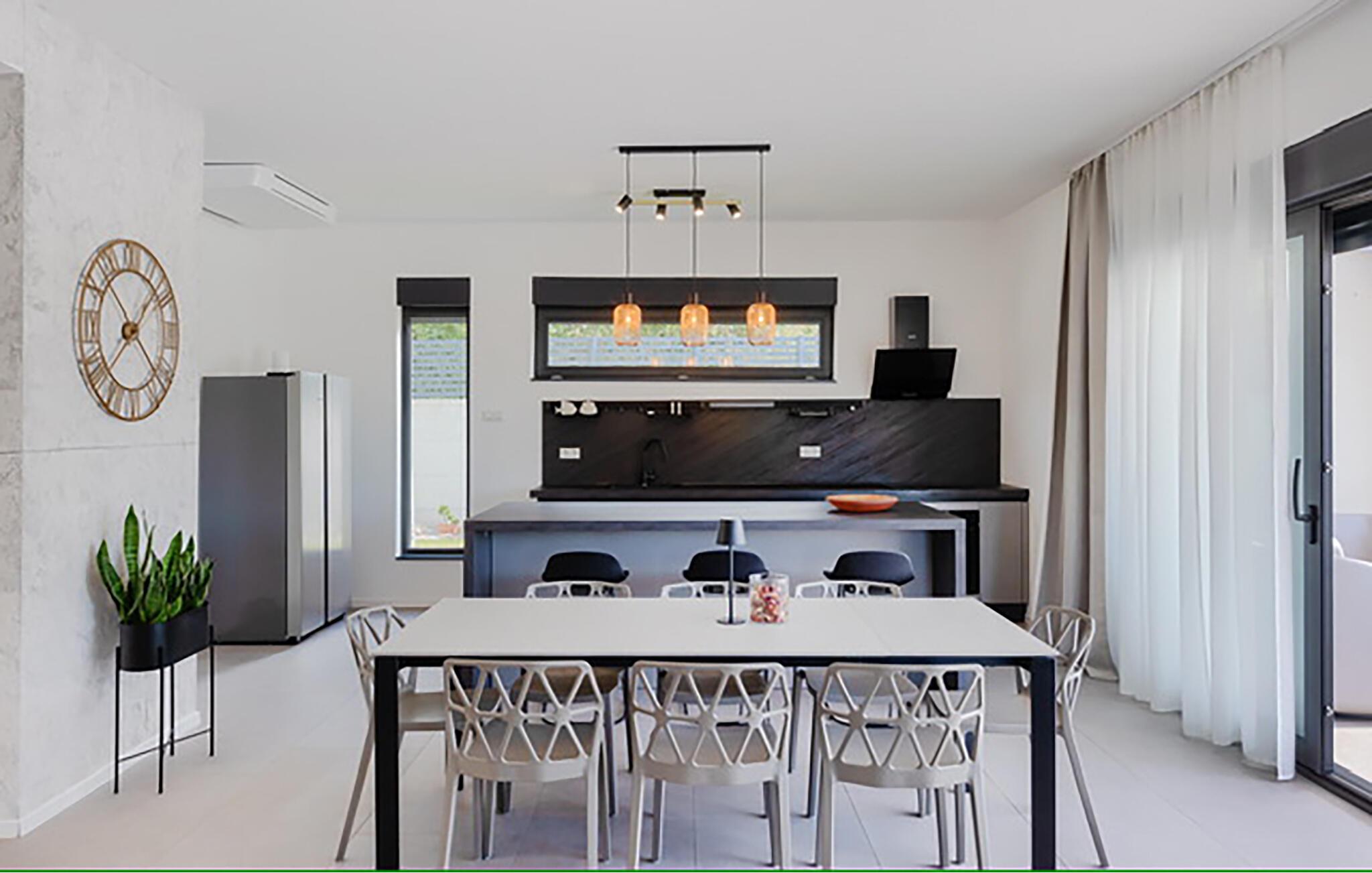 Velkommen til den koselige atmosfæren i dette stilfullt innredede feriehuset. Lag kroatiske delikatesser på det åpne kjøkkenet og nyt hyggelige måltider ved det lange spisebordet. Sett deg godt til rette i den elegante stuen, se en film eller bruk tiden sammen til stimulerende samtaler over et glass vin.