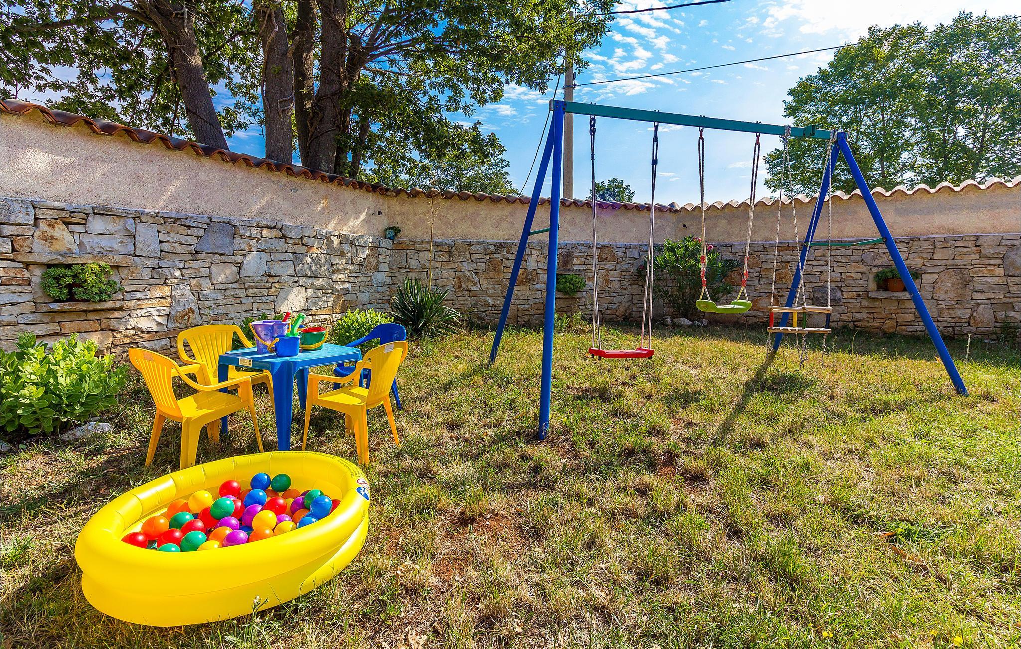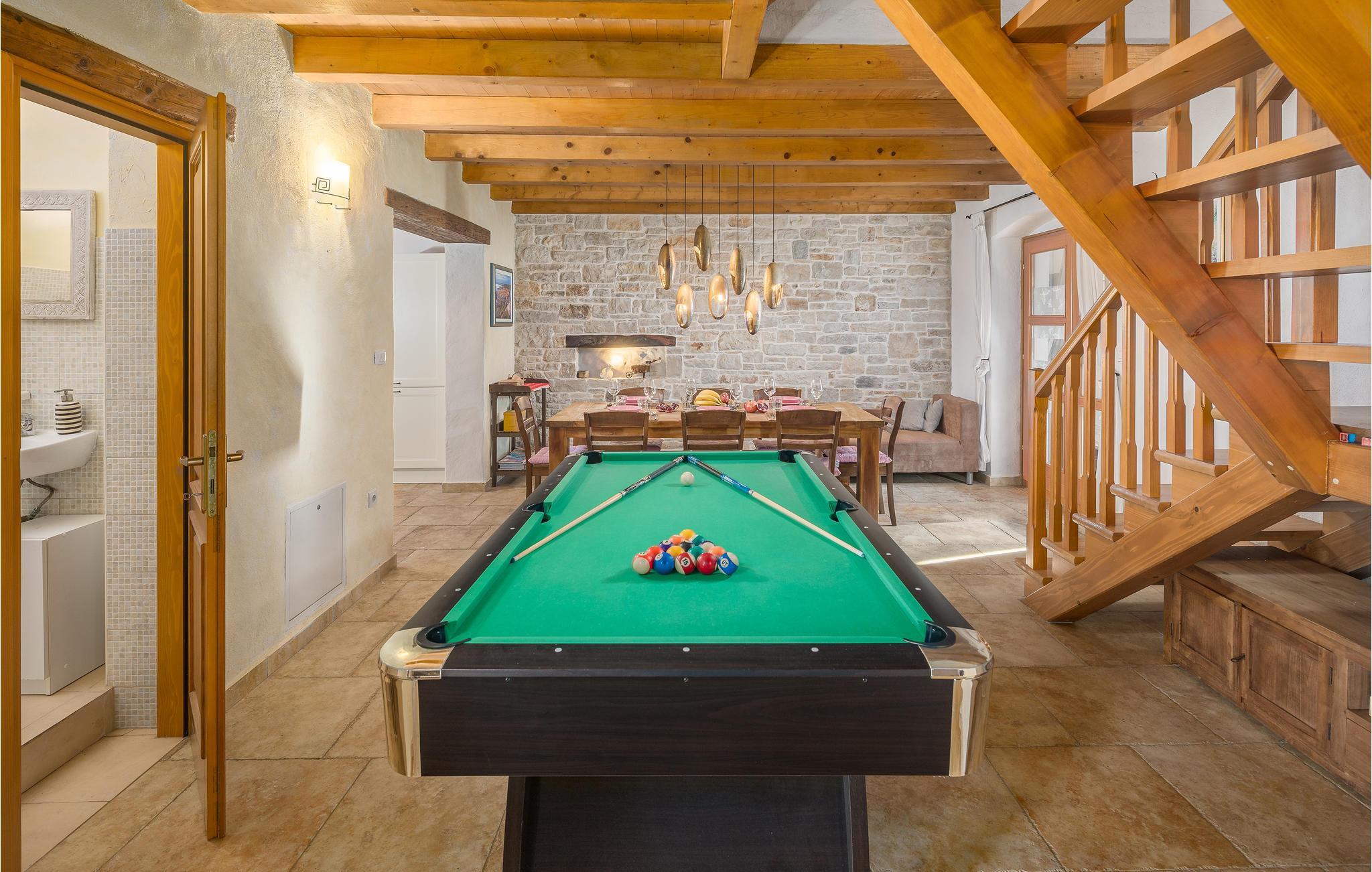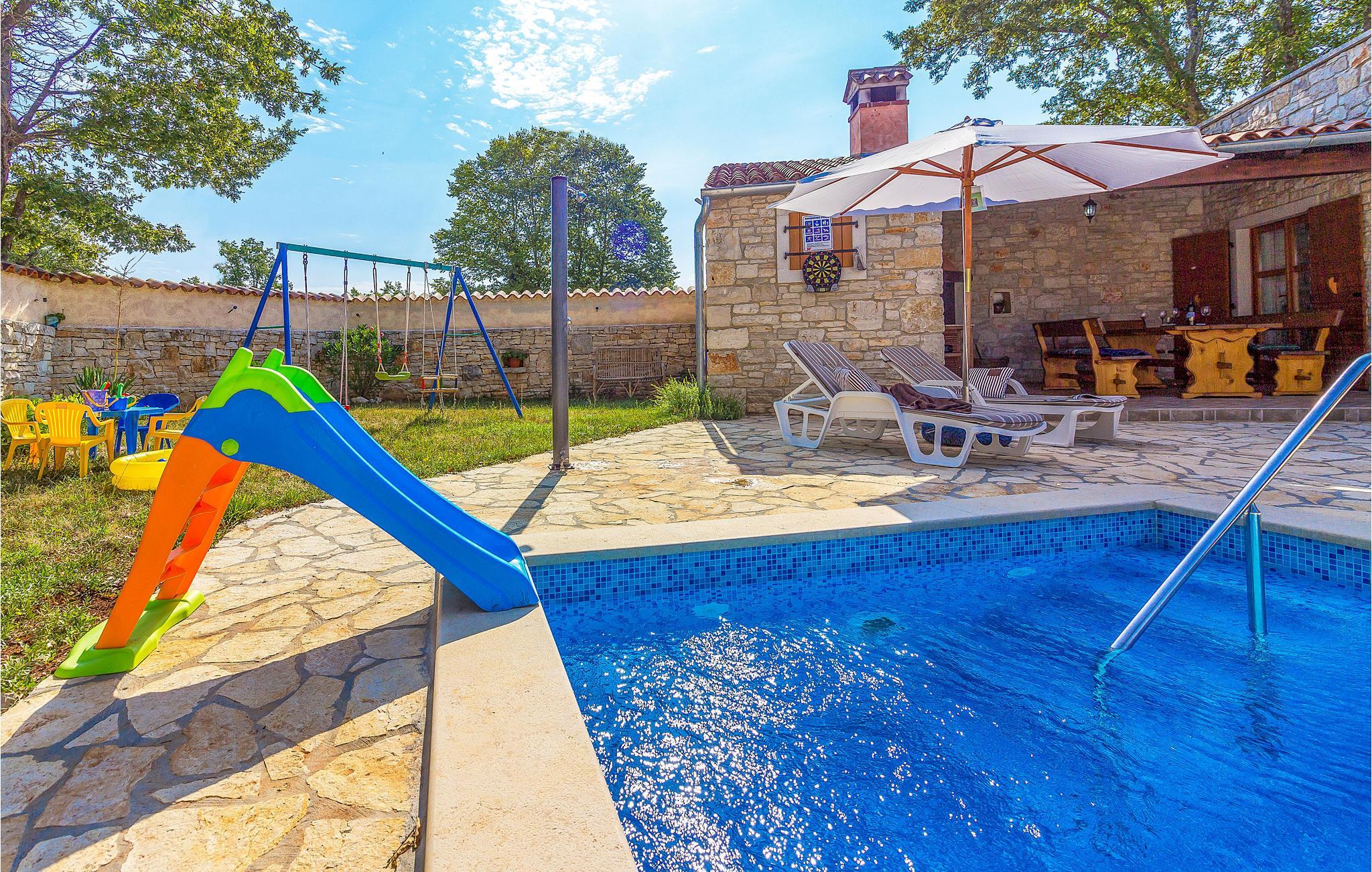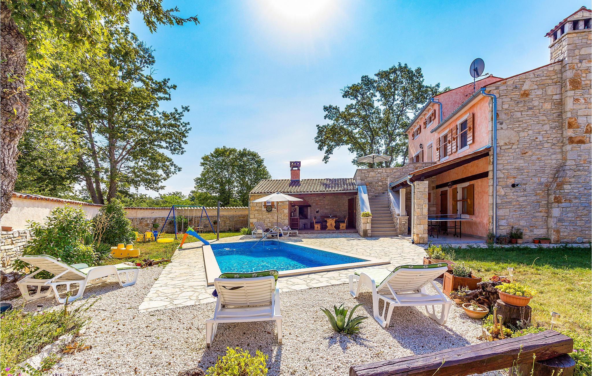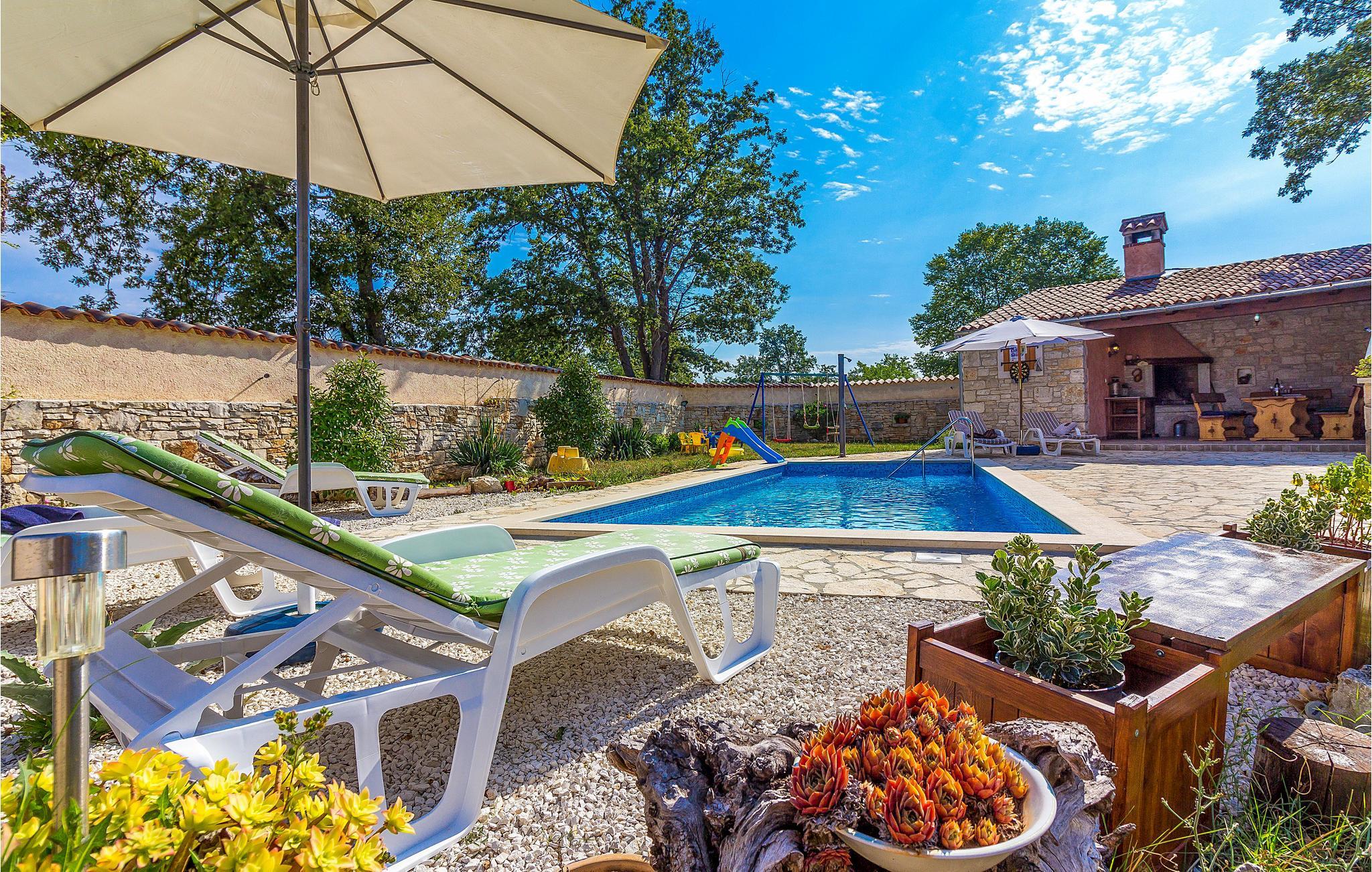 Langt fra hverdagens stress og i idylliske omgivelser venter dette vakre feriehuset på deg. Nylig renovert i den tradisjonelle arkitektoniske stilen i Istria, har den blitt innredet med koselige møbler. I den velholdte hagen med to overbygde terrasser er det en vakker utendørs grill og et utendørsbasseng. Her har du muligheten til å nyte grillkvelder i en romantisk atmosfære. En avslappende spasertur i dette landskapet eller et besøk i Pula, hvor mange severdige monumenter fra romernes tid venter på å bli oppdaget, vil helt sikkert fylle ferien din. Laveste takhøyde 1,70 m. 2 sykler og en barnesykkel er tilgjengelig. Istria er mangfoldig: besøk Pula, den største byen i Istria med sin imponerende arena eller Rovinj. Ta en tur til Lim-kanalen - en naturpark og den eneste fjorden i Adriaterhavet. Utforsk Brijuni-øyene med sine romerske og bysantinske utgravninger og nasjonalparken med eksotiske dyr. Besøk Hum, verdens minste by, eller Motovun, trøffelbyen og filmfestivalen.