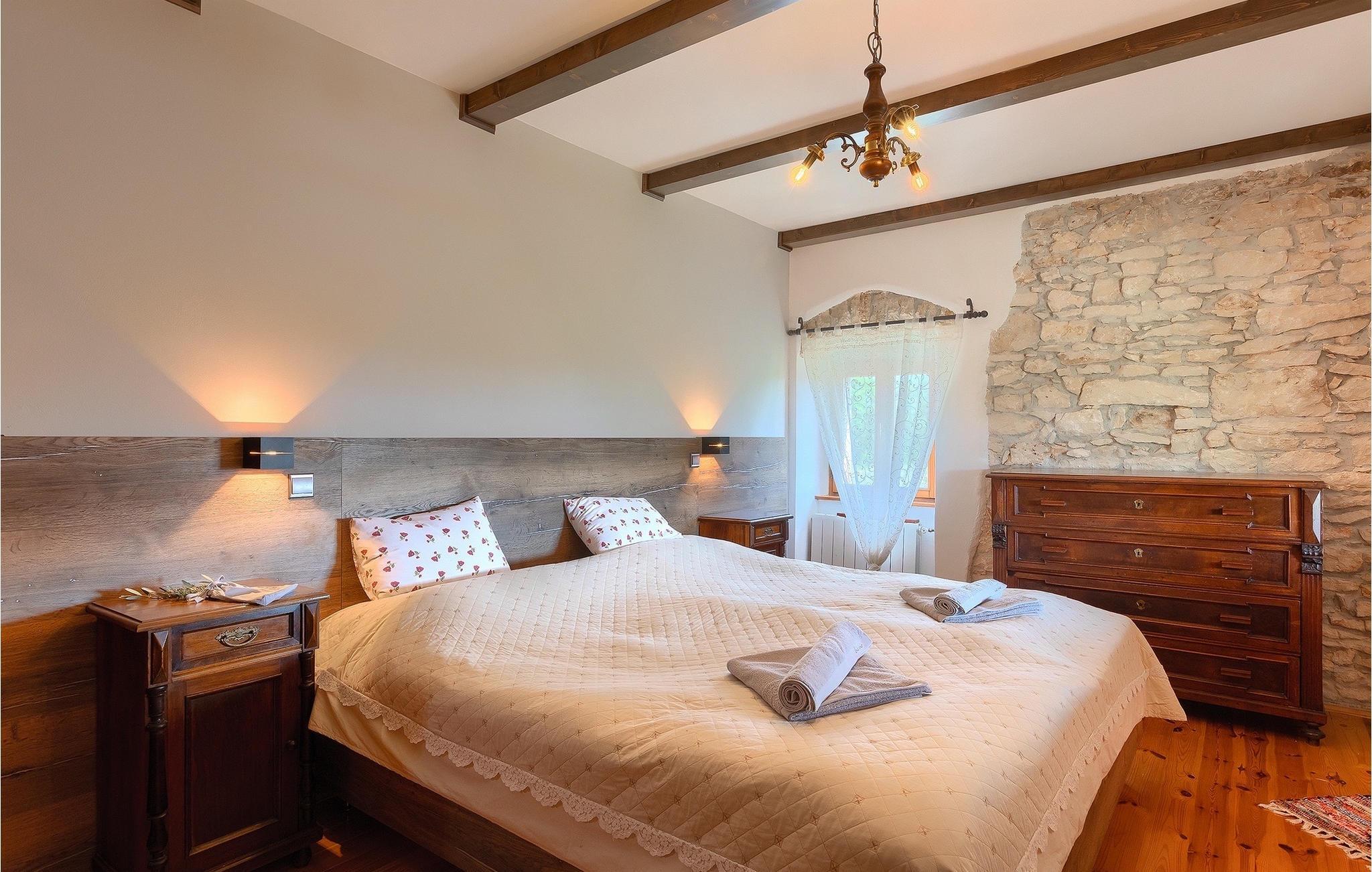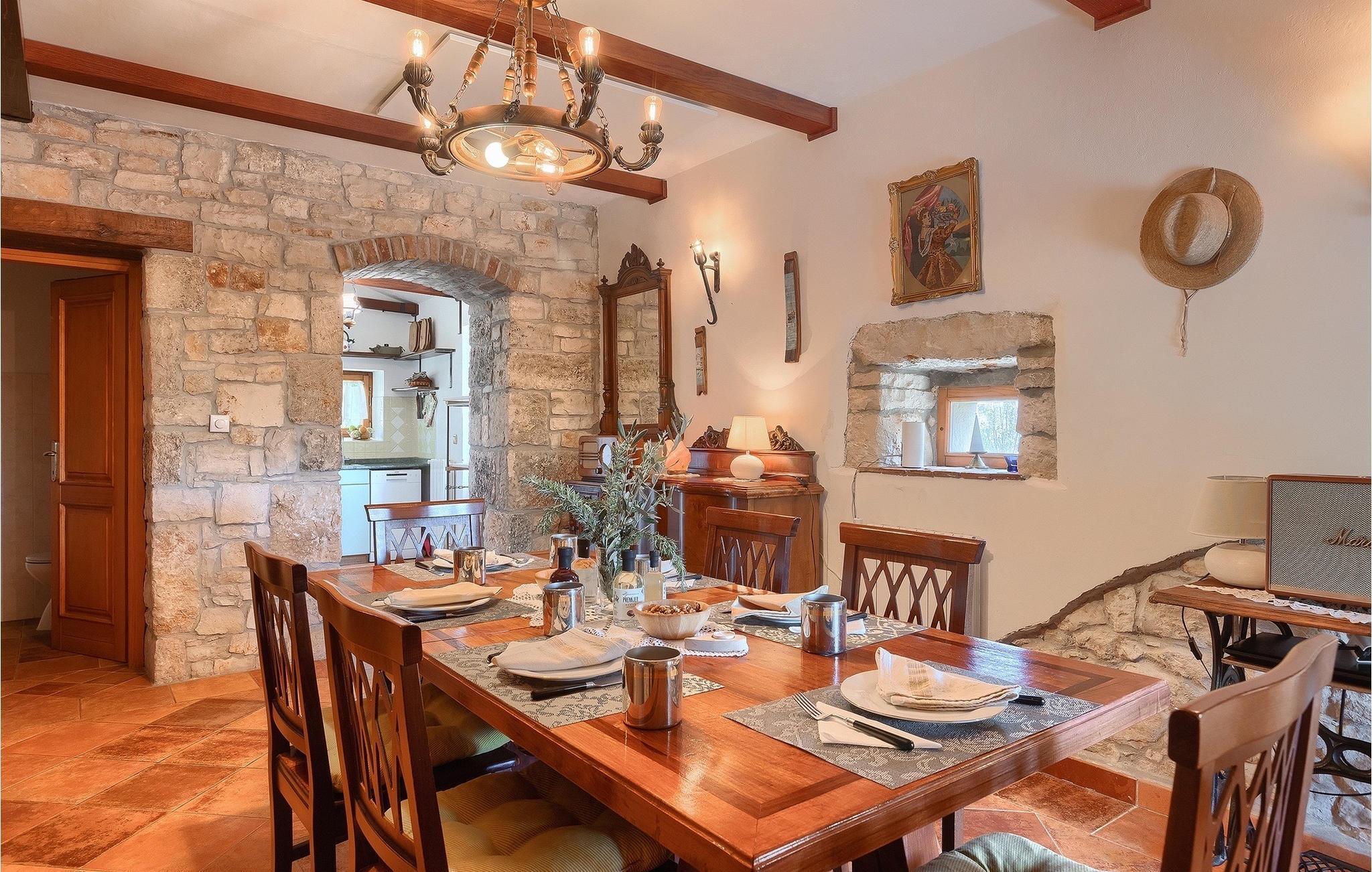 Hva er det som gjør det sentrale Istria så spesielt, og hvorfor er det så populært? Hemmeligheten er den romantiske arkitekturen i landsbyene og den uberørte naturen rundt, som gjør det til det perfekte stedet for en avslappende ferie med familie og venner. Villa Di Vino ligger i en liten tradisjonell landsby som heter Pacici i Svetvincenat kommune. Steinvillaen ble fullstendig restaurert i 2005 og renovert i 2022/2023. Villa Di Vino består av 3 etasjer og er innredet i en varm stil som gir deg en følelse av å være hjemme. I første etasje finner du et fullt utstyrt kjøkken, en spiseplass, en stue med TV og et gjestetoalett. Her finner du også villaens høydepunkt - den vakre vinkjelleren med 200 flasker av de beste istriske vinene, som for eksempel Malavazija. Første og andre etasje er reservert for avslapning, og her finner du to soverom og ett bad i hver etasje. Ett av soverommene i første etasje har også direkte utgang til en liten terrasse og en sittegruppe hvor du kan nyte morgenkaffen. Foran villaen ligger det store, innbydende bassenget, der du kan forfriske deg på varme sommerdager eller bare slappe av på en av de komfortable solsengene. Bare noen få skritt unna ligger det overbygde sommerkjøkkenet - det perfekte stedet for en familiesammenkomst der dere kan tilberede deilige måltider sammen på kullgrillen. Ikke gå glipp av denne muligheten og bestill Villa Di Vino nå, begynn å planlegge ferien og få den beste tiden i livet! Den vakre steinvillaen Villa Di Vino ligger i den lille grenda Pacici i Svetvincenat kommune. Villaen er et ideelt utgangspunkt for mange utflukter, uansett hvor du skal reise. Hvis du drar mot kysten, kommer du til de vakre byene Pula med sitt unike amfiteater, Rovinj med sine sjarmerende fargerike hus og trange gater, samt Porec med den berømte Eufrasius-basilikaen. I det sentrale Istria kan du glede deg over de mange middelalderbyene på bakketoppene, som Buje, Groznjan og Motovun. Nyt Istrias brede gastronomiske tilbud, enten du foretrekker kjøtt eller fisk eller er vegetarianer, Istria kan tilfredsstille enhver gane. Prøv tradisjonell istrisk pasta med trøfler, istrisk boskarin (en type storfekjøtt) eller fersk sjømat og fisk. Vi anbefaler absolutt et besøk til Brijuni nasjonalpark, en gruppe øyer og holmer med en mangfoldig flora og fauna som vil begeistre deg. Du kan glede deg til vakre rullesteinsstrender, mange arkeologiske funnsteder og en safaripark med mange dyr. Etter en begivenhetsrik dag er det på tide å vende tilbake til villaen, hvor du kan slappe av i fred og ro. Temperaturen i det oppvarmede svømmebassenget avhenger av eksterne faktorer, inkludert værforhold, og vanntemperaturen kan derfor ikke garanteres.