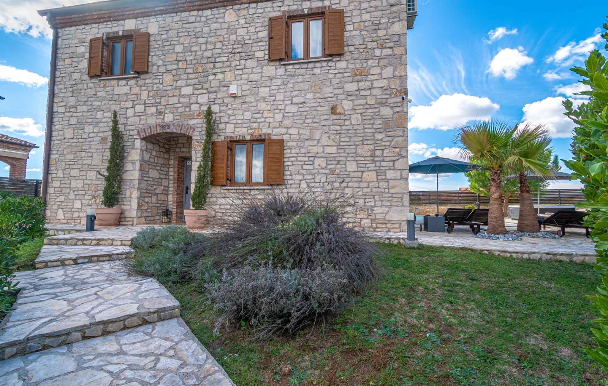 Dette eksepsjonelle feriehuset med basseng ligger i en liten landsby og tilbyr de ideelle omgivelsene for en avslappende ferie takket være beliggenheten og den komfortable innvendige og utvendige møbleringen. Det koselige interiøret er innredet med sans for detaljer, og kombinasjonen av stein og tre gir huset et spesielt preg. Bassenget med solsenger, den inngjerdede og velstelte hagen samt den vakre overbygde verandaen med sittegruppe og utegrillen er de perfekte elementene for en uforglemmelig ferie. De første strendene ligger bare 15 minutters kjøring unna, og deler det krystallklare havet med Brijuni nasjonalpark. Bestill en utflukt til disse vakre øyene og besøk den nærliggende byen Faana, som er rik på kveldsunderholdning og gastronomiske tilbud.