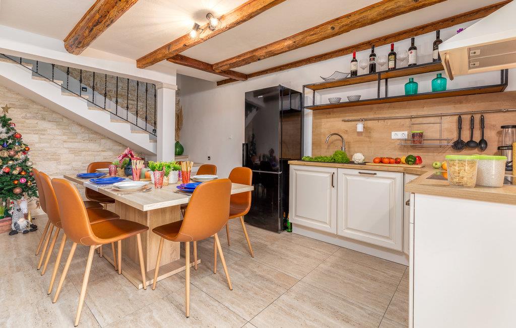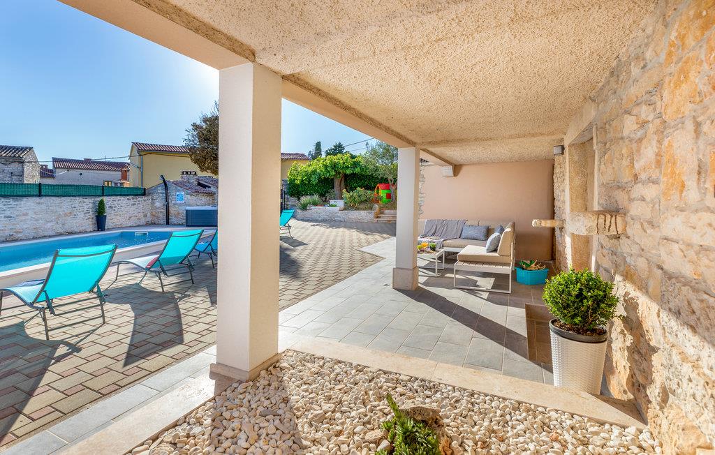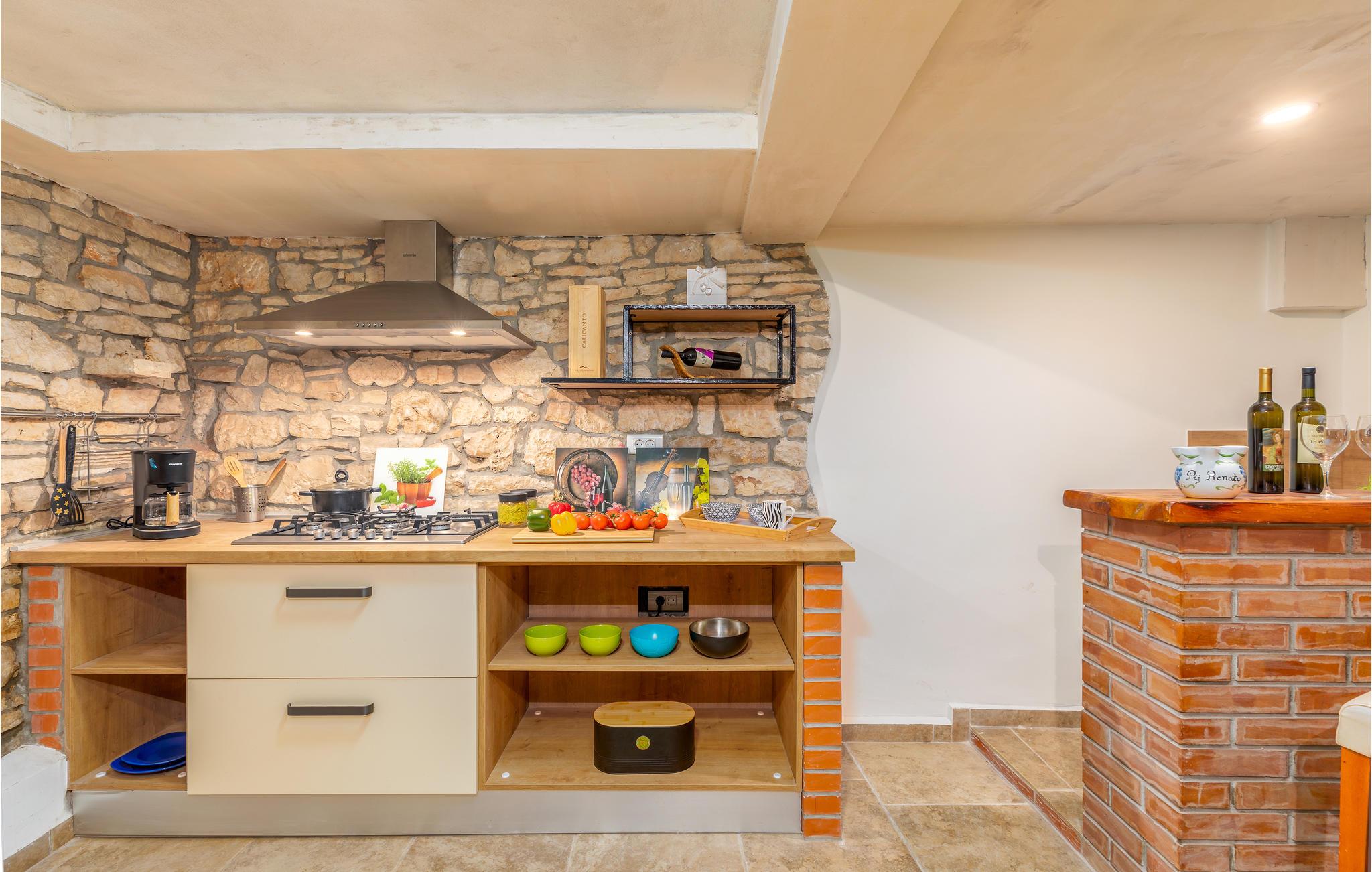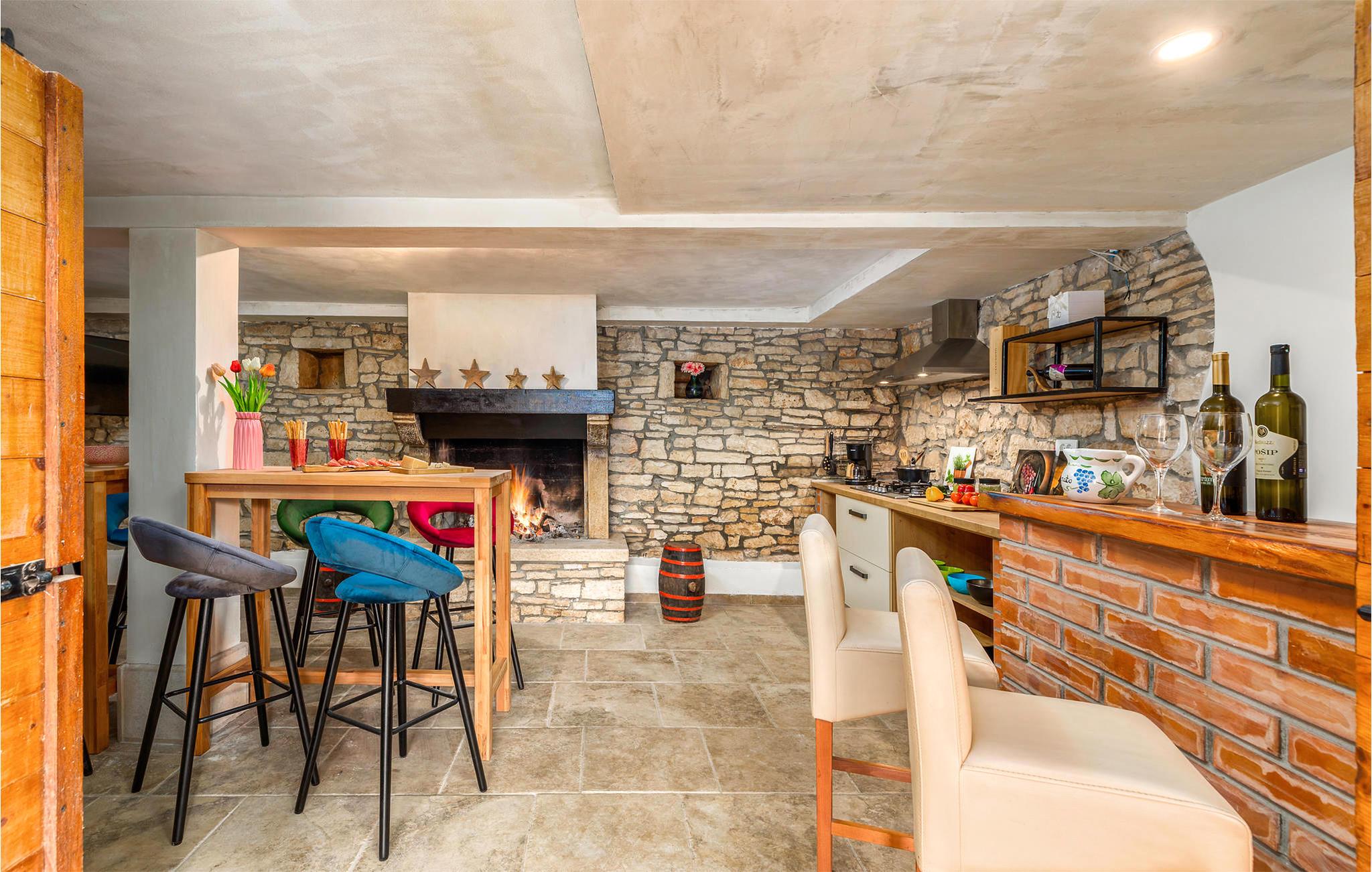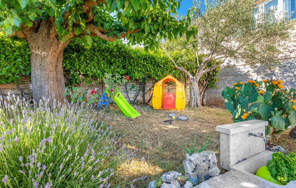 Tavernaen tilbyr muligheten til å sitte komfortabelt sammen med et glass vin og tilberede istriske delikatesser i peisen, mens barna leker trygt på den inngjerdede eiendommen. På varme dager tilbyr bassenget fantastisk forfriskning.