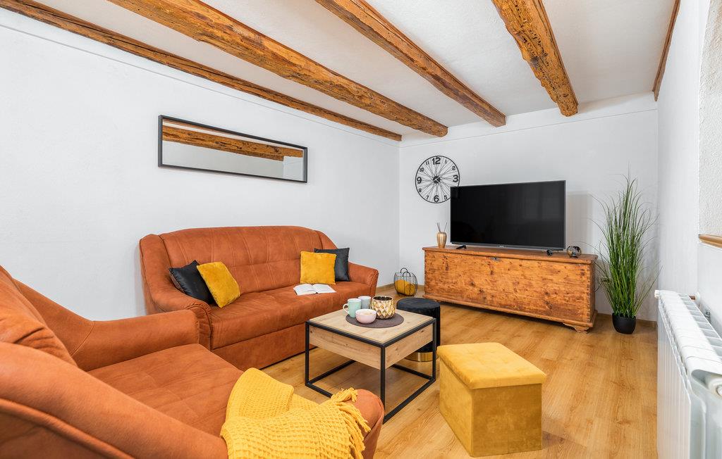 Tilbring en uforglemmelig ferie med hele familien i dette smakfullt innredede feriehuset, som også har god plass til en større familie. De synlige takbjelkene gir den koselige kjøkken-stuen et rustikt preg, og fra vinduene i huset kan du nyte en imponerende utsikt over landskapet.