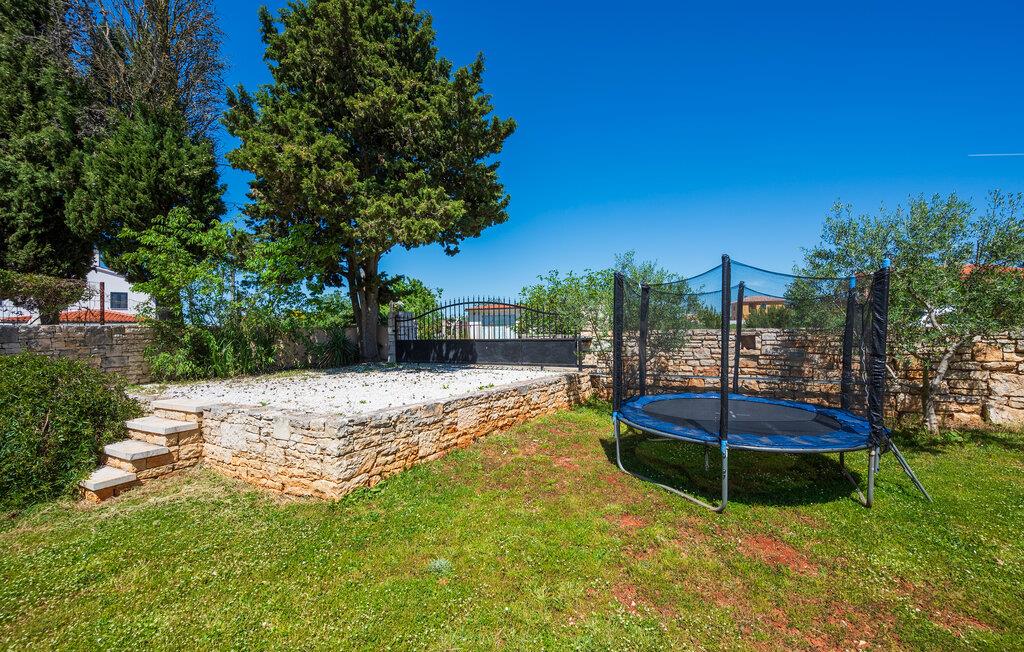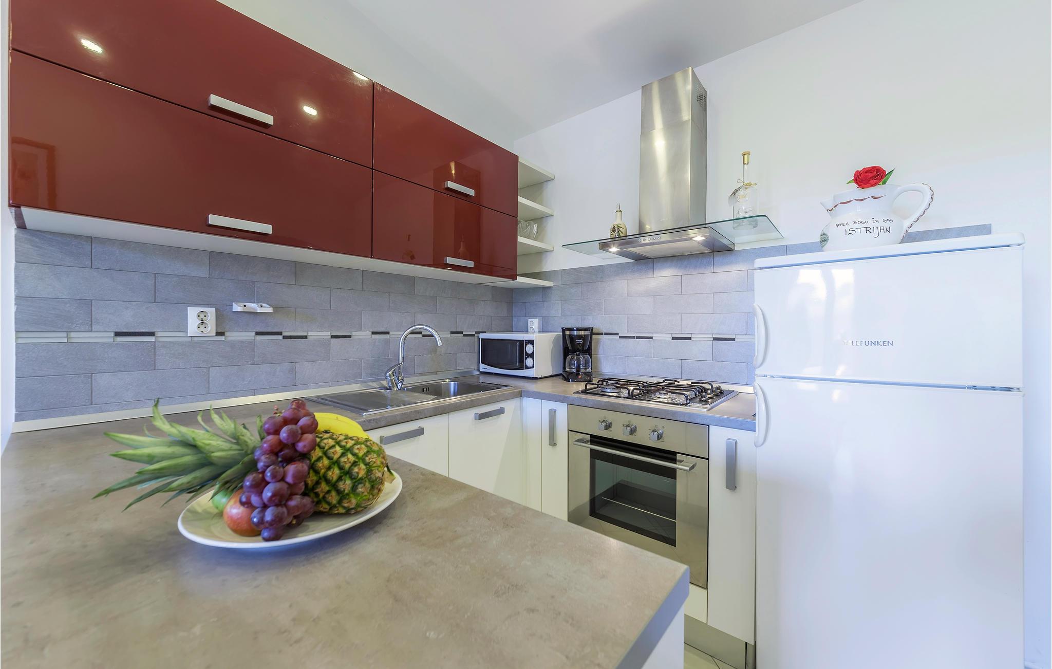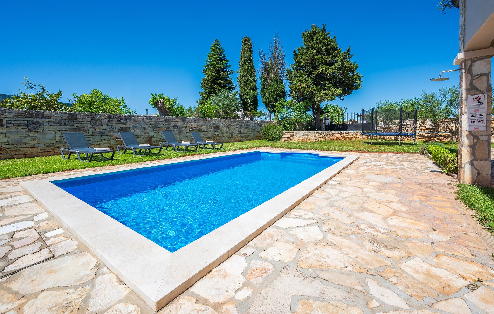 Dette sjarmerende og smakfullt innredede feriehuset med basseng ligger i den lille landsbyen Gajana. Eiendommen er spredt over to etasjer og er ideell for et avslappende opphold med hele familien eller venner. I øverste etasje er det en romslig stue og kjøkkenet. Soverom og bad finnes i begge etasjer. Fra første etasje har du tilgang til bassenget, som gir avkjøling på varme sommerdager. Nyt sosiale timer og koselige grillkvelder på terrassen. Besøk den gamle byen Pula og la deg forbløffe av det romerske amfiteateret. Ha det gøy med å spille biljard eller dart og utforsk skjønnheten på dette stedet og omgivelsene med sykler til din disposisjon.