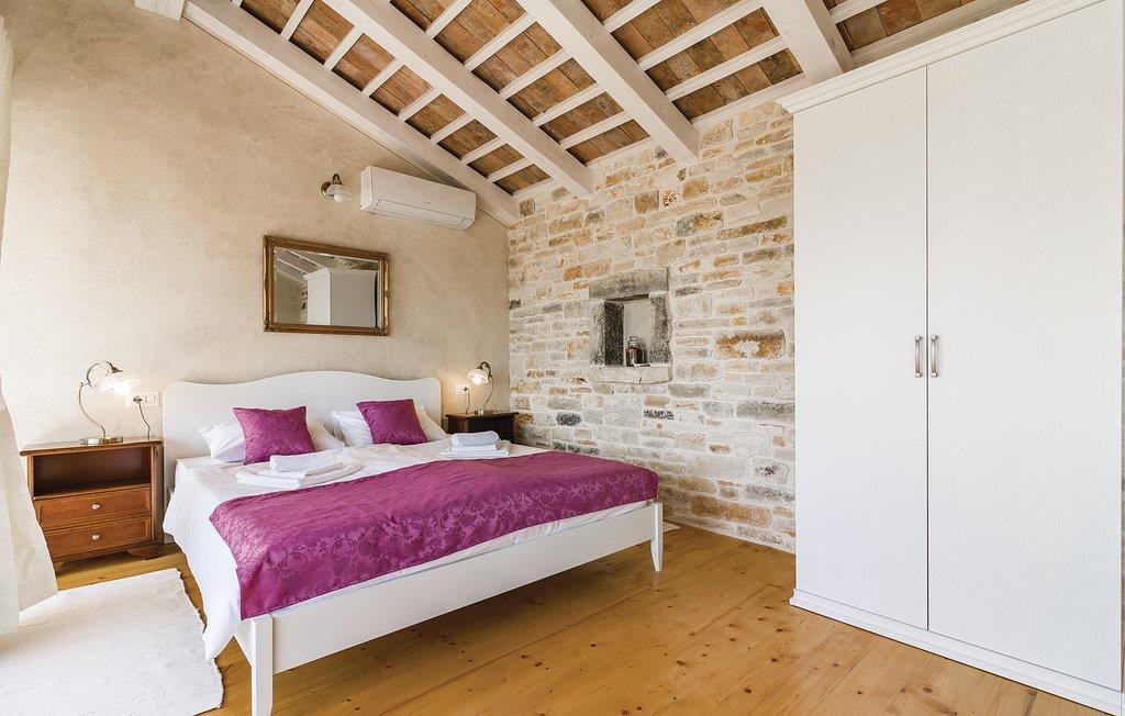 Tilbring en herlig ferie i dette imponerende landstedet, som er totalrenovert og tilpasset moderne boligstandard. Den tradisjonelle konstruksjonen av stein og tre kombinert med moderne innredning gir gjestene maksimal komfort. I første etasje er det et kjøkken med stue og spiseplass og et soverom med bad og privat tilgang til bassengområdet. I andre etasje er det tre soverom med bad, og i toppetasjen ligger det største soverommet med bad og egen terrasse med delvis havutsikt. Her kan du nyte utsikten over den vakre solnedgangen. Ved siden av bassenget er det en overbygd terrasse med grill, og på plenen ved siden av er det et lekeområde for barn samt en volleyball- og badmintonbane. På forsiden er det en ekstra terrasse hvor du kan drikke kaffe og slappe av om morgenen. Huset er meget godt innredet og utstyrt, og du vil garantert få en uforglemmelig ferie her. Besøk de nærliggende byene Faana, Vodnjan og Pula. I Vodnjan kan du besøke basilikaen St Blaise med det høyeste kirketårnet i Istria og en misunnelsesverdig samling av mumier. Fra Faana, en liten fiskerlandsby i nærheten, går det daglig turistbåter til Brijuni nasjonalpark. Hvis du setter kursen sørover, kommer du til Pula, der det finnes mange monumenter fra fortiden, som det romerske amfiteateret. Nord i Istria finner du pittoreske middelalderbyer, som Motovun, der det hvert år i slutten av juli arrangeres en internasjonal filmfestival. På reiser langs Istria-halvøya kommer du over mange vinveier og lokale tavernaer som tilbyr lokale delikatesser. Det er en god måte å bli kjent med de lokale tradisjonene og skikkene på.
