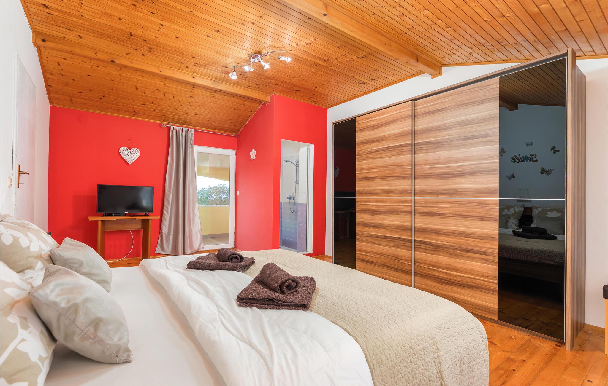 Dette vakre feriehuset ligger i den lille landsbyen Gajana. I første etasje er det komfortable oppholdsrommet, mens soverommene er ovenpå. Det er dusj i ett soverom. Et av soverommene har en balkong med utsikt over Brijuni-øyene, som du absolutt bør besøke. Slapp av på terrassen om sommerkveldene og nyt grilling av deilig mat mens barna dine leker bekymringsløst i den inngjerdede hagen. Bassenget er også tilgjengelig i hagen. Besøk også byen Pula med sine mange monumenter fra antikken eller smak på sjømat i en av restaurantene i Fazana.