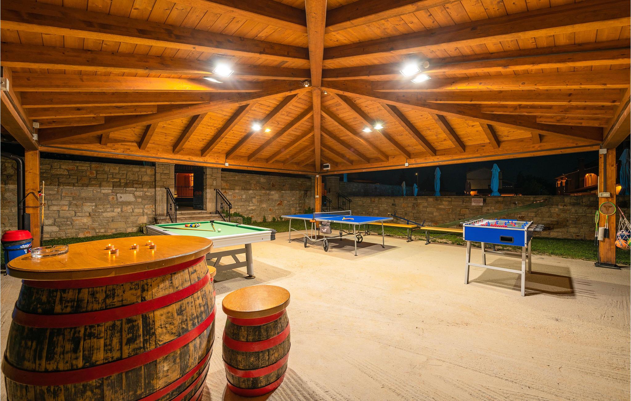Rommene er stilfullt innredet og har alle nødvendige bekvemmeligheter, som TV og klimaanlegg i alle rom. Hagen er omgitt av en lokal steinmur og inkluderer et svømmebasseng med foss, hydromassasje og saltvann. Bassenget kan også varmes opp. Det ene badet er utstyrt med boblebad.