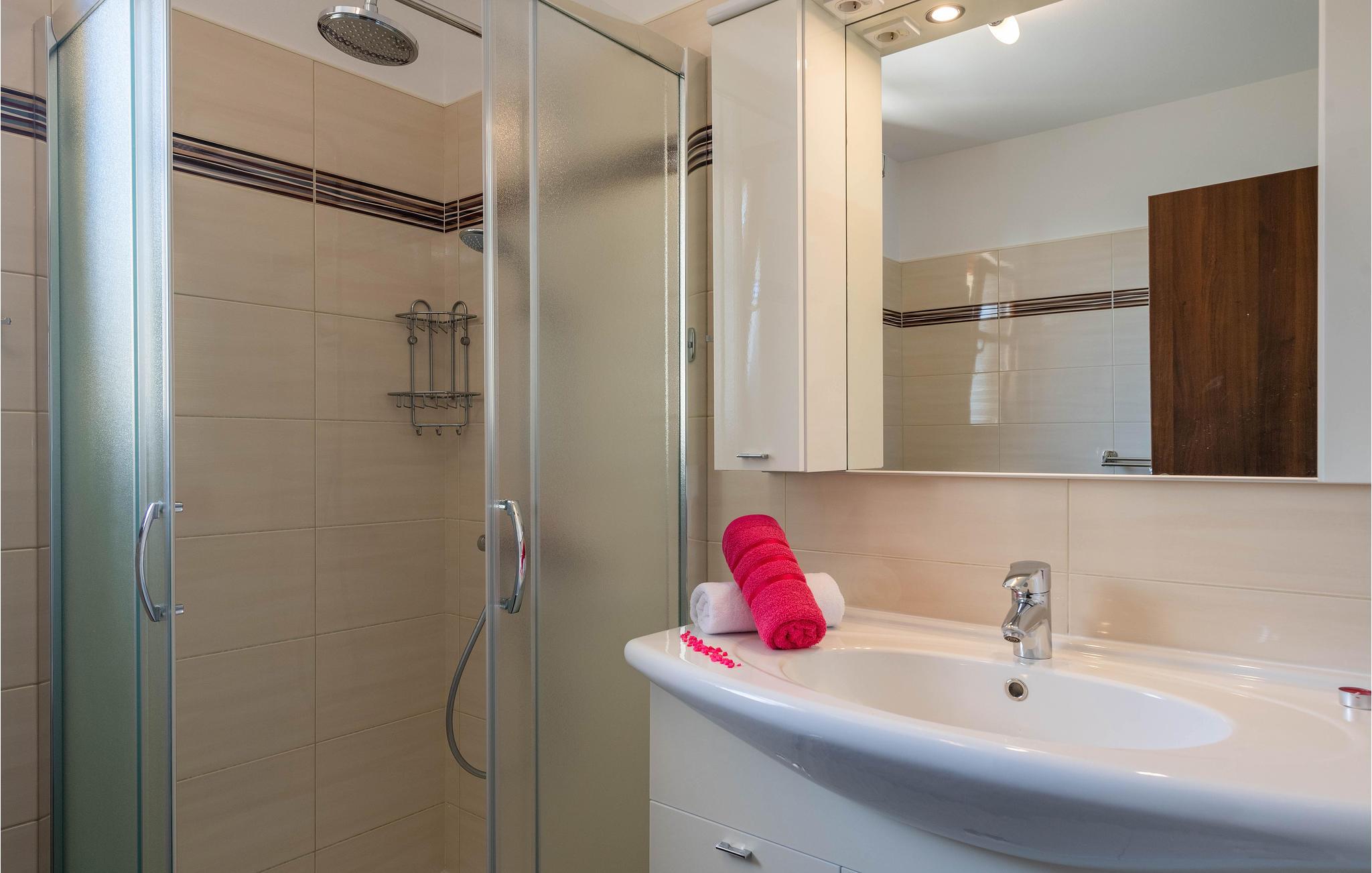 - WC med varmt og kaldt vann, Dusj