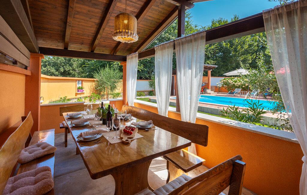 Dette vakre feriehuset med basseng ligger i et rolig område i den lille landsbyen Kicini. Eiendommen er inngjerdet med en vakker og velholdt hage, som er dekorert med mange blomster og planter, og hvor barna eller kjæledyret ditt er trygge.