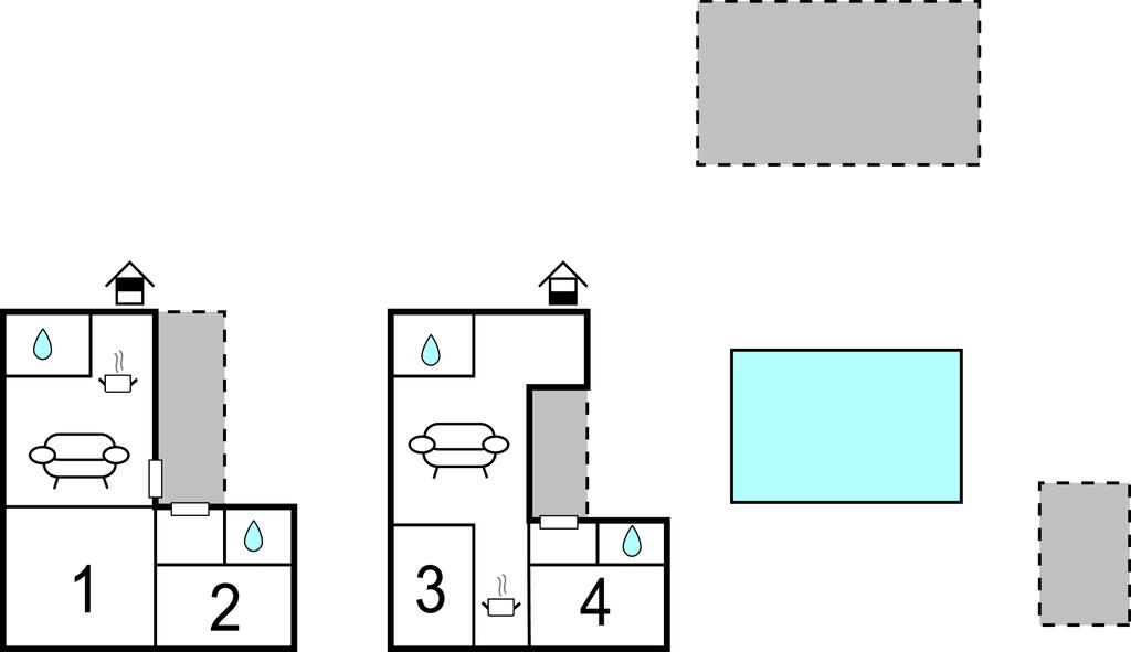 Huset består av to separate enheter fordelt på to etasjer og forbundet med en utvendig trapp. Dette gjør feriehuset ideelt for to familier eller vennegjenger som ønsker å tilbringe ferien sammen, men likevel med privatliv. Første etasje består av kjøkken, spisestue og stue samt to soverom og to bad, mens andre etasje har kjøkken med spisestue og stue, to bad og to soverom, hvorav det ene har egen inngang fra terrassen. Du kan kjøle deg ned i bassenget, som er omgitt av et sommerkjøkken og overbygde terrasser hvor du garantert vil tilbringe hyggelige timer.