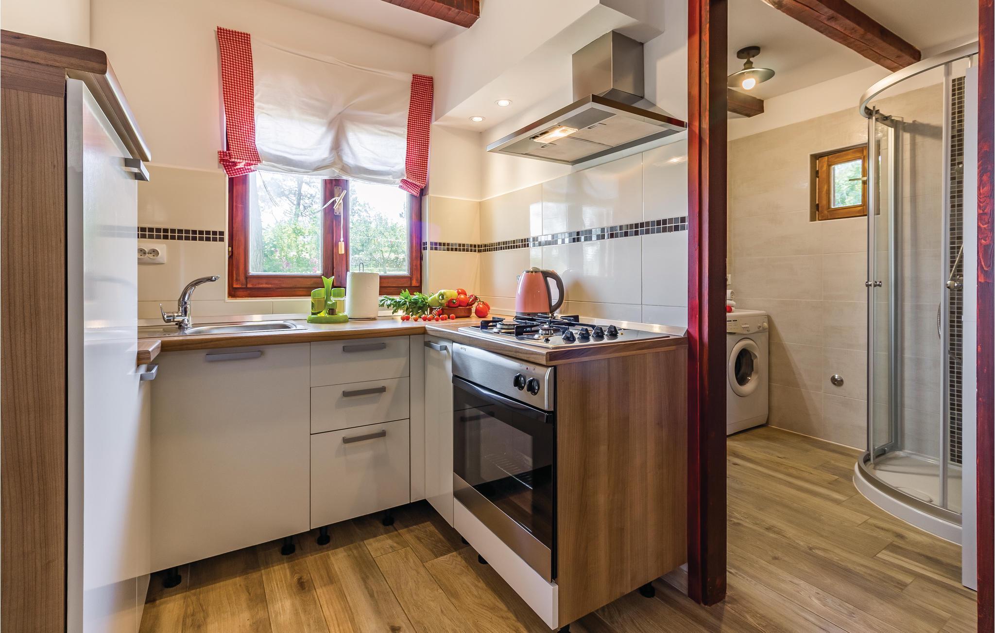 Dette feriehuset ligger i landsbyen Sv. Kirin, og er omgitt av grøntområder som byr på hyggelige stunder i naturen. Du kan tilbringe avslappende timer med familien på terrassen i skyggen av furutrærne. En bratt trapp fører opp til øverste etasje. Besøk Svetvicenat, et populært turistmål som byr på underholdende middelalderarrangementer. Romerske Pula vil forbløffe deg med sin historie. Byen er Istrias kulturelle og turistmessige sentrum, og vil gi deg uforglemmelige minner.