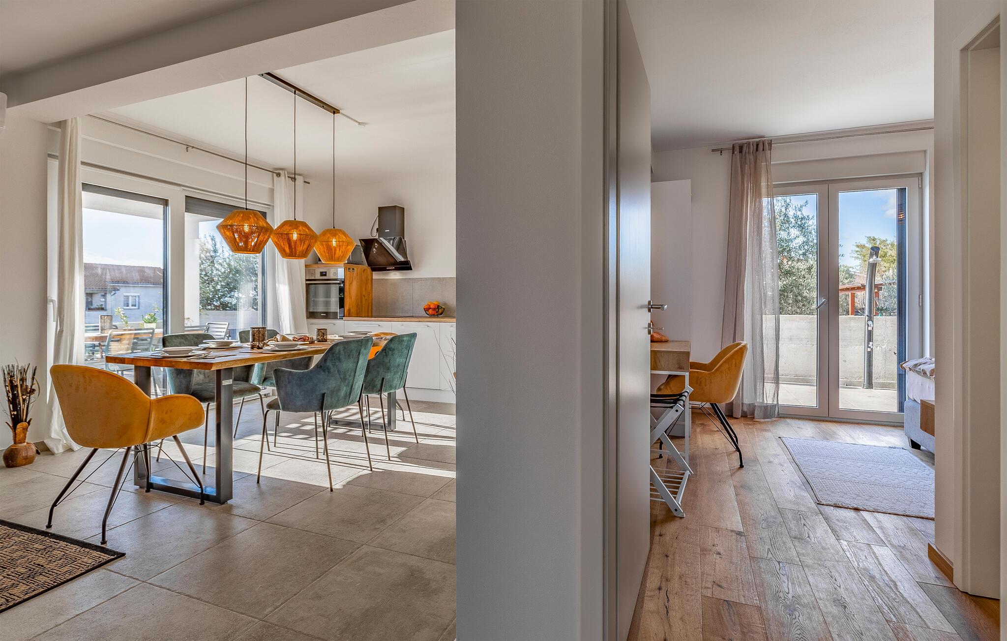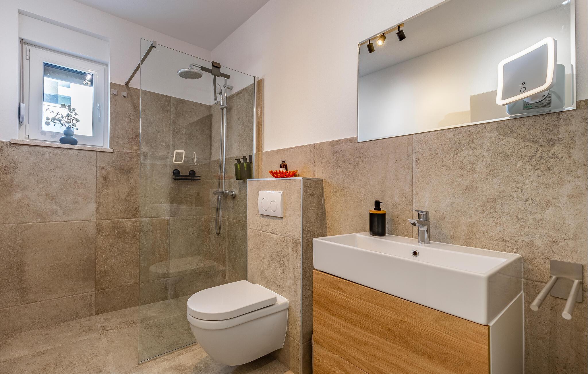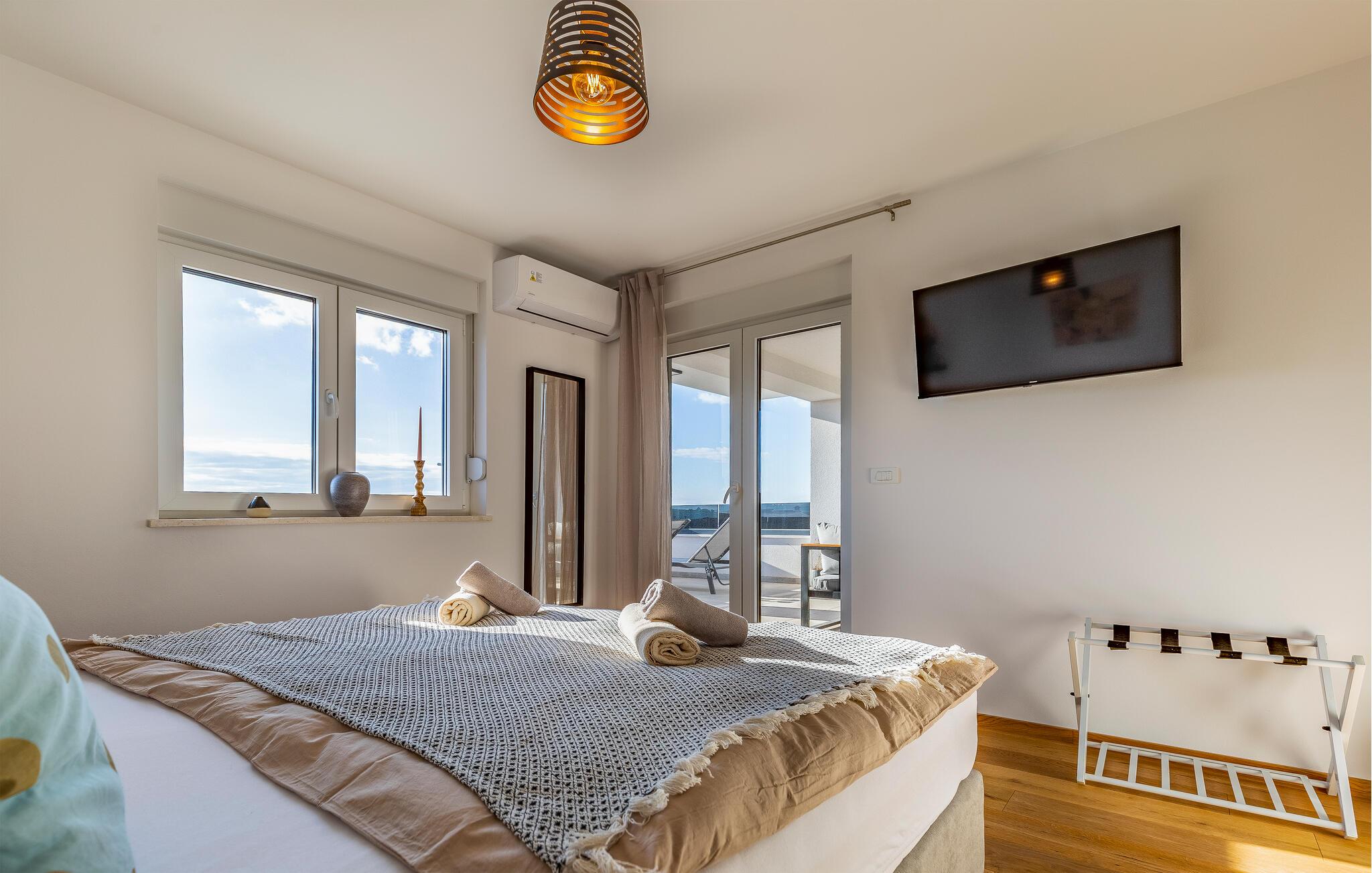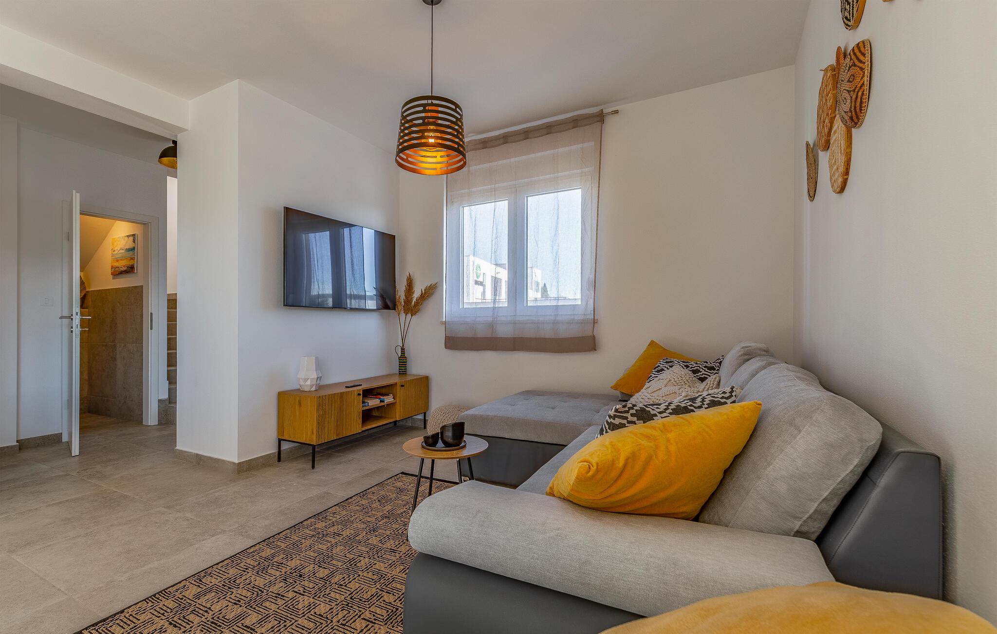 Den romslige terrassen med salongmøbler og solsenger er det ideelle stedet for å nyte solen eller lese en bok. Ta en dukkert i det glitrende bassenget, spill et slag bordtennis, organiser en grillfest eller nyt utsikten over hustakene i Vodnjan med et glass vin - ren avslapning garantert.
