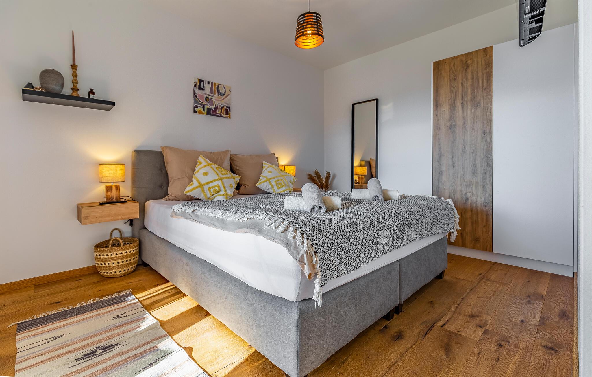 Fordyp deg i den harmoniske atmosfæren i dette stilfulle og koselige feriehuset, og la hverdagen ligge bak deg sammen med dine kjære. Innvendig finner du en lys, åpen kjøkken- og stueplan med høykvalitetsutstyr, ideelt for å nyte kulinariske opplevelser sammen. Gled dere til å tilbringe tid sammen i den koselige stuen, der dere kan strømme favorittseriene deres eller organisere en spillkveld.